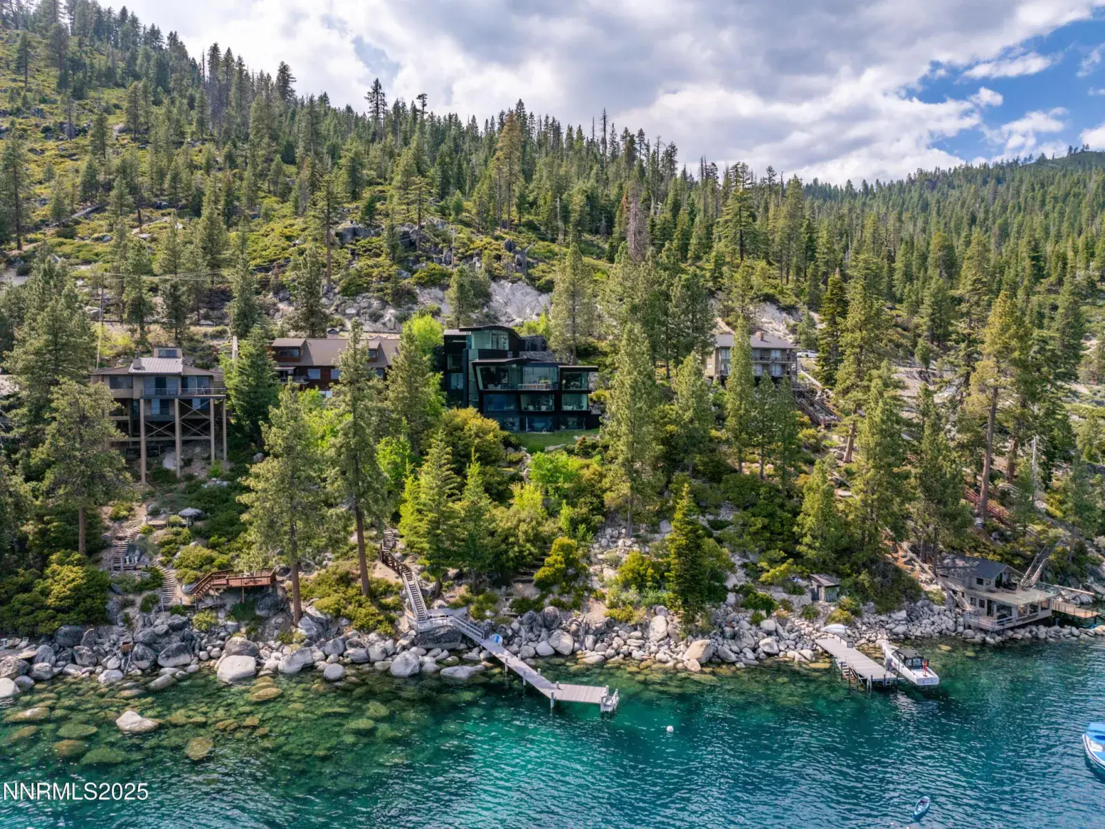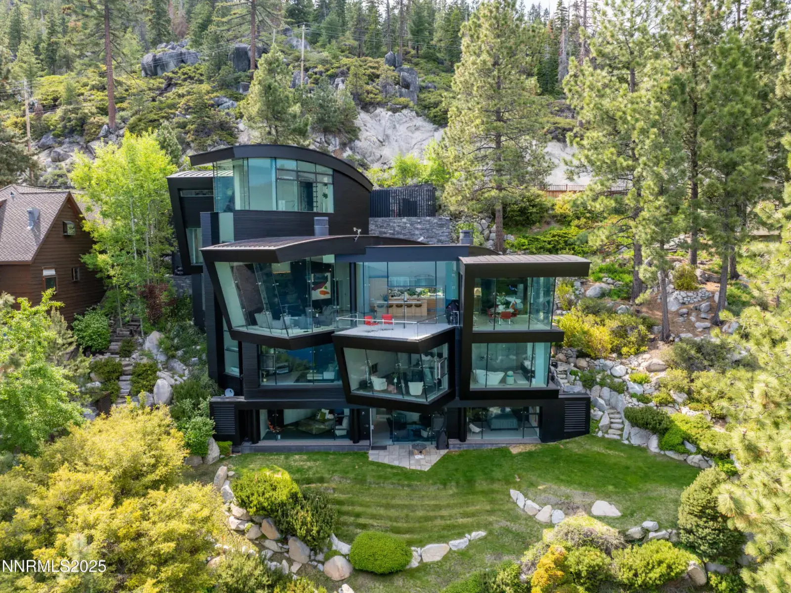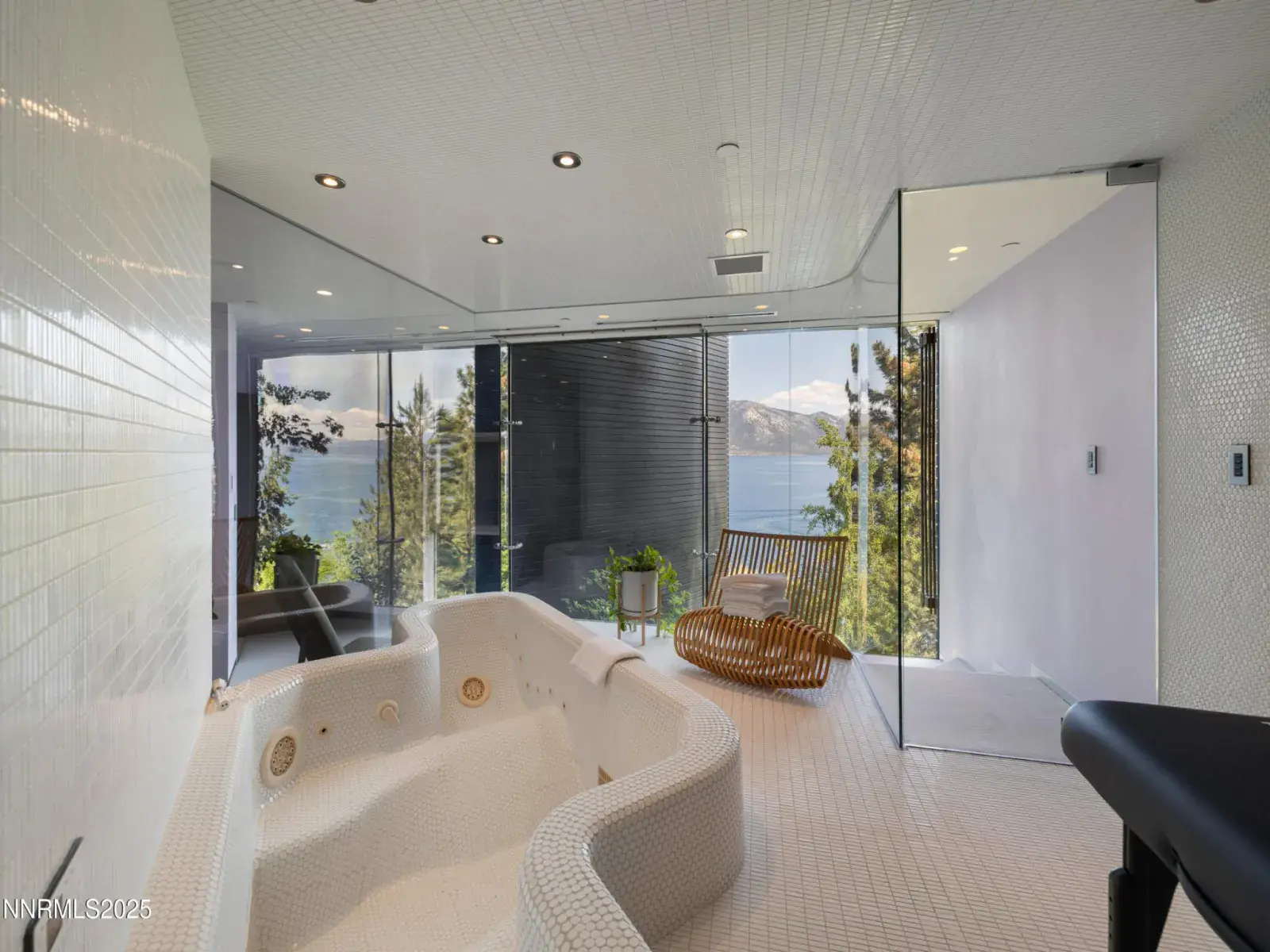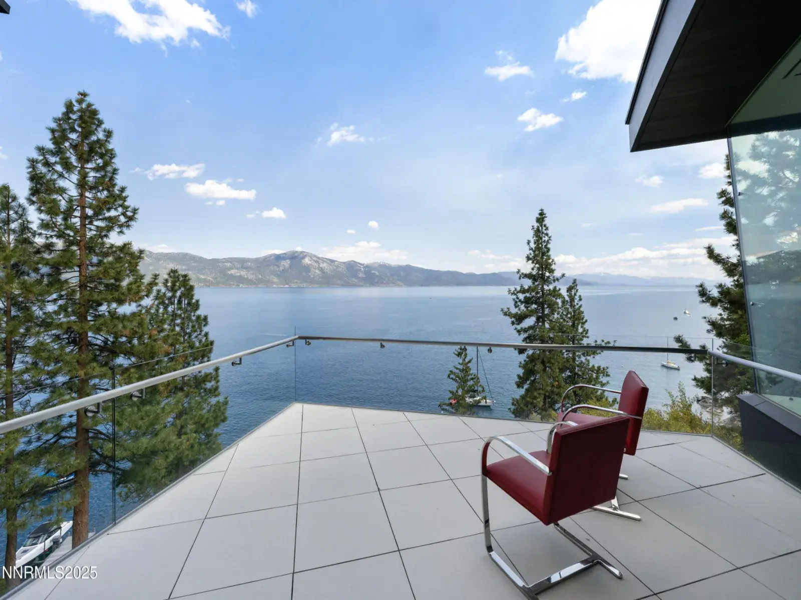 Architecturally significant and masterfully engineered, this nearly 10,000 sq ft residence is one of Lake Tahoe’s most striking modern homes. Designed by internationally acclaimed architect Mark Dziewulski, the estate is sculpted of glass and steel and perched above 98 feet of pristine Crystal Bay shoreline. A commercial-grade elevator encased in glass, a five-story floating staircase of layered glass, and floor-to-ceiling windows that tilt the eye toward the lake—every element is a feat of design and innovation. The home features 4-bedrooms, 4.5 baths, multiple lounge spaces, a dedicated spa and wellness center with gym, steam room, and a hot tub that fills and drains at the touch of a button. The upper-level great room and butler’s kitchen open to a heated lakeview deck through a massive pivoting glass door, perfect for entertaining. Custom cabinetry, radiant heat, recessed blinds, a heated driveway, and a large full-home generator deliver comfort with elevated precision. Outdoors, enjoy a steel and Trex pier with a 3 ton boat lift, two buoys, a landscaped lawn at the water’s edge, and rare privacy for a lakefront parcel of this caliber. The .49-acre lot is designed for seamless lakeside living, complete with architectural landscaping and automated irrigation. A granite sculpture by famed artist Jesús Moroles anchors the property in artistic legacy. Located in Nevada with no state income tax, this offering combines refined lifestyle with long-term financial advantage. Offered with full furnishings negotiable. This is not just a lakefront home—it’s a livable work of art.