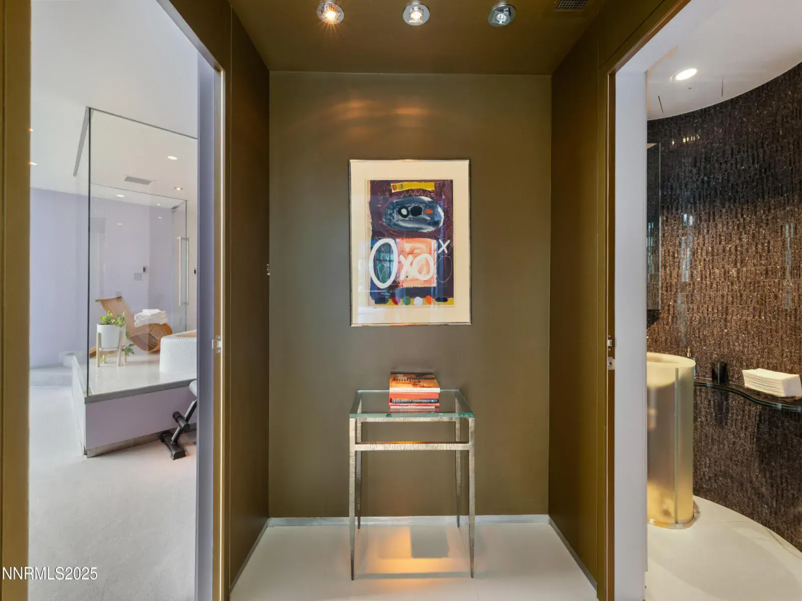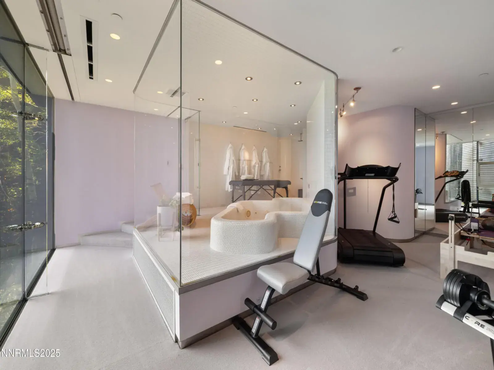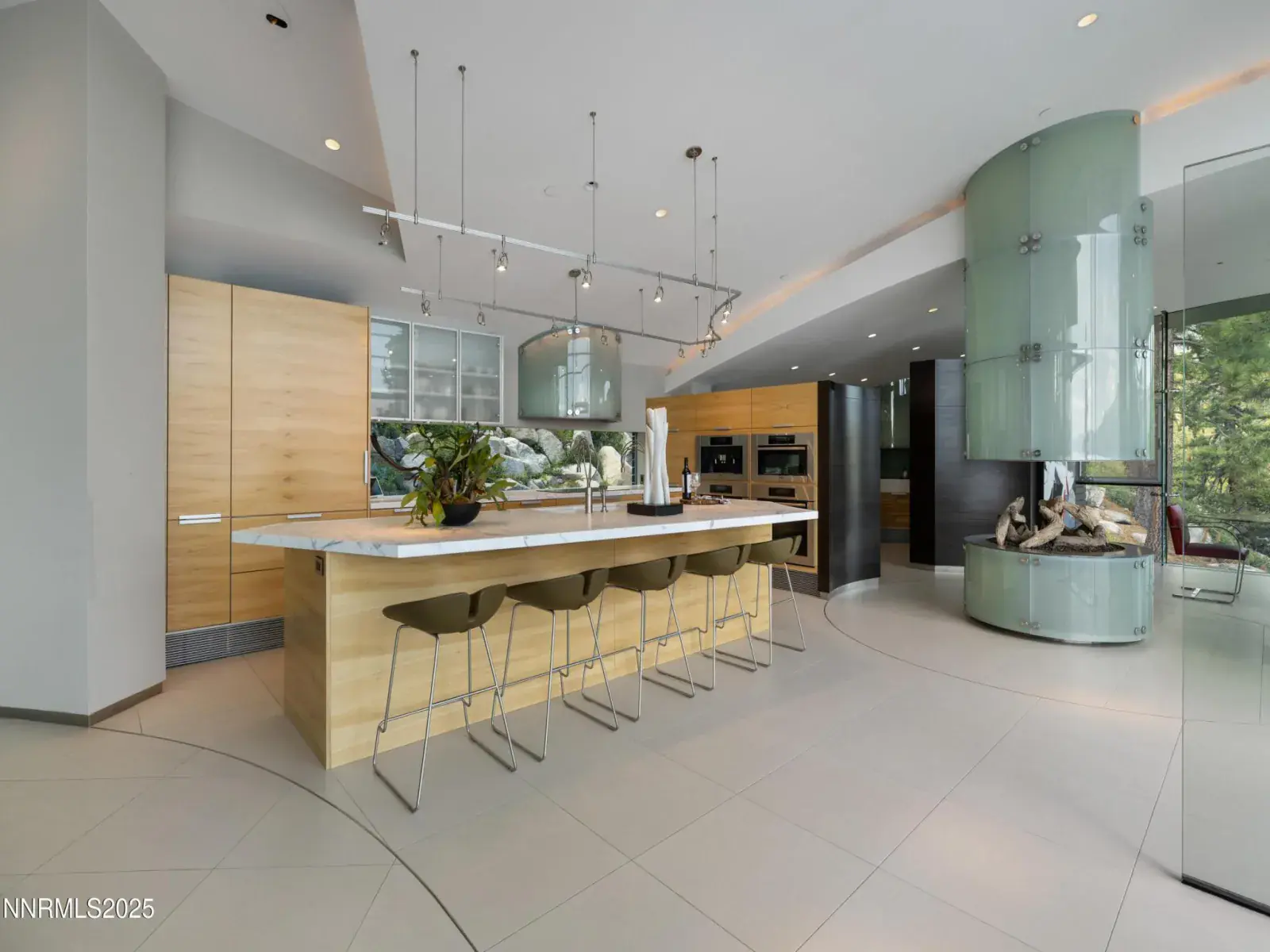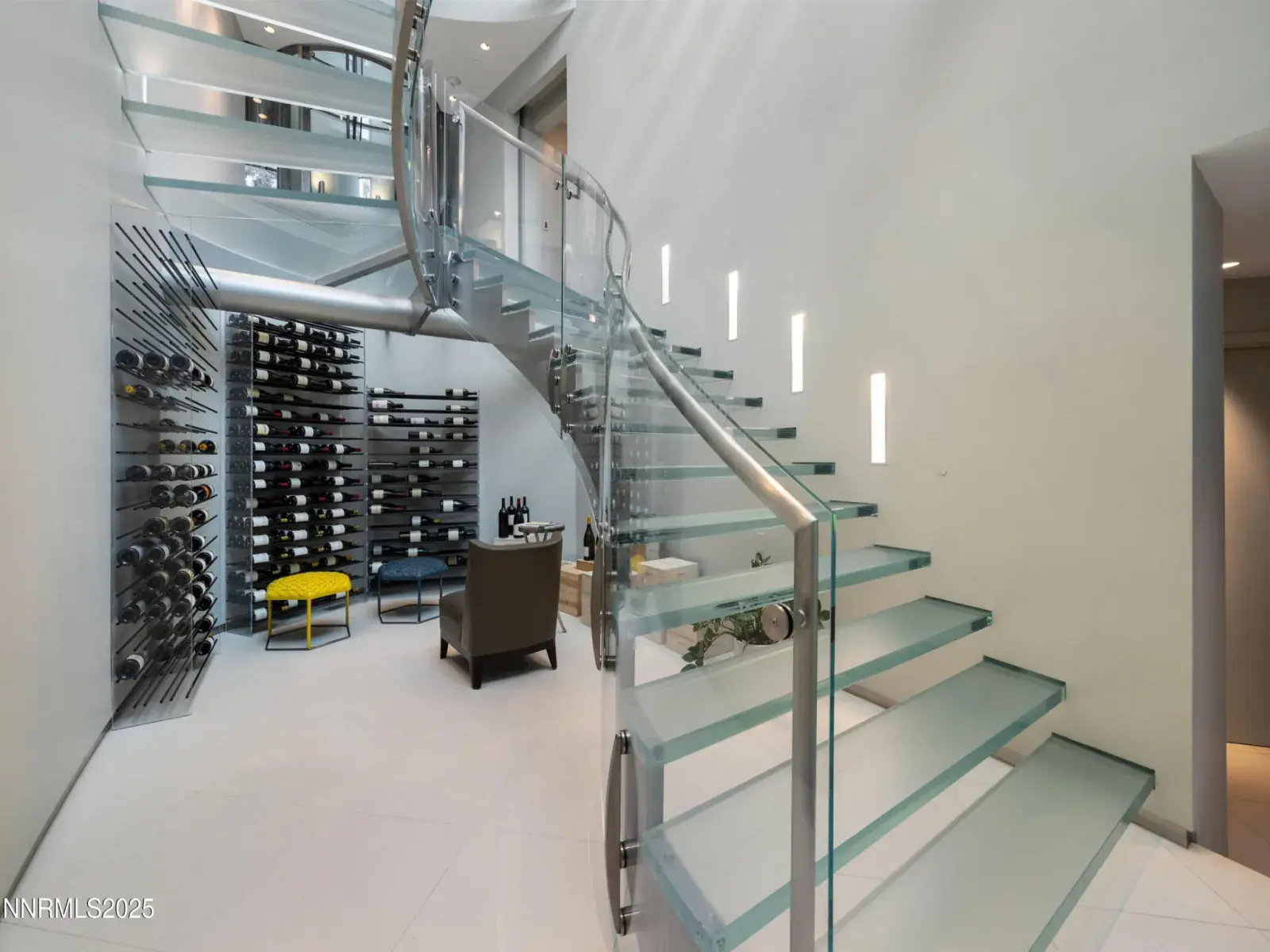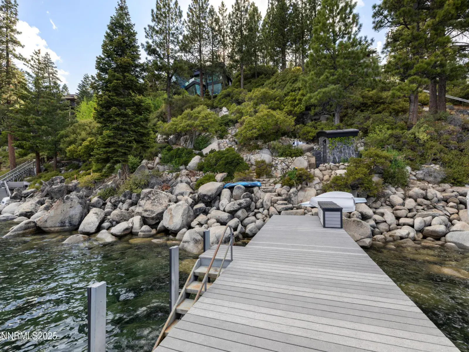 Architecturally significant and masterfully engineered, this nearly 10,000 sq ft residence is one of Lake Tahoe’s most striking modern homes. Designed by internationally acclaimed architect Mark Dziewulski, the estate is sculpted of glass and steel and perched above 98 feet of pristine Crystal Bay shoreline. A commercial-grade elevator encased in glass, a five-story floating staircase of layered glass, and floor-to-ceiling windows that tilt the eye toward the lake—every element is a feat of design and innovation. The home features 4-bedrooms, 4.5 baths, multiple lounge spaces, a dedicated spa and wellness center with gym, steam room, and a hot tub that fills and drains at the touch of a button. The upper-level great room and butler’s kitchen open to a heated lakeview deck through a massive pivoting glass door, perfect for entertaining. Custom cabinetry, radiant heat, recessed blinds, a heated driveway, and a large full-home generator deliver comfort with elevated precision. Outdoors, enjoy a steel and Trex pier with a 3 ton boat lift, two buoys, a landscaped lawn at the water’s edge, and rare privacy for a lakefront parcel of this caliber. The .49-acre lot is designed for seamless lakeside living, complete with architectural landscaping and automated irrigation. A granite sculpture by famed artist Jesús Moroles anchors the property in artistic legacy. Located in Nevada with no state income tax, this offering combines refined lifestyle with long-term financial advantage. Offered with full furnishings negotiable. This is not just a lakefront home—it’s a livable work of art.
