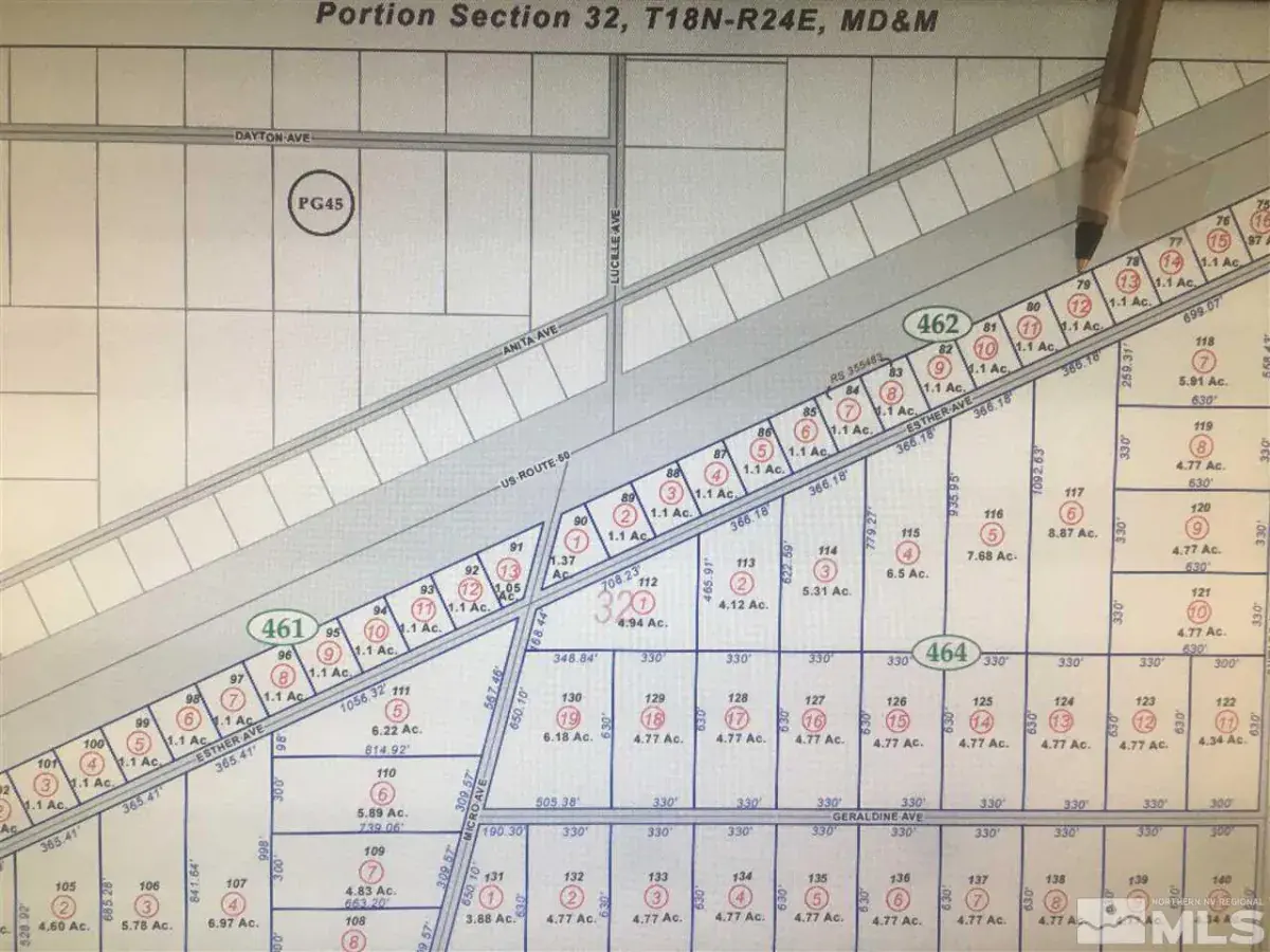 1 Acre Commercial-C1 on higher ground with very slight down slope if driving from the west towards Silver Springs. Commercial land in Booming Silver Springs within 5 minutes to USA Pkwy 439 then another 25 minutes to the growing Reno Tahoe Industrial Center. Esther Ave. is one block South of a paved US 50 frontage road that parallels US 50 East–meaning your business could have store brand visibility. Store frontage would have Southern exposure. Located between Shirlee and Micro Way., Buyers to do their own diligence regarding utility hook ups and fees.