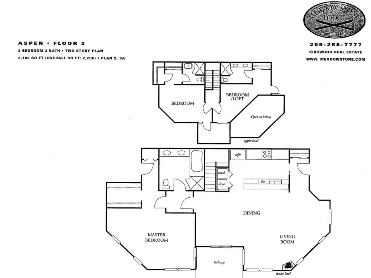 Meadow Stone Lodge is a distinguished community of 33 luxurious residences at the base of Kirkwood Ski Resort, nestled adjacent to the protected Kirkwood meadow. The architecture, inspired by the Arts & Crafts movement and designed by The Babcock Design Studios, combines rugged elegance with rustic charm. Expansive use of stone and heavy timber showcases exceptional craftsmanship and the superior quality of concrete and steel construction. It is just steps to the Cornice Express and to the meadow’s cross-country and snowshoe trails for all the skiing your heart desires!This spacious 4-bedroom, 3 and 1/2 bath residence, comfortably sleeps 10 guests. Decorated with mountain-style charm, the home exudes warmth and a true alpine feel. The chef’s kitchen boasts granite slab countertops and stainless-steel appliances, and a long granite bar counter, ideal for entertaining after a day of skiing or hiking. Large divided-light windows and two private balconies – one at the living and master level, the other at the upper bedroom level – with log railings offer a refreshing cross-breeze and spectacular views. Peek through your living room window for a glimpse of the chairlifts and swift access to the mountain. Enjoy a spacious living area and adjoining master suite while guests and children rest, sleep or play in the three upstairs bedrooms. The river-rock fireplace with log mantle and the tucked away boot bench and hooks for hanging wet parkas is the finishing touch for your delightful ski-home-away-from-home. Meadow Stone Lodge #312 is one of only two condominiums at the top of the Aspen building. The experience is private and residential. At the ground level of the same building, enjoy an exclusive Owner’s Club with fitness center, sauna, and lounge with a kitchen and a media/game center. The building is all concrete for superior quality and soundproofing. Property is sold furnished and turn-key and has been meticulously well maintained. One assigned underground parking space in the Larkspur building with overflow parking at the street level of the Aspen building.Enjoy access to the near-by Kirkwood Recreation Center and Owner’s Club (KCA) with outdoor pool and Jacuzzis, and indoor sauna, steam, fitness center, massage services, bar and lounge. HOA dues include the KCA monthly as well. It is customary for the buyer to pay the 3% of purchase price real estate transfer fee to the KCA.