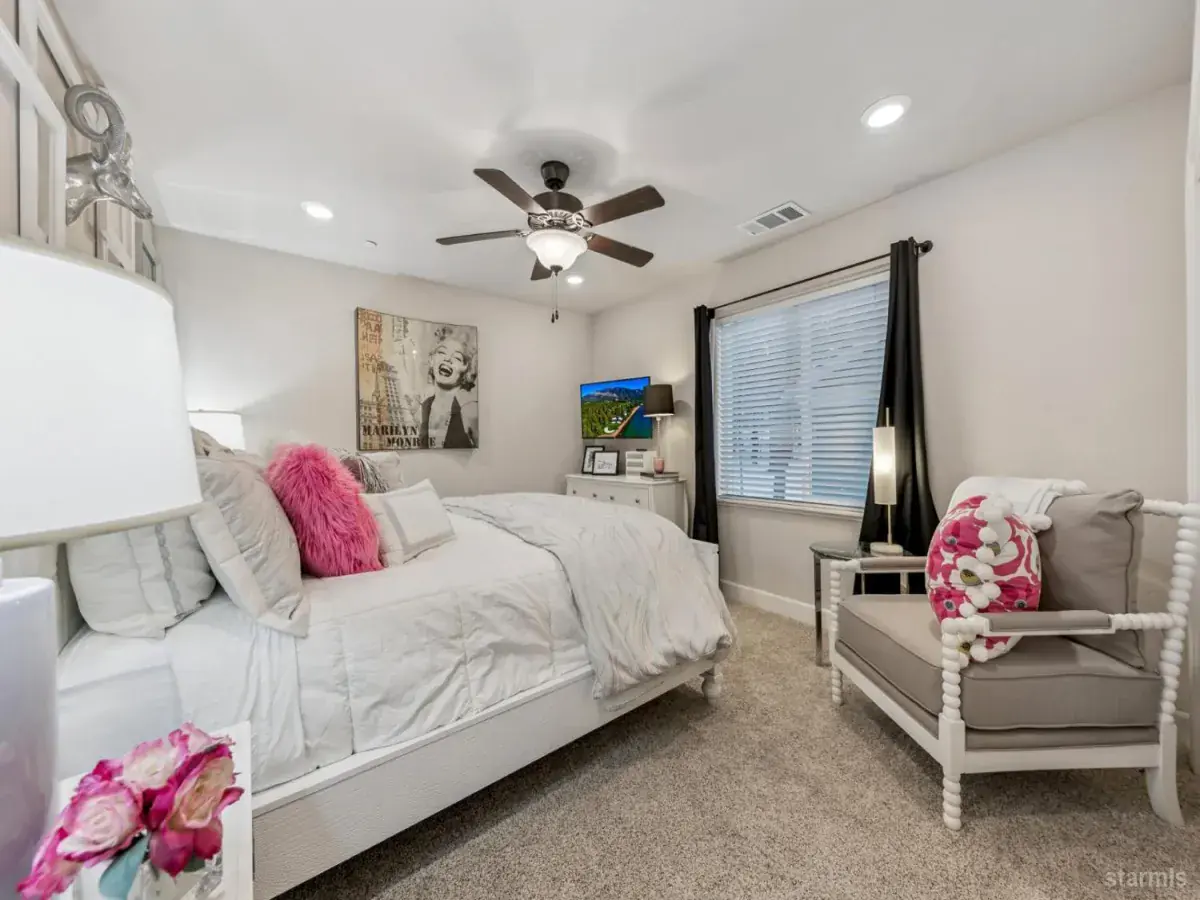Wildwood Commons is a gated, 5-acre luxury townhome community completed in 2019 and adjacent to greenbelt and open space. Positioned toward the rear of the development and backing to forest, this residence occupies one of the most private locations within the community, set apart from street-adjacent and interior homes while remaining centrally located.- -Access is easy and efficient, with Pioneer Trail just around the corner and roughly one mile in nearly every direction to Ski Run Marina, Heavenly Ski Resort, the Casino Corridor, and the dining and entertainment along Ski Run Boulevard. It is a true all-seasons location that balances convenience with a quiet, forested setting.- -The community features cohesive architecture with strong exterior detailing and low-maintenance fiber-cement siding and trim. There are 23 total residences set across the landscaped grounds, with additional open space throughout the parcel that reinforces a sense of openness and privacy.- -Inside, the home offers true ground-level living with zero stairs into the main level. The lower floor includes a comfortable living room centered around a stone-wrapped gas fireplace, opening to the dining area and a spacious kitchen with a large island, wine refrigerator, double ovens, custom cabinetry, slab granite counters, and forest views. A flexible bonus room on this level works well as an office, family room, nursery, or optional fifth bedroom.- -The oversized garage provides tall ceilings, an 8-foot overhead door, and ample storage, along with a high-efficiency furnace and tankless water heater.- -Upstairs are four bedrooms plus a loft, including two with ensuite baths. The primary suite features a large stall shower, soaking tub, dual vanities, and a walk-in closet.- -HOA dues are reasonable and include snow removal, water, trash, exterior maintenance, and grounds care, creating a low-maintenance ownership opportunity. The home may also trade with quality furnishings and decor for the right price.