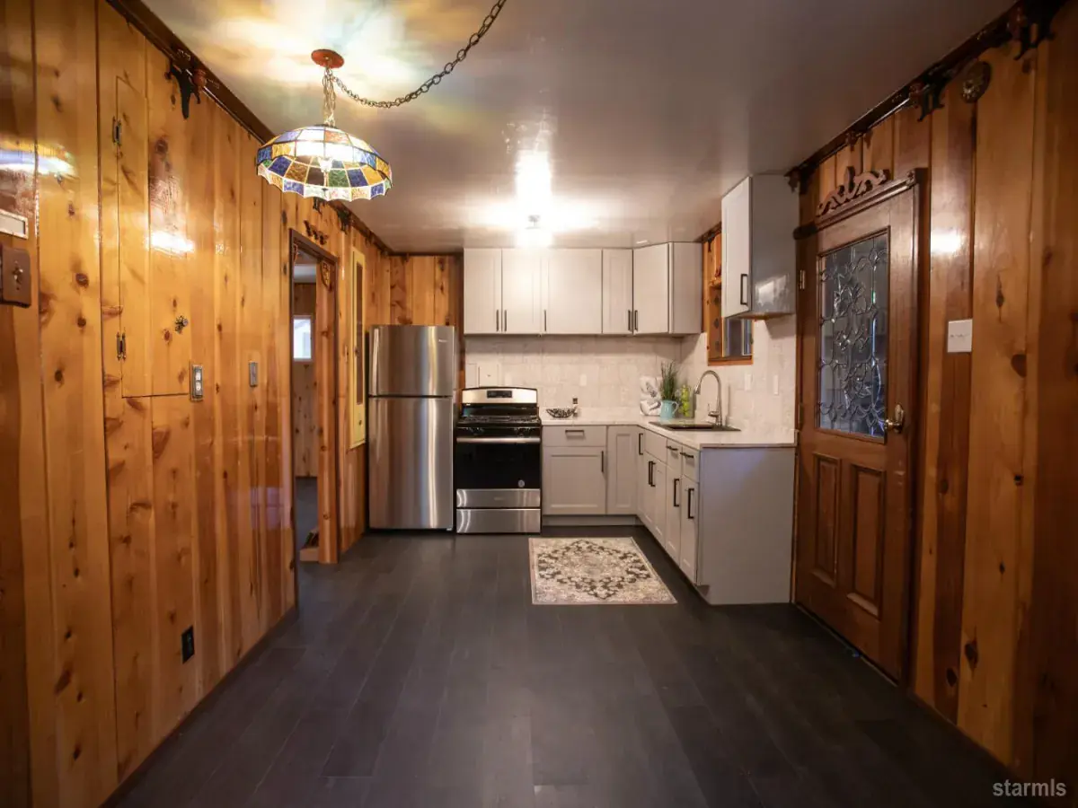 Charming remodeled cabin in the Y neighborhood of South Lake Tahoe! This rustic, cozy cabin features 2 bedrooms, 1 bathroom, a remodeled kitchen with updated cabinets, countertops, and appliances. The interior boasts new laminate flooring and carpet, creating a warm and inviting atmosphere. The property also includes a durable metal roof, ensuring long-lasting protection from the elements.The location of this cabin offers easy access to the natural beauty of the South Lake Tahoe area, providing a serene retreat for outdoor enthusiasts. With its recent updates and convenient location, this cabin presents an excellent opportunity for those seeking a comfortable Tahoe cabin in a desirable location. Don’t miss the chance to make this delightful cabin your own or a possible vacation rental property!