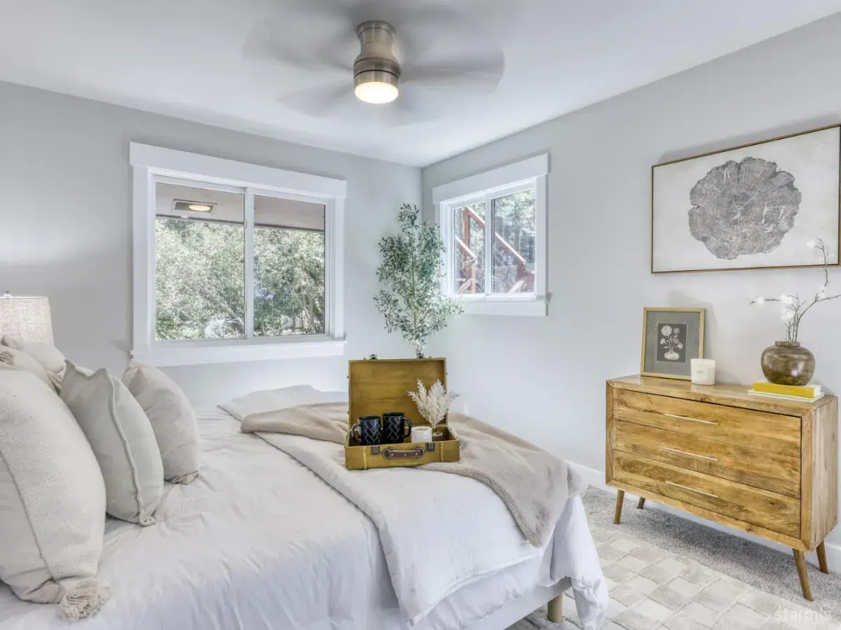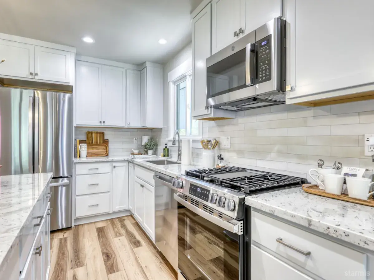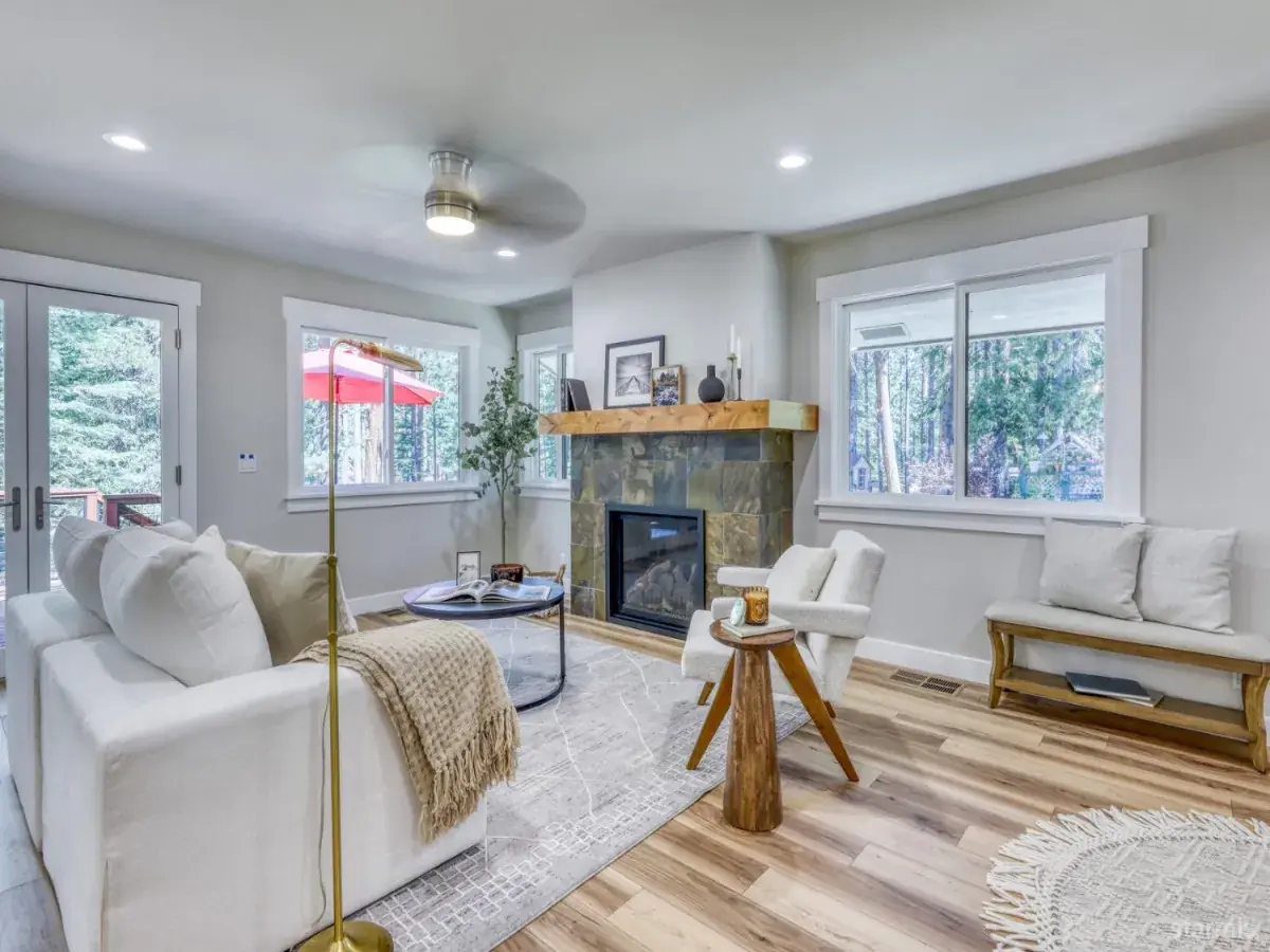 Be home for the Holidays and our WinterWelcome to 1352 Tata Lane, a masterfully rebuilt Craftsman-style retreat where mountain comfort meets refined living, nestled within what feels like your very own private park. This hidden gem backs directly to miles of forested USFS land and a retired road easement, offering unparalleled privacy and a daily invitation to explore nature’s beauty right outside your door.From the moment you arrive, this lovingly crafted 2-bedroom, 2-bath single-story home welcomes you with warmth, elegance, and an effortless floor plan across 1,200 square feet of thoughtfully designed living space. Every corner reflects top-of-the-line construction, premium materials, and meticulous craftsmanship where timeless style frames stunning views of the surrounding Tahoe landscape.Inside, the slate-wrapped fireplace anchors the great room with subtle sophistication, while French doors invite the outdoors in seamlessly blending home office spaces, gathering spots, and entertaining areas with fresh mountain air. Whether you’re enjoying a morning hike, an afternoon ski through the woods, or an evening cocktail fireside, the home flows in perfect harmony with your lifestyle.The chef’s kitchen is equally impressive, designed for both function and flair the perfect place to prepare a cozy meal or host friends and family. Generous bedrooms and spa-inspired baths lie just down the hall, offering restful retreats at day’s end.Located at the peaceful cul-de-sac end of Tata Lane, this property offers the rare combination of serenity, scenery, and superior craftsmanship a truly magical place you’ll always want to return to.