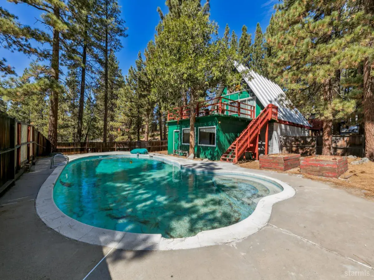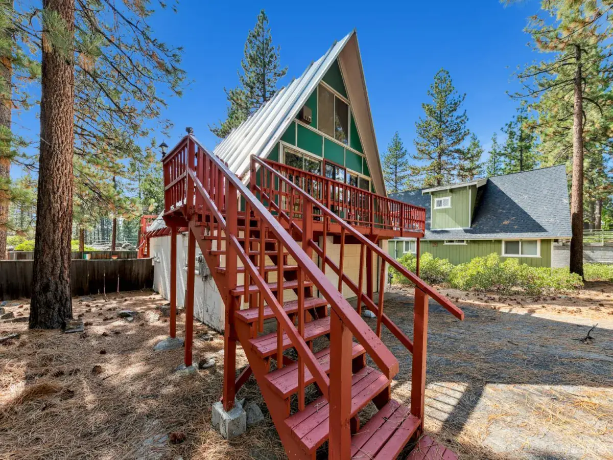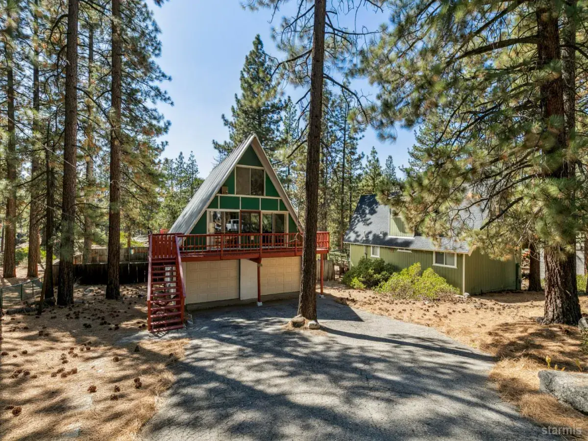 A RARE opportunity in the highly desirable Lakeview Heights neighborhood! Discover this stunning A-Frame home located in the heart of South Lake Tahoe, perfectly positioned near Heavenly Ski Resort for year-round mountain adventures. This charming 3-bedroom, 2.5 bathroom retreat sits on an expansive 10,890 square foot lot that backs directly to United States Forest Service land, offering unparalleled privacy and natural beauty.The living area features tall- vaulted ceilings, a spacious open layout, and a gas fireplace. The main level features a bedroom, full bathroom, half bathroom, and a large loft-style bedroom upstairs offering additional space. The third bedroom includes a separate entrance with a dedicated full bathroom and laundry area, making it ideal for guests or potential rental income opportunities.Outside, the fully fenced backyard creates a private oasis complete with a patio area and refreshing pool, and huge deck – a perfect combination for relaxing and entertaining. The oversized driveway and two-car garage provide ample parking and storage for all your mountain gear and recreational equipment, boat, or RV.Located on a quiet street just minutes from the base of Heavenly Ski Resort, the casinos, the beach, and great dining and shopping options, this is one of Tahoe’s most desirable neighborhoods.