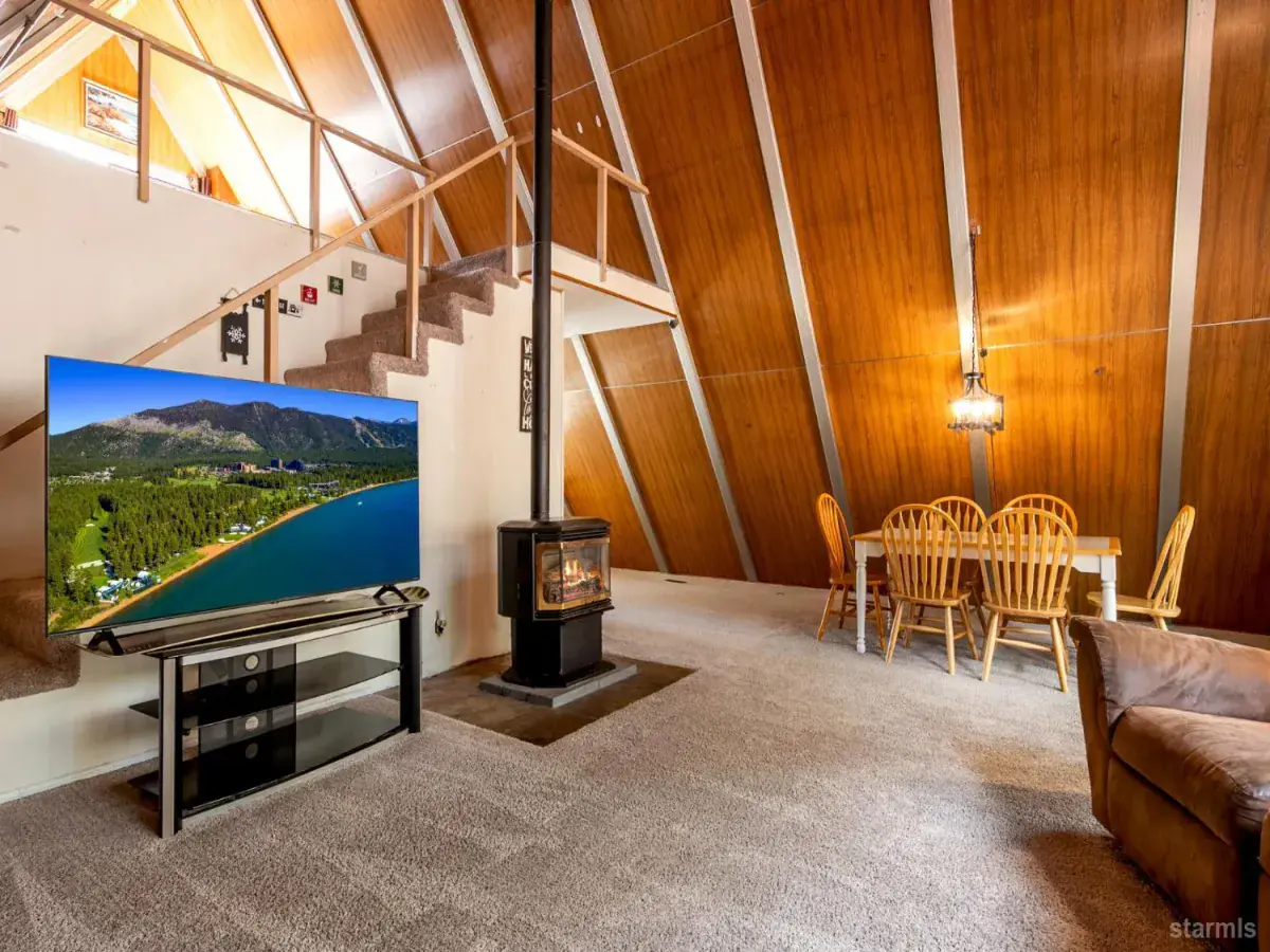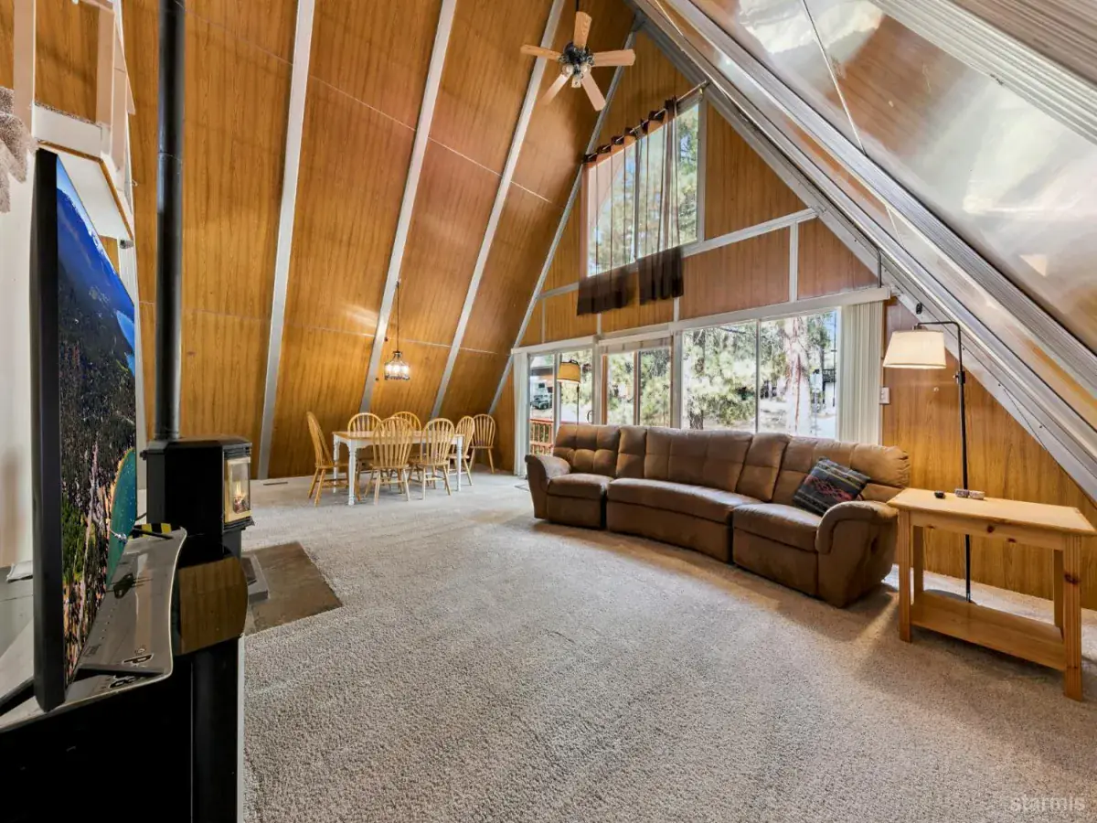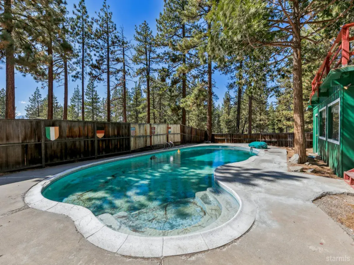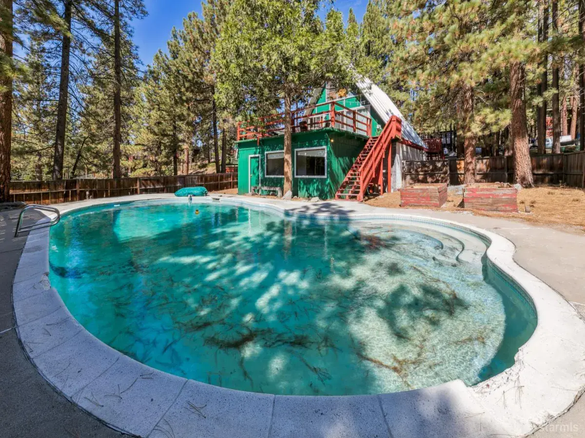 A RARE opportunity in the highly desirable Lakeview Heights neighborhood! Discover this stunning A-Frame home located in the heart of South Lake Tahoe, perfectly positioned near Heavenly Ski Resort for year-round mountain adventures. This charming 3-bedroom, 2.5 bathroom retreat sits on an expansive 10,890 square foot lot that backs directly to United States Forest Service land, offering unparalleled privacy and natural beauty.The living area features tall- vaulted ceilings, a spacious open layout, and a gas fireplace. The main level features a bedroom, full bathroom, half bathroom, and a large loft-style bedroom upstairs offering additional space. The third bedroom includes a separate entrance with a dedicated full bathroom and laundry area, making it ideal for guests or potential rental income opportunities.Outside, the fully fenced backyard creates a private oasis complete with a patio area and refreshing pool, and huge deck – a perfect combination for relaxing and entertaining. The oversized driveway and two-car garage provide ample parking and storage for all your mountain gear and recreational equipment, boat, or RV.Located on a quiet street just minutes from the base of Heavenly Ski Resort, the casinos, the beach, and great dining and shopping options, this is one of Tahoe’s most desirable neighborhoods.