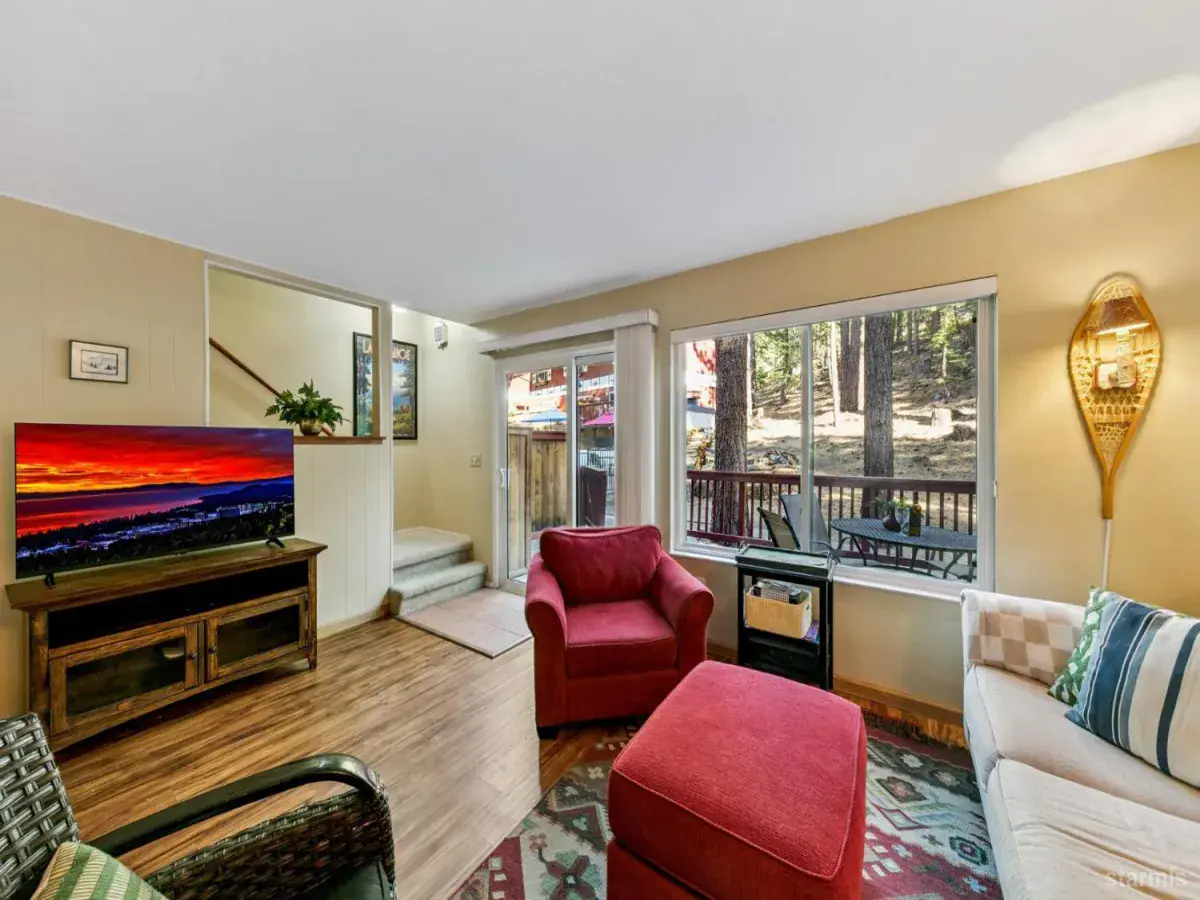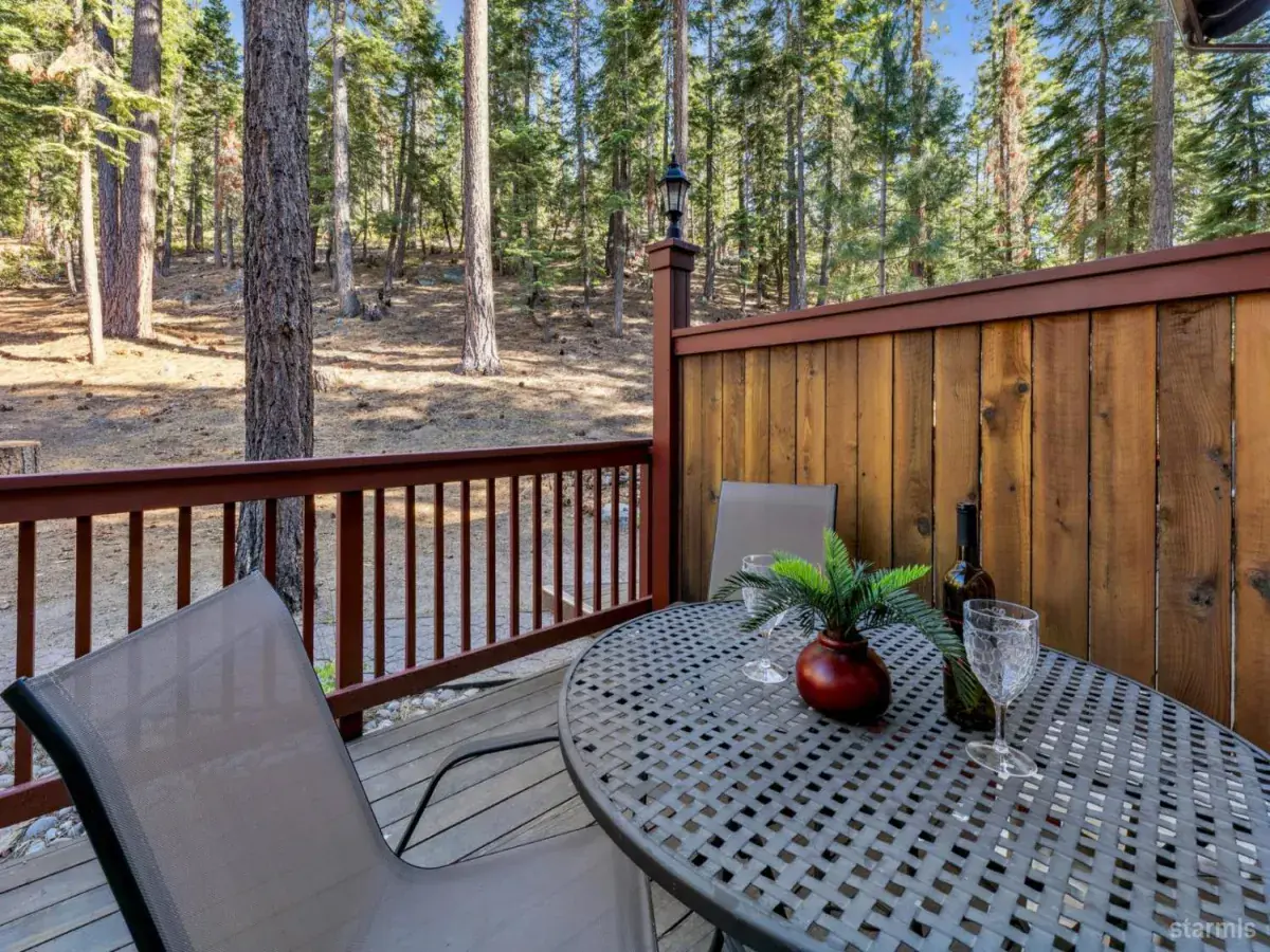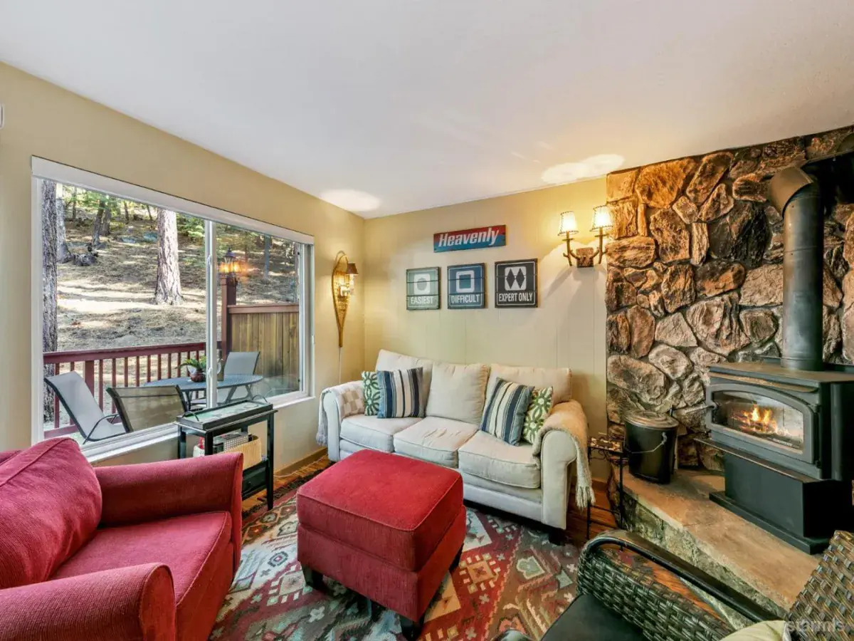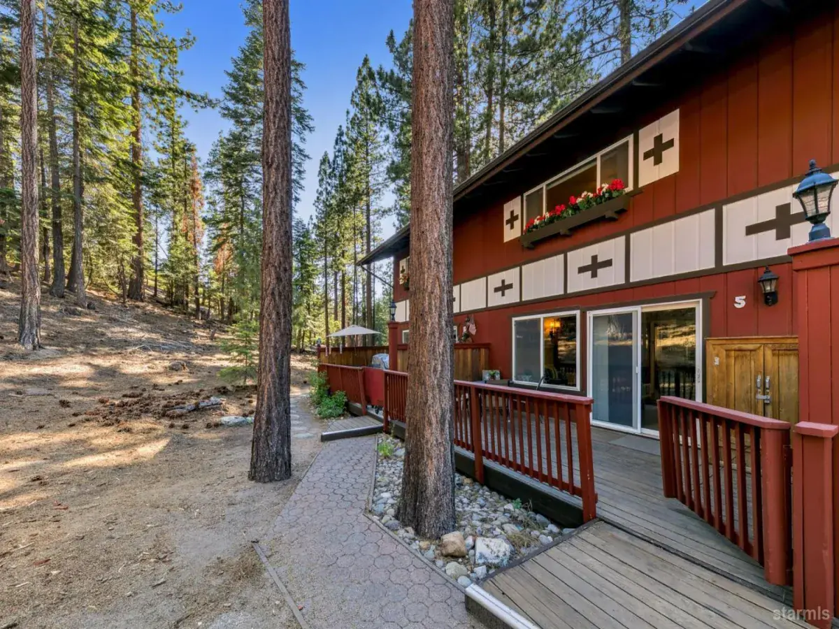 Sitzmark has only 12 units including a pool and BBQ area. Walk to Heavenly Ski Area CA base lodge. HOA is owner managed. Well maintained complex with pride of ownership that you can feelUnit 5 has a front patio deck that looks up the forested mountain with morning sun and perfect shade in the afternoon. A few steps away you will find a gated in-ground pool and BBQ area.Step inside to a welcome fire in the wood stove. Large eat in kitchen with breakfast bar.Another forested view out the back of the property. Separate laundry room and half bath. Upstairs there is a full bathroom and two comfortable sized bedrooms. Close enough to the village but far enough for the solitude everyone craves for. Just Perfect!