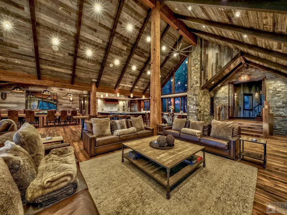 An Icon at Altitude – Gunbarrel Lodge – – A true titan among Tahoe’s most exclusive estates, this iconic alpine retreat sprawls across 15 private acres directly adjacent to Heavenly Ski Resort. As the only ski-in/ski-out residence on the California side of the mountain, its position is unmatched—and so are the panoramic lake and mountain views that stretch endlessly from every vantage point. – – A winding, gated approach leads to a striking porte-cochere and a six-car garage, topped by a four-bedroom guest residence complete with gourmet kitchen, expansive great room, covered outdoor dining, and a rooftop lounge with hot tub, fireplace, and unfiltered vistas of the basin. The compound itself delivers nearly 17,000 square feet of refined mountain living across two structures, offering 17 bedrooms and 18 baths, each appointed with sophisticated comfort and style. – – Inside, rustic grandeur meets modern craftsmanship. Soaring ceilings of reclaimed timber, circular-sawn hardwood floors with radiant heat, and hand-laid stonework create a richly textured ambiance throughout. The great room stuns with a glass wall that perfectly frames the lake, flooding the space with light and alpine energy. – – Culinary ambitions are met with a professional-grade kitchen featuring a 60-inch range, dual islands with natural-edge quartzite, a fully equipped butler’s pantry, and generous custom cabinetry. Outdoor living is equally prioritized—multiple expansive decks offer built-in grills, fire features, and lounge areas that invite unforgettable gatherings under open skies. – – Entertainment options span from a fully-loaded game lounge with multiple TVs, billiards, shuffleboard, and poker tables, to a tiered home theater and a 500-square-foot indoor pool suite, complete with steam room, sauna, and fireplace. – – This rare legacy compound includes 12 fireplaces, air conditioning, forced-air heat, backup generator, three laundry areas, and comes turnkey furnished. With a proven rental track record and a pedigree that includes appearances on global television, it offers not only an extraordinary place to live—but a brand of its own.