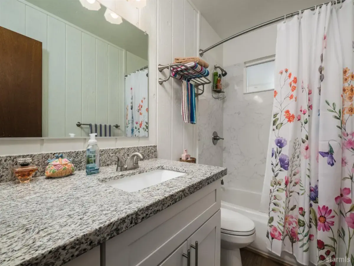 A house for all seasons! Whether you want to be in the snow, or out on the lake, this is the place to be. Since 2023, the owner has replaced the heater, updated both bathrooms, and remodeled the kitchen with new cabinets & granite countertops. The great room is the perfect gathering spot with vaulted ceilings, wood burning stove, dining bar, and sliders to the front deck. Enjoy the sunshine on your front deck and the large backyard. Start making your memories now!