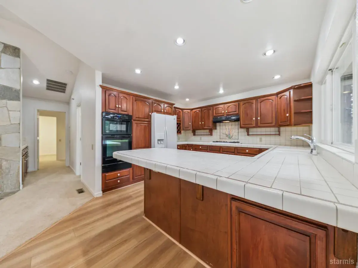 Brand new makeover! This lovely home just got prettier! The entire interior has been freshly painted in bright and soft colored hues. The kitchen, sunroom, bathrooms and laundry room have been upgraded with contemporary laminate plank flooring, and the remaining rooms have been renewed with high grade carpeting. The owner has spared no expense to satisfy the new home owner, and this could be Your home. Imagine waking up to crisp mountain air and the promise of adventure right out your front door! 1656 Oglala is a truly custom home in a setting of mountain tranquility. Bordering conservancy lots and just steps to miles of National Forest land, this home is in an unbeatable location. No large hills to climb in this conveniently level neighborhood which is easily accessible from Pioneer Trail. This lovely home is surrounded by homes of similar beautiful quality.Inside, you’ll find space brimming with potential and ready to make your own. Think cozy evenings after a day of mountain fun as you relax in your bright and open dining/living area by the fire. An extra large kitchen boasts of custom tile finishes, large breakfast bar and cherry cabinets. Daydream in your bonus, enclosed sun room which is located off the kitchen. The bright sitting room overlooks conservancy lots and has mountain views. One can also enjoy these view from the outside deck, located off the living room. A formal dining room, next to the kitchen is perfect for intimate, dining events.Among some of the custom built in features are an attractive custom display hutch which decorates the upstairs hall way; a large slate fireplace hearth in the living area; extra sinks with cabinets in the bedrooms.The large upstairs primary bedroom has a large walk in closet and master bath with double sinks and a jetted tub, perfect for soaking after a day on the slopes. A good sized, separate laundry room. is conveniently located off the garage.Bike trails are only 500 ft to El Dorado Nat Forest Trails!Live the Tahoe dream in this large, superior quality home.