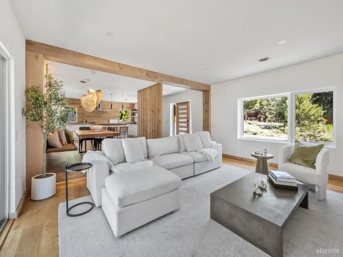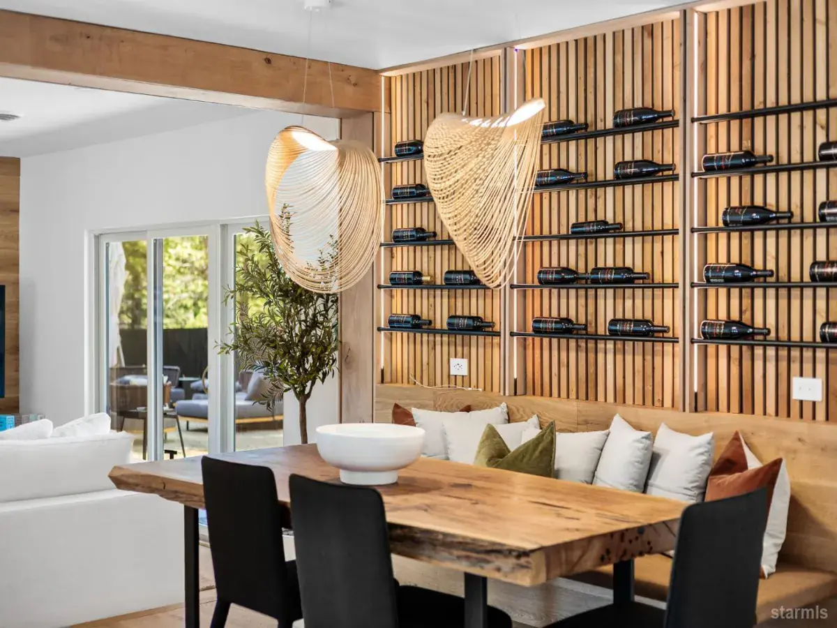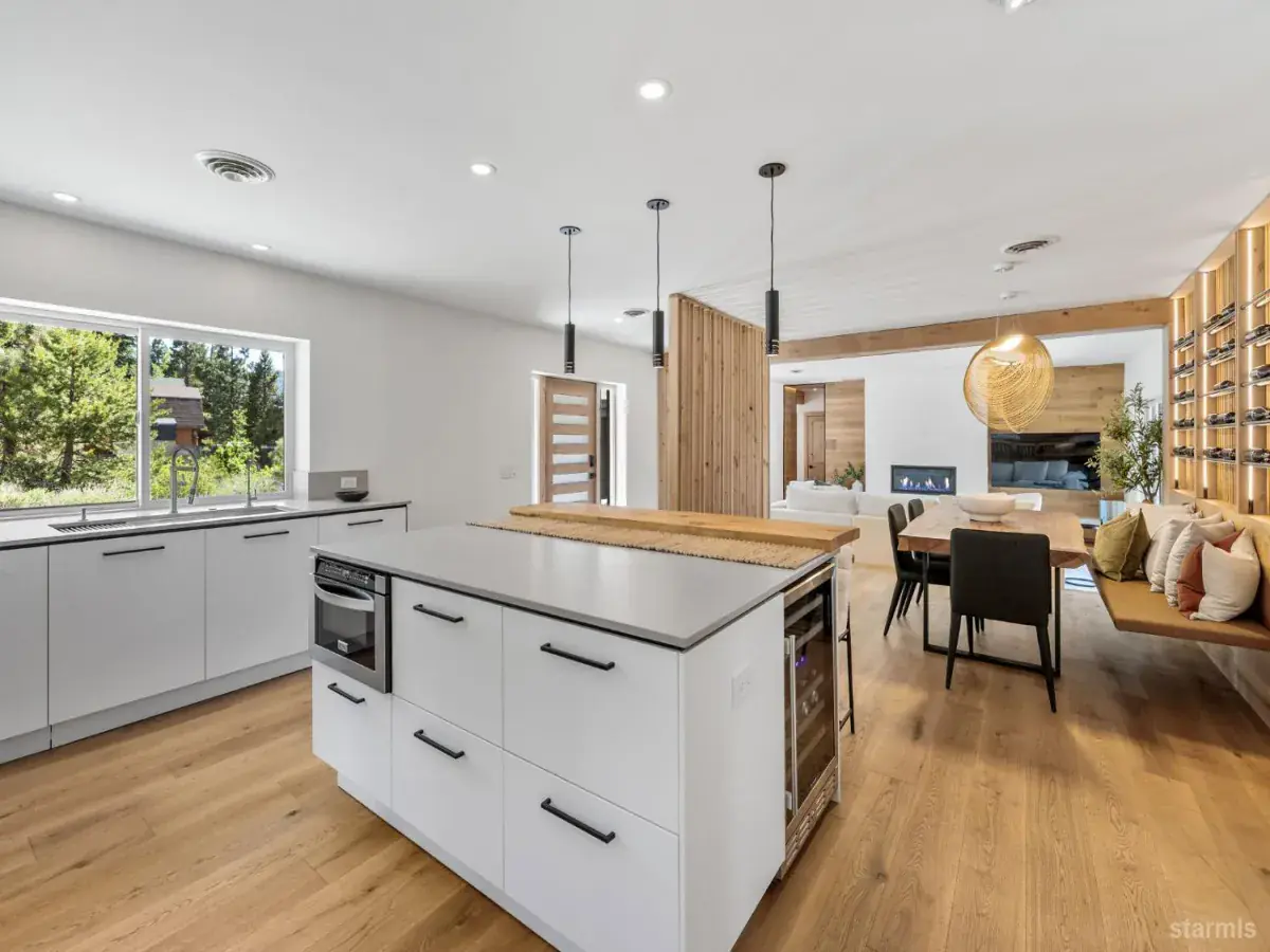 Immerse yourself in unparalleled eleganceThis newly renovated, single-level sanctuary is privately nestled on .42 acres and bordered on two sides by undeveloped land. A rare blend of seclusion and sophistication, this mountain oasis offers refined luxury exquisitely designed by Oberhauser Interiors. Each of the three spacious bedrooms features an en-suite bathroom with curbless showers and underfloor heating, offering both comfort and accessibility. The primary suite is a serene retreat, complete with a spa-inspired bathroom showcasing double vanities, a freestanding soaking tub, electric shades, and a walk-in closet with custom Elfa organization. Step directly onto the expansive, multi-use back patio, an ideal setting for seamless indoor-outdoor living and entertaining.The open-concept living and dining area is adorned with thoughtful, heartwarming design elements, including a custom gas fireplace, built-in dining bench, indirect lighting, and a stunning wine wall. The adjacent chef’s kitchen is a culinary dream, outfitted with top-of-the-line appliances from Miele, Fisher & Paykel, and ZLine. Highlights include a 48 professional-grade range with six burners and grill, double ovens, a microwave drawer, an appliance lift, quartz countertops, and a dual-zone wine fridge perfectly tailored to meet every chef’s desire.Blending the charm of Tahoe with modern resilience, this nearly new construction features wide-plank white oak engineered hardwood flooring, solid Knotty Alder interior doors, and unique built-in desks and counters crafted from reclaimed incense cedar. A 50-year roof, new forced-air furnace, Anderson composite windows and patio doors ensure lasting performance through all seasons.The home is future-ready with updated electrical wiring, a dedicated subpanel, and EV charging preparedness. Designer LED lighting both indoors and outpaired with dimmer controls creates an ambiance suited to both entertaining and peaceful retreats.Exceptional insulation, including soundproofing in interior walls and the concrete slab, ensures year-round comfort and serenity.Additional amenities include an oversized two-car garage and massive driveway which can hold many cars, a mudroom with radiant floor heating, and state-of-the-art smart home technology: Wi-Fi-enabled thermostats and garage doors, a Ring security system, and SmartCode keyless entry, all designed to deliver convenience and peace of mind.Perfectly positioned for lifestyle and leisure, this home offers easy access from Hwy 50 and is within walking distance to two golf courses, eclectic mixture of dining, a specialty grocery store, Tahoe Paradise Park and minutes from Lake Tahoe, world-class hiking, biking, and skiing.This is not just a home, it’s an experience. Indulge in the essence of mountain luxury and timeless design in your own private Tahoe sanctuary.