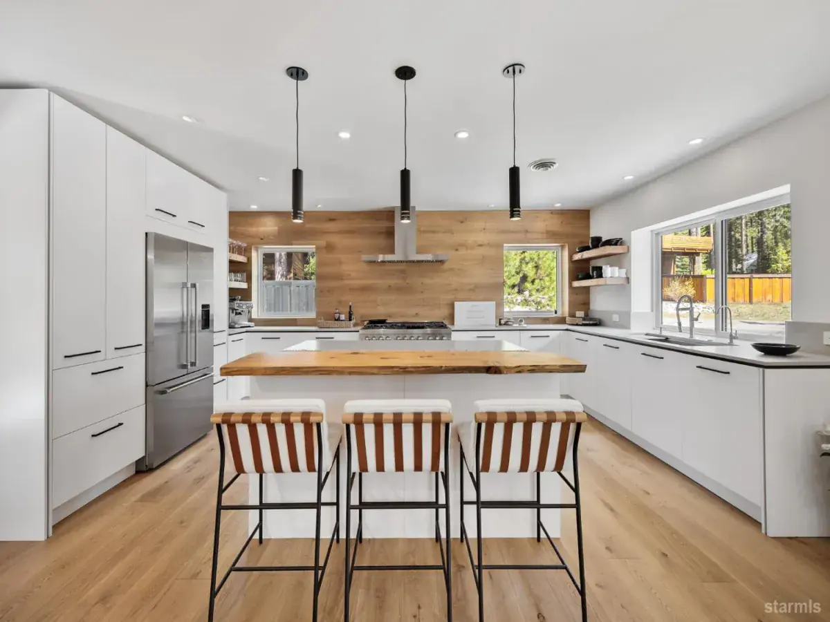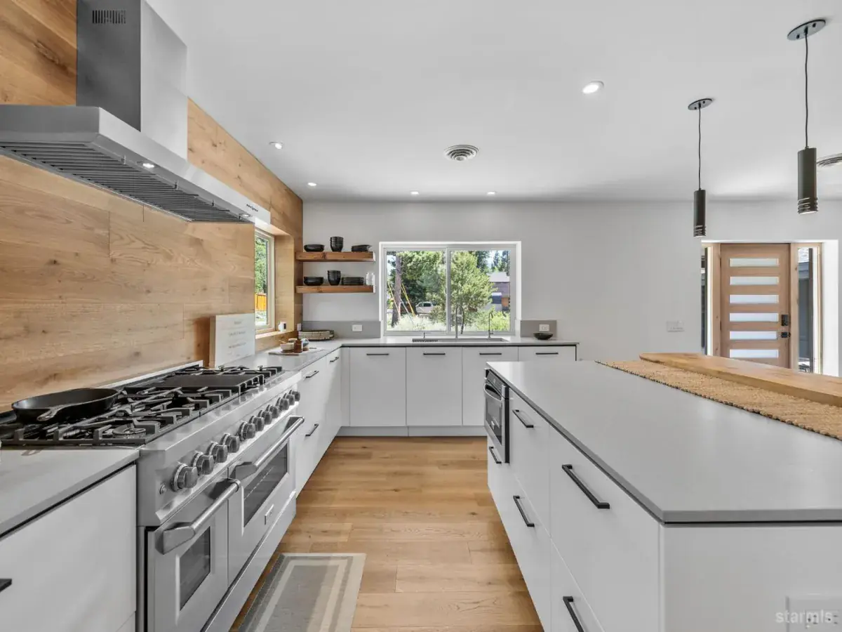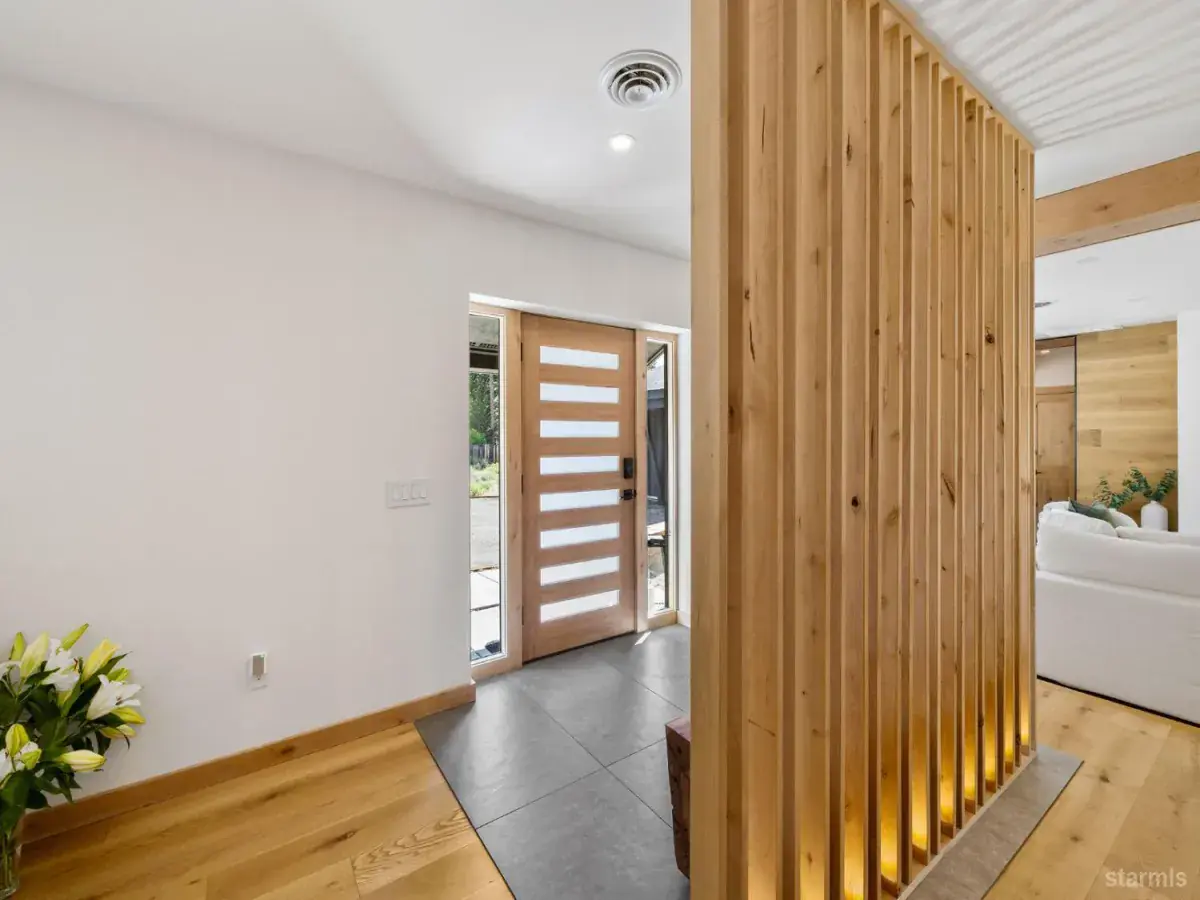 Immerse yourself in unparalleled eleganceThis newly renovated, single-level sanctuary is privately nestled on .42 acres and bordered on two sides by undeveloped land. A rare blend of seclusion and sophistication, this mountain oasis offers refined luxury exquisitely designed by Oberhauser Interiors. Each of the three spacious bedrooms features an en-suite bathroom with curbless showers and underfloor heating, offering both comfort and accessibility. The primary suite is a serene retreat, complete with a spa-inspired bathroom showcasing double vanities, a freestanding soaking tub, electric shades, and a walk-in closet with custom Elfa organization. Step directly onto the expansive, multi-use back patio, an ideal setting for seamless indoor-outdoor living and entertaining.The open-concept living and dining area is adorned with thoughtful, heartwarming design elements, including a custom gas fireplace, built-in dining bench, indirect lighting, and a stunning wine wall. The adjacent chef’s kitchen is a culinary dream, outfitted with top-of-the-line appliances from Miele, Fisher & Paykel, and ZLine. Highlights include a 48 professional-grade range with six burners and grill, double ovens, a microwave drawer, an appliance lift, quartz countertops, and a dual-zone wine fridge perfectly tailored to meet every chef’s desire.Blending the charm of Tahoe with modern resilience, this nearly new construction features wide-plank white oak engineered hardwood flooring, solid Knotty Alder interior doors, and unique built-in desks and counters crafted from reclaimed incense cedar. A 50-year roof, new forced-air furnace, Anderson composite windows and patio doors ensure lasting performance through all seasons.The home is future-ready with updated electrical wiring, a dedicated subpanel, and EV charging preparedness. Designer LED lighting both indoors and outpaired with dimmer controls creates an ambiance suited to both entertaining and peaceful retreats.Exceptional insulation, including soundproofing in interior walls and the concrete slab, ensures year-round comfort and serenity.Additional amenities include an oversized two-car garage and massive driveway which can hold many cars, a mudroom with radiant floor heating, and state-of-the-art smart home technology: Wi-Fi-enabled thermostats and garage doors, a Ring security system, and SmartCode keyless entry, all designed to deliver convenience and peace of mind.Perfectly positioned for lifestyle and leisure, this home offers easy access from Hwy 50 and is within walking distance to two golf courses, eclectic mixture of dining, a specialty grocery store, Tahoe Paradise Park and minutes from Lake Tahoe, world-class hiking, biking, and skiing.This is not just a home, it’s an experience. Indulge in the essence of mountain luxury and timeless design in your own private Tahoe sanctuary.