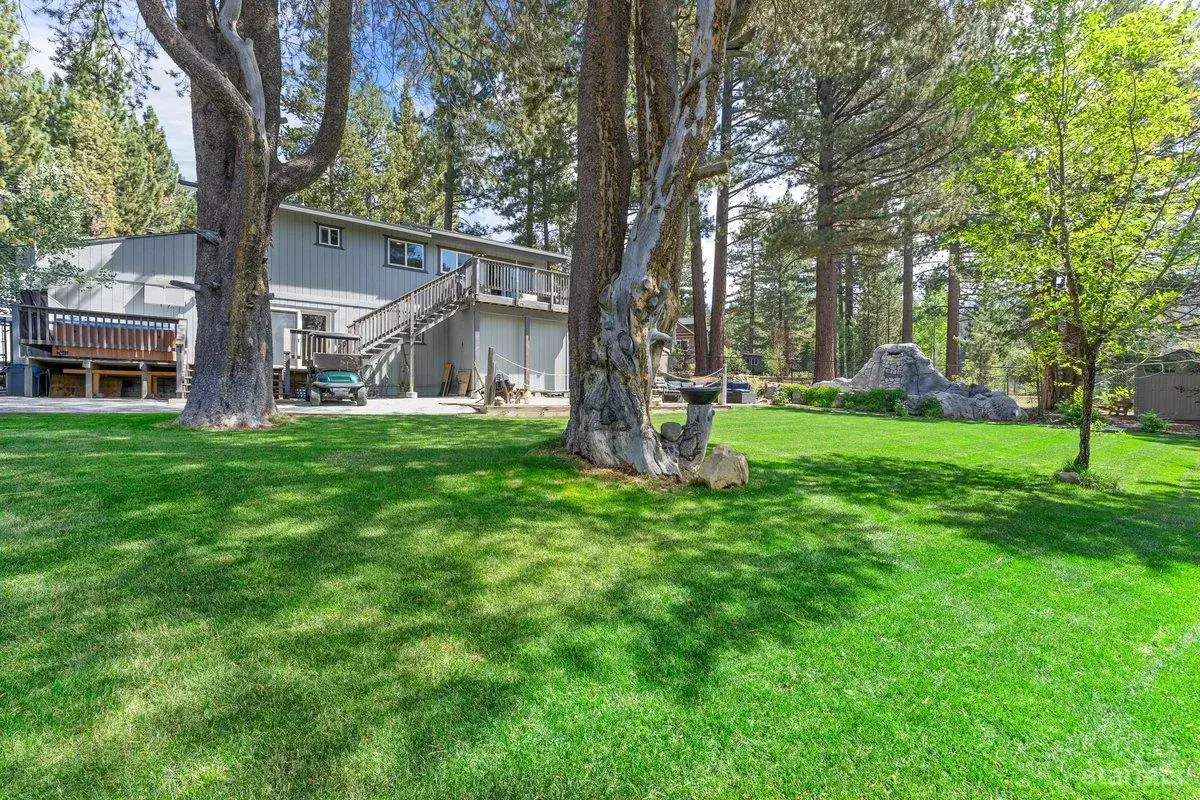 Welcome to 1935 Apache, a rare South Lake Tahoe property offering direct golf cart access to Tahoe Paradise Golf Courseone of only a handful with this exclusive feature. From your own backyard, cruise straight onto the fairways in your personal cart and enjoy sweeping, majestic views of the course framed by towering pines and open skies. The fully landscaped backyard is a true highlight, with lush green grass and ample space for entertaining or relaxing. A spacious back deck overlooks it all and includes a hot tub, perfectly positioned for soaking in the views or stargazing at night.Inside, the home features a warm and inviting layout designed for both comfort and entertaining. The upper level includes a great room with vaulted ceilings and a gas insert fireplace, while the lower level offers a large family room complete with a custom-built entertainment center and bar areaperfect for movie nights or hosting guests. Thoughtful details like a grand staircase, custom cabinetry, granite countertops, and a mix of hardwood and laminate flooring add both charm and functionality throughout.There’s also dedicated parking for a 45′ RV or trailer, making it easy to store your Tahoe-sized toys. Located in downtown Meyers, this home is just minutes from local restaurants, scenic hiking and biking trails, and a short drive to Sierra-at-Tahoe. Whether you’re hitting the slopes, the links, or just looking to unwind in a peaceful, private setting, 1935 Apache delivers the full Tahoe lifestylerare, ready, and unforgettable.