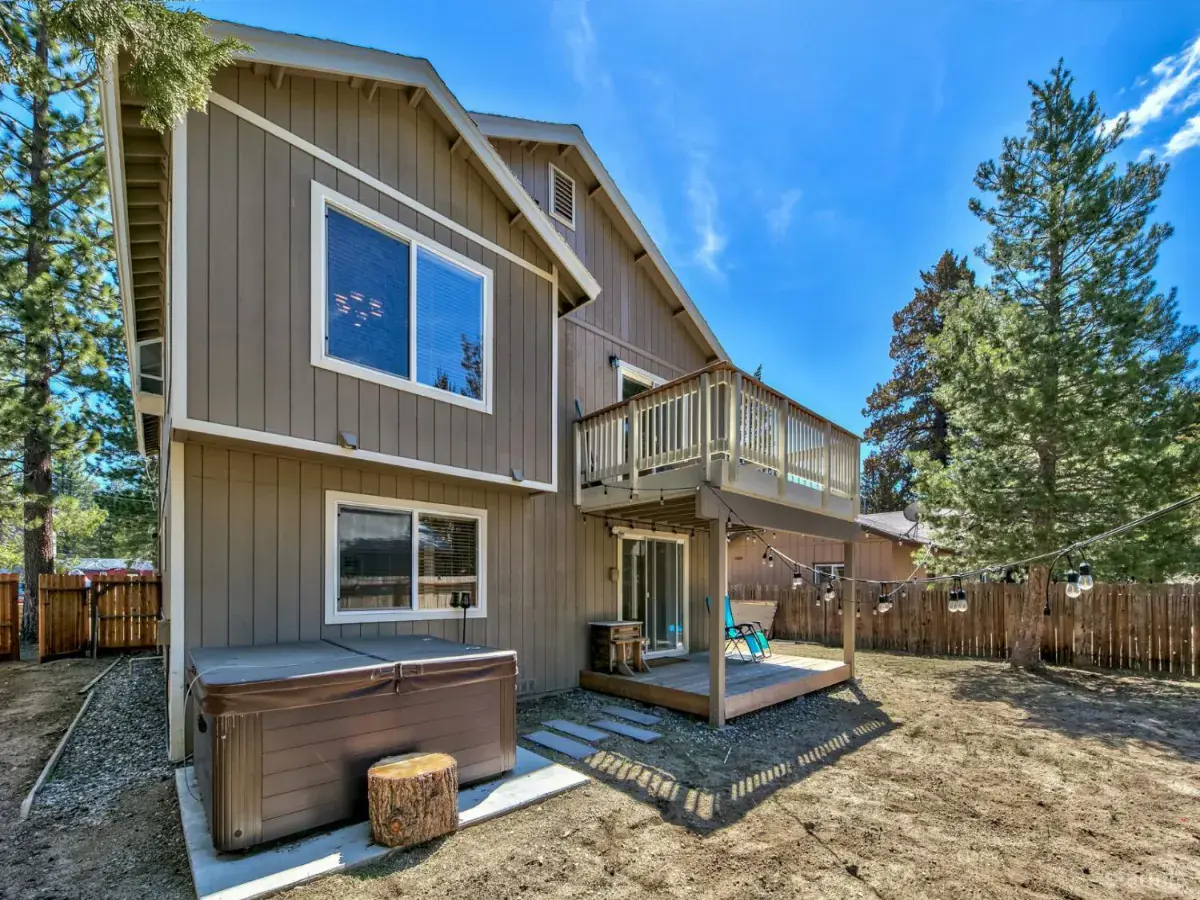 Welcome to this furnished home on a sunny and level lot in the heart of the Meyers community. The upstairs living boasts an open floor concept with vaulted ceilings, recessed lighting and large windows that offer plenty of natural light. The living area is perfect for entertaining guests with a cozy gas fireplace, half bath and sliding glass doors leading to a large deck. The kitchen/dining area features Oak cabinets, granite slab counters, gas stove, a built-in desk and laminate wood flooring. The spacious primary bedroom is complete with his and hers closets and an en-suite bathroom with a luxurious jetted tub, shower, and dual sink vanity. Downstairs are the two generously sized guest rooms, a full bath with shower/tub combo, laundry room and a family/game room. Enjoy the privacy of a fully fenced backyard with large deck and newer hot tub. Additional features include the oversized 2 car garage, metal bear box(trash receptacle), and RV/boat parking.