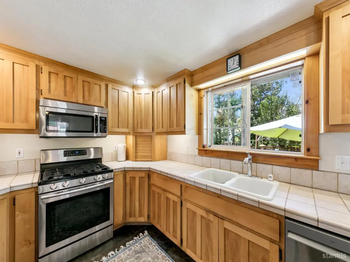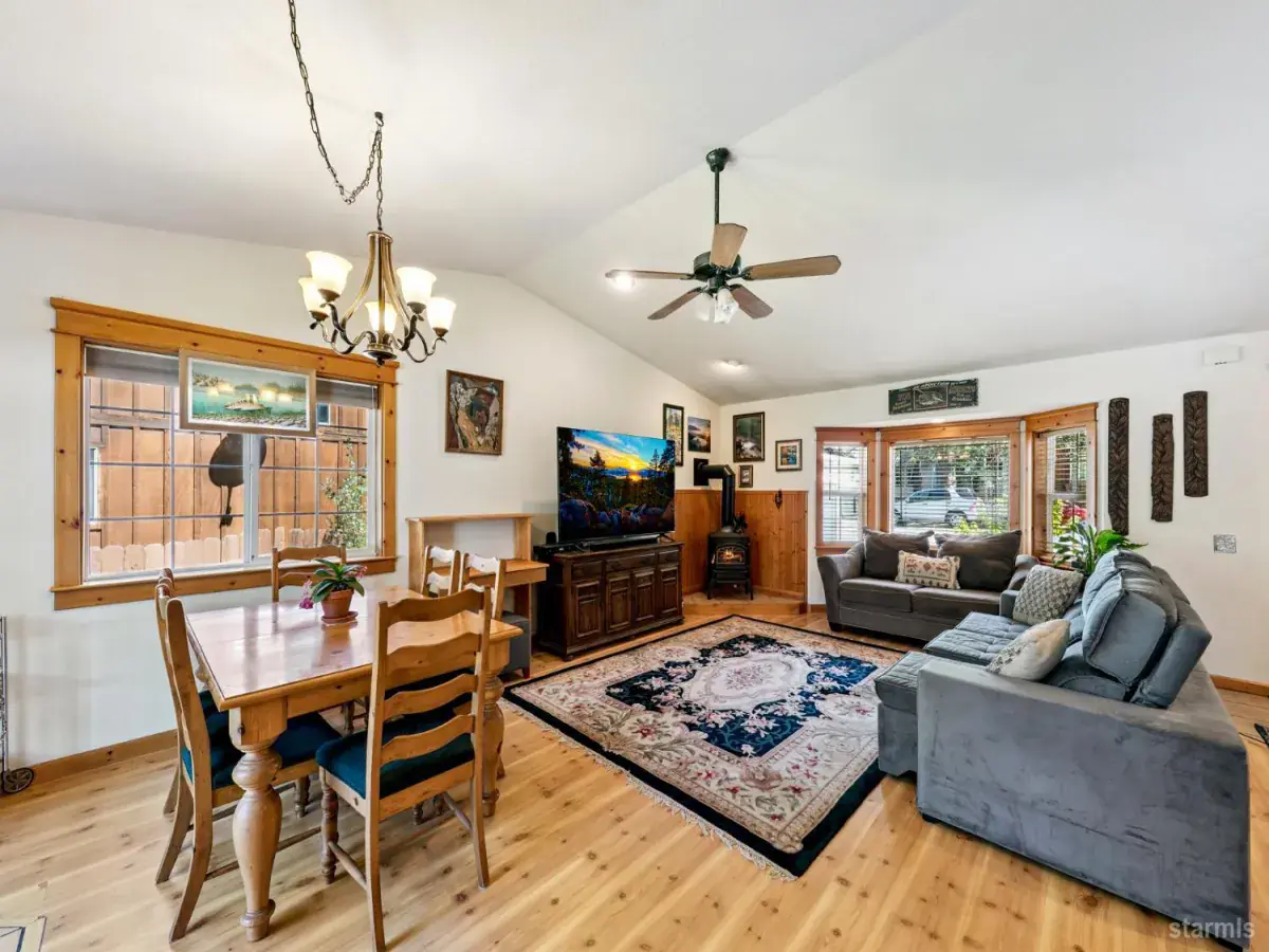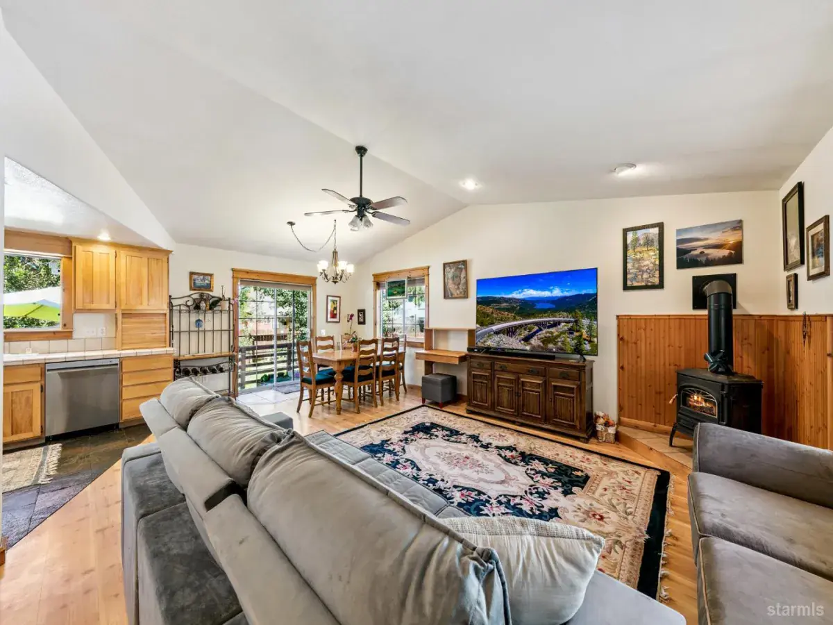 Step into the perfect Tahoe retreat with this charming 3-bedroom, 2-bath single-family home built in 1998. Offering 1,535 square feet of living space on a 6,098 square foot lot, this property blends classic mountain charm with modern comforts. The open-concept living area showcases beautiful wood-wrapped windows and rich wood flooring, with a free-standing gas fireplace creating a cozy atmosphere for snowy evenings. The kitchen features newer stainless-steel appliances, making it as functional as it is inviting.The thoughtful layout includes one bedroom and a full bath on the main level, while upstairs you’ll find two additional bedrooms and a second full bath. The spacious primary room opens to an expansive private deck, perfect for enjoying morning coffee or stargazing in the crisp mountain air. Mature landscaping surrounds the home, adding to its peaceful, natural setting. After a day of adventure, relax in the generously sized hot tub and soak in the Tahoe lifestyle. A two-car garage provides convenience for vehicles and gear, especially during the winter months.This home truly captures the Tahoe vibe with its warm wood accents, inviting spaces, and outdoor amenities. Ideally located, it offers easy access to hiking and biking trails, world-class ski resorts including Heavenly, Sierra-at-Tahoe, and Kirkwood, and just a short drive brings you to the sandy shores of Lake Tahoe or the vibrant dining, shopping, and entertainment of Stateline. Whether you’re seeking a year-round residence or a mountain getaway, this home offers the perfect balance of comfort, charm, and adventure.
