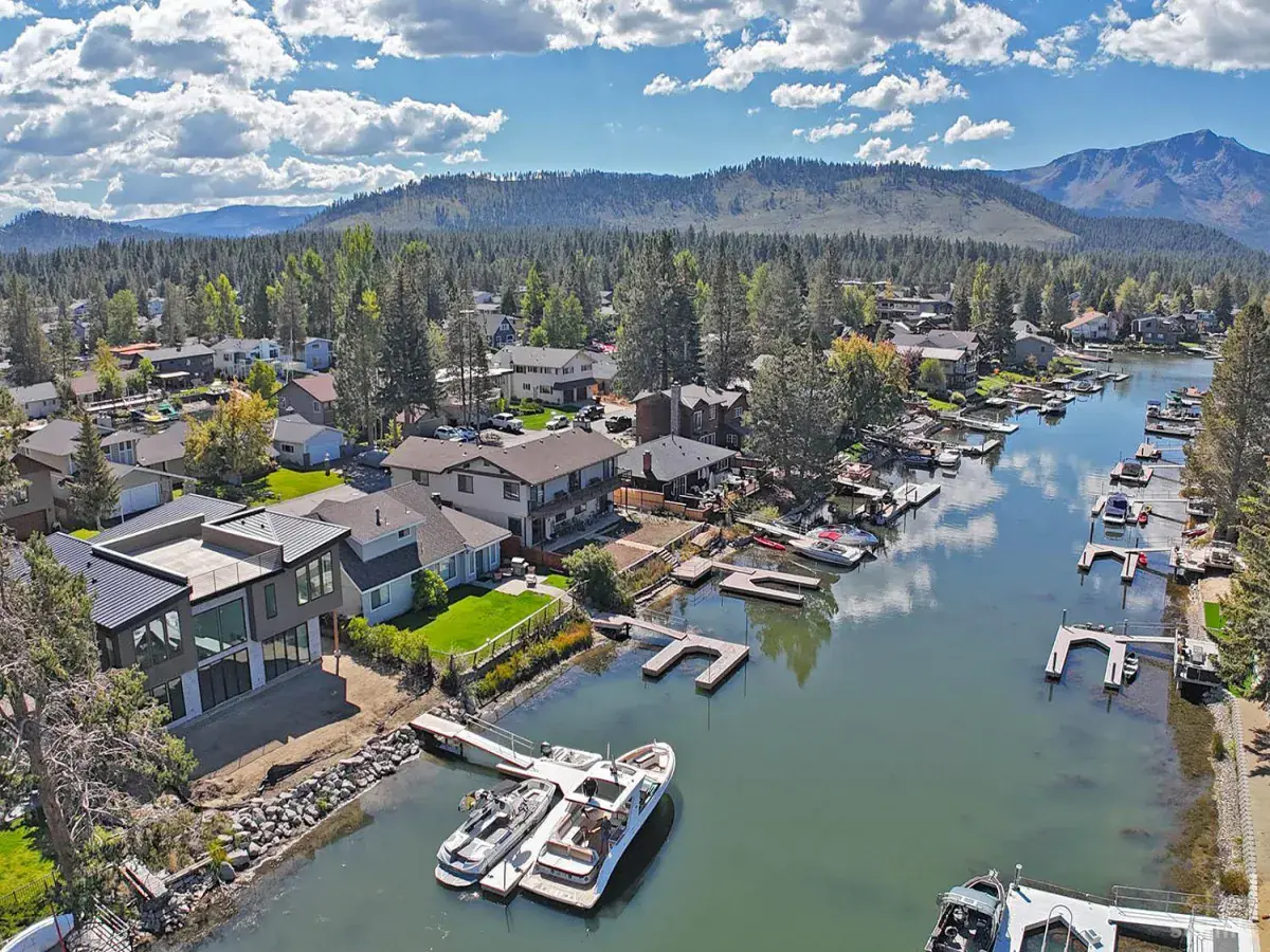 Rare Tahoe Keys New Construction! –2183 Monterey offers a rare chance to own a brand-new, ground-up build in one of the most desirable locations in the Tahoe Keys. With 60 feet of waterfront and fast lake access, this modern home combines luxury craftsmanship, clean design, and seamless indoor-outdoor living. The dramatic entry opens to a stunning great room with 20-foot ceilings, a wall of glass framing panoramic water views, and a 60-inch linear fireplace surrounded by custom wood accents and art lighting. The designer kitchen features rift-sawn white oak cabinetry, quartzite counters, a hidden pantry, and premium Viking Professional appliances including a 48” range, dual dishwashers, dual wine/beverage fridges, and built-in refrigerator. Large sliding glass doors open to a spacious patio and landscaped yard, ideal for lakeside entertaining. The first-floor suite provides convenient single-level living, while a custom mudroom off the garage includes built-in storage and wiring for boot and glove dryersperfect for Tahoe winters. –Upstairs, four bedroom suites offer comfort and privacy for family and guests. The primary suite is a true retreat with a large walk-in closet and spa-like bath featuring a wet room with soaking tub, oversized shower, and floating double vanity. A larger secondary suite doubles as a game or media room, while two matching suites include stylish baths finished in large-format tile with floating benches and custom fixtures. –A full-size metal staircase leads to the expansive 700+ sq. ft. rooftop deck, prewired for a hot tub and surrounded by custom metal railings. Enjoy spectacular 360 views of Mt. Tallac, Monument Peak, Freel Peak, and the surrounding mountainsperfect for sunset gatherings or stargazing.The property will be fully landscaped with a pervious paver patio, lawn, and native plantings. A private 30-foot boat dock accommodates multiple large vessels, with quick access to the open lake. The exterior blends clear and knotty cedar siding, El Dorado stone, and standing seam metal for a timeless Tahoe look. Anderson windows and custom solid wood doors with horizontal glass complete the striking faade. –Inside, materials include white oak flooring, solid wood shaker doors, smooth Level 5 walls, and trimless drywall returns for a clean, modern aesthetic. Advanced mechanicals provide year-round comfort with in-floor hydronic heat, dual tankless water heaters, and a redundant heat pump system with multi-zone A/C. All finishes and fixtures have been carefully curated by a top Sonoma County design firm. –Completion is scheduled for early 2026. Contact us today for the full design binder or to schedule a private tour of this exceptional Tahoe Keys home.