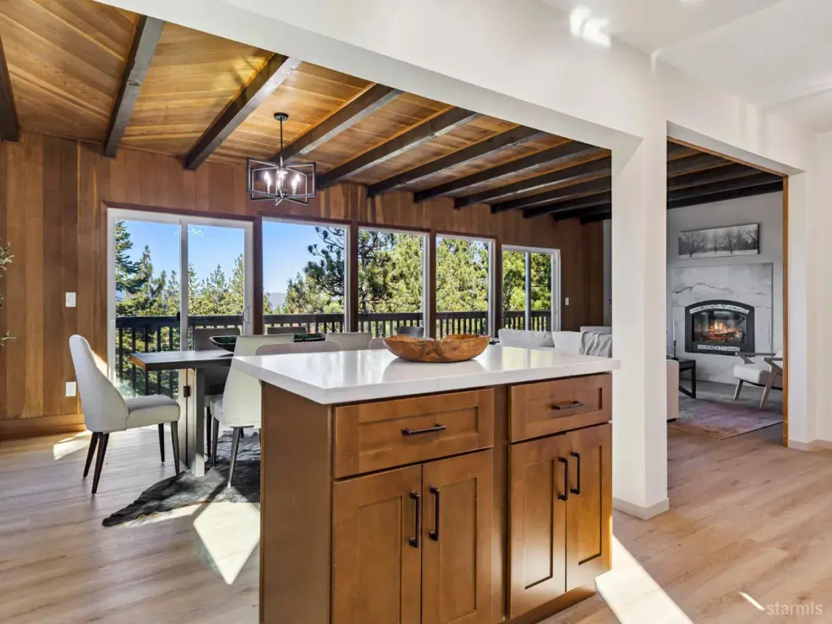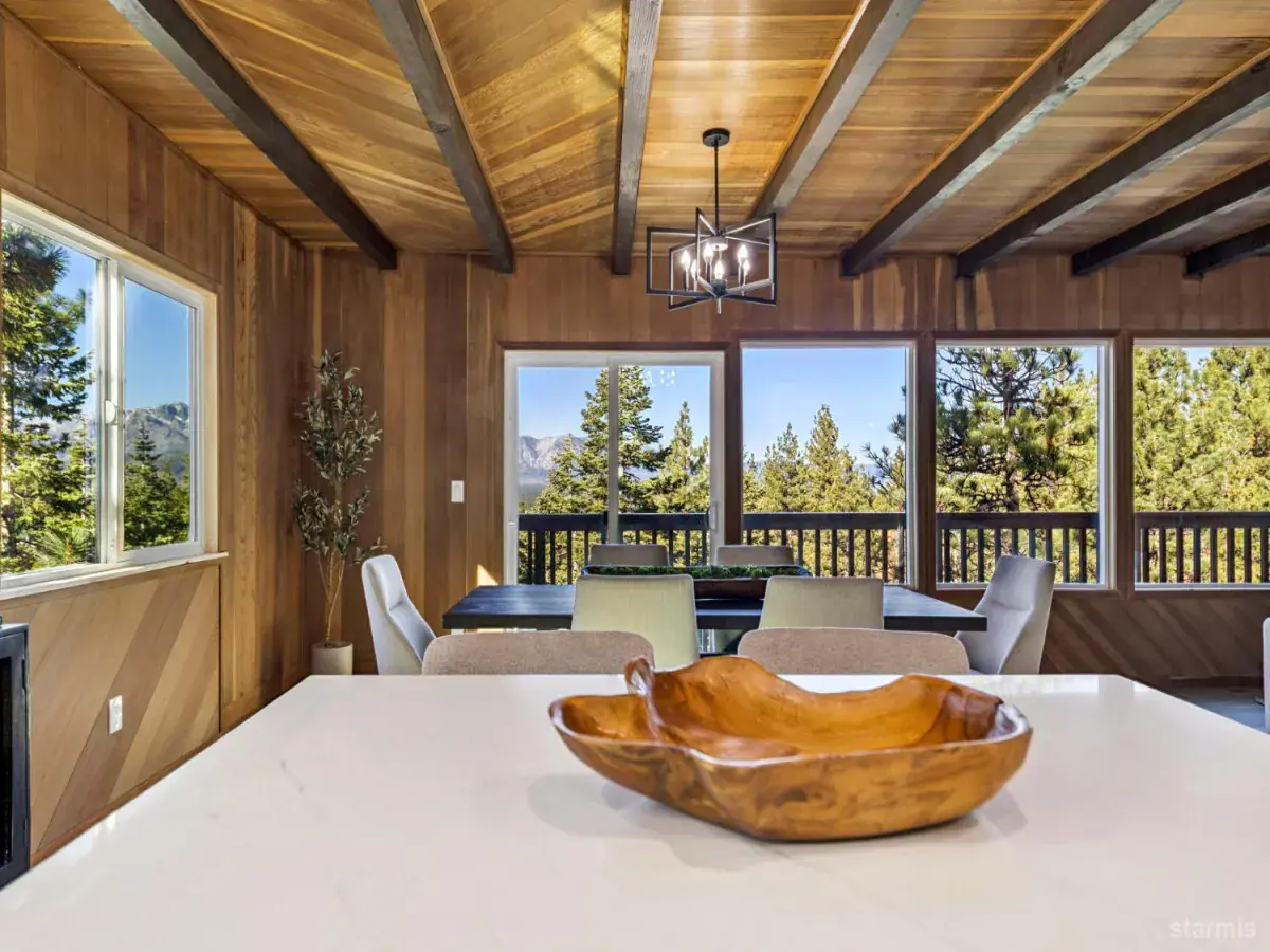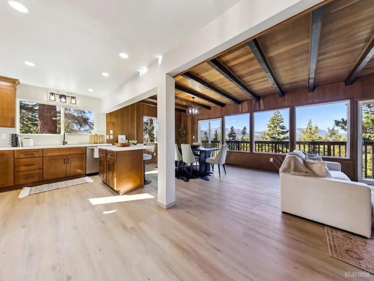 Where Mid-Century Meets Mountain ModernWelcome to your ideal Tahoe mountain oasis, where mid-century design meets modern comfort. This fully remodeled retreat in the highly coveted Montgomery Estates neighborhood blends sleek contemporary finishes with the warmth of original cedar accents.Step inside to discover a thoughtfully reimagined three-level home offering panoramic Sierra Nevada mountain views, including Mount Tallac, Pyramid Peak, and filtered glimpses of Lake Tahoe. Ideally situated east to west, the home captures morning sun in the front and glowing sunsets from the expansive back decks. Set on a generous 0.37-acre (16,117 sq ft) lot, the property offers privacy and serene mountain views from multiple levels.Enjoy access to miles of hiking and biking trails just steps from the back door and world-class skiing at Heavenly’s California Lodge only 3.6 miles away.Entering on the middle level, you’ll find easy access to the primary suite with a private deck, two guest bedrooms, a guest bath, and a dedicated laundry room. The top floor features an open-concept kitchen, dining, and living space framed by a wall of windows that showcase breathtaking views and fill the home with natural light. The kitchen boasts all-new Frigidaire stainless steel appliances, quartz countertops with an undermount sink, wood cabinetry, and an island. A powder room and additional office/bedroom complete this level.The lower level offers endless potential with three separate exterior entrances and a bonus space ready to become a family room, game area, or guest suite. The spacious lower deck provides a splendid spot for outdoor entertaining or a future hot tub retreat.An oversized two-car garage offers additional space for Tahoe toys, tools, or even a third parking spot, along with a workshop area. There is also extra storage beneath the home, including a partially finished crawl space.Full remodel upgrades include:All new windows, sliders, and doorsNew roof, garage door, and openerNew furnace (3 zones), and water heaterNew luxury vinyl plank flooring throughoutFresh paint inside and outAll new decksAnd more!Every detail of this home has been crafted to deliver the best of Tahoe living: a balance of luxury, nature, and an unbeatable location in one of South Lake Tahoe’s most desirable neighborhoods.