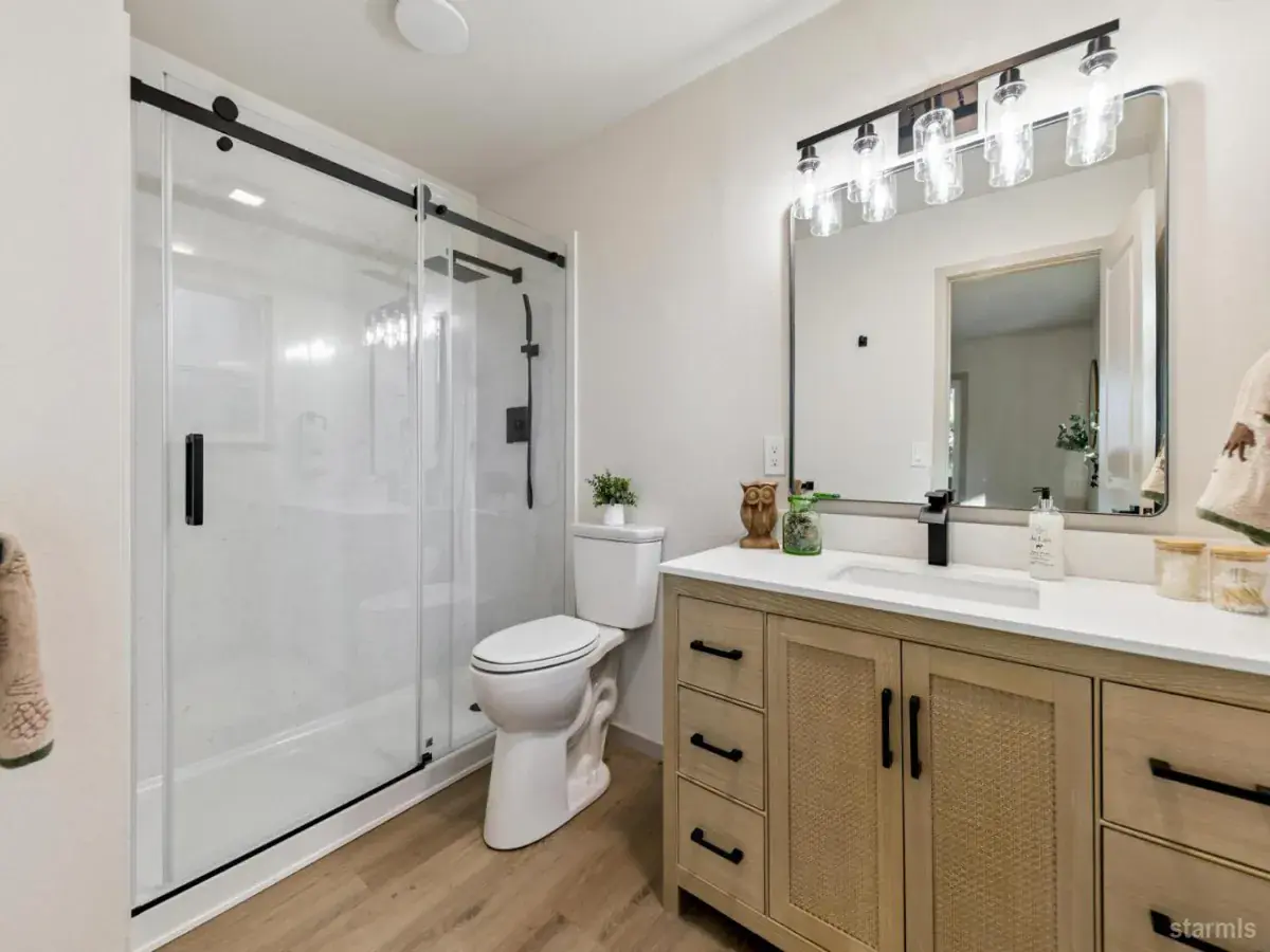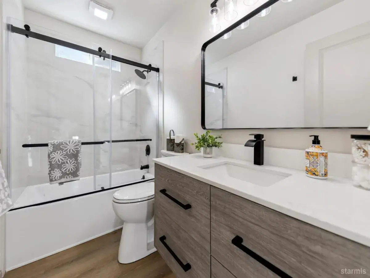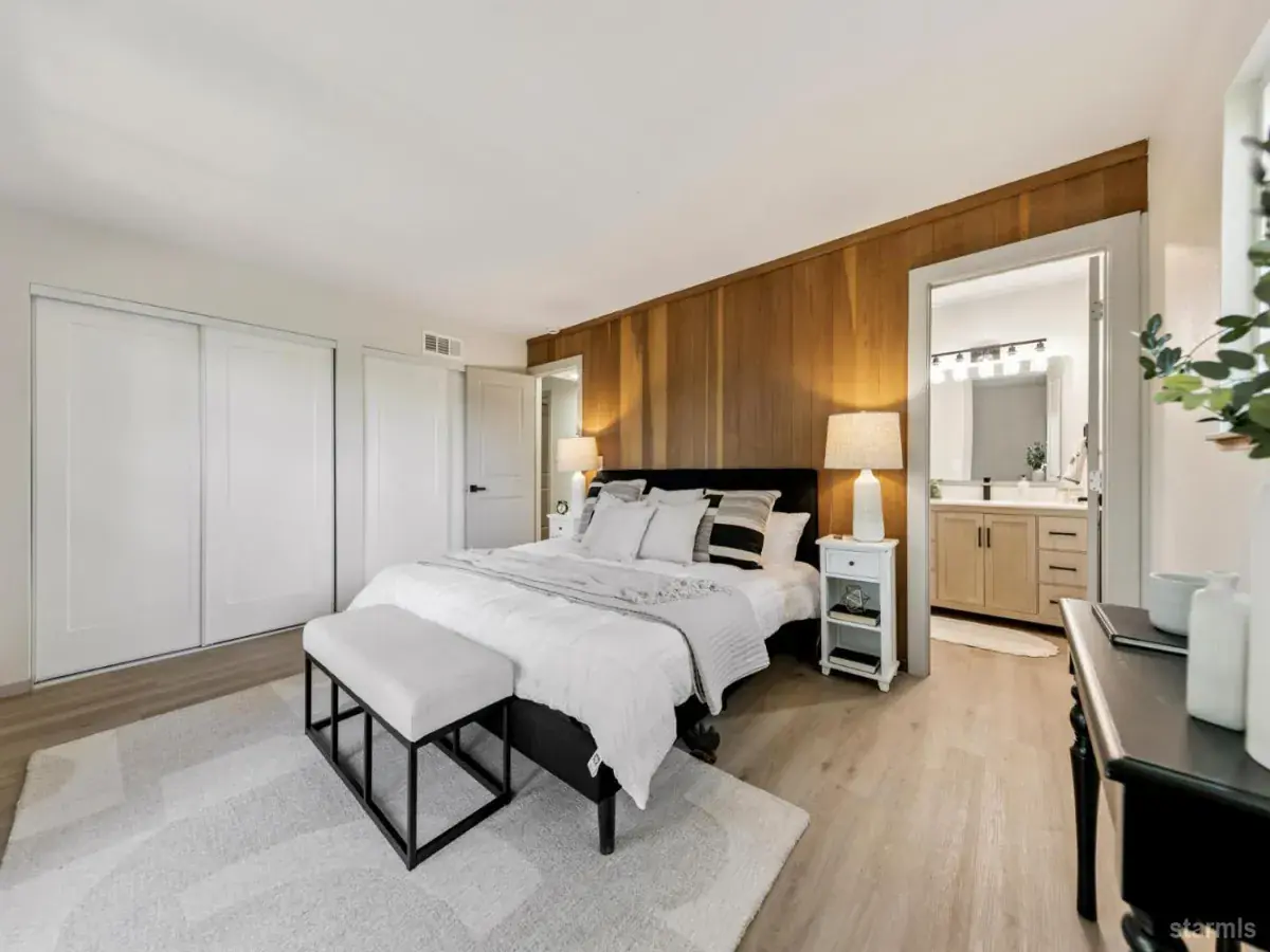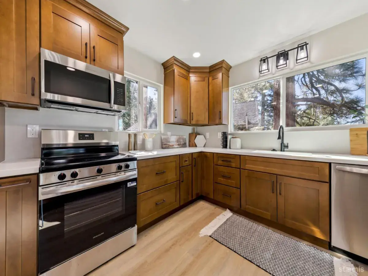 Where Mid-Century Meets Mountain ModernWelcome to your ideal Tahoe mountain oasis, where mid-century design meets modern comfort. This fully remodeled retreat in the highly coveted Montgomery Estates neighborhood blends sleek contemporary finishes with the warmth of original cedar accents.Step inside to discover a thoughtfully reimagined three-level home offering panoramic Sierra Nevada mountain views, including Mount Tallac, Pyramid Peak, and filtered glimpses of Lake Tahoe. Ideally situated east to west, the home captures morning sun in the front and glowing sunsets from the expansive back decks. Set on a generous 0.37-acre (16,117 sq ft) lot, the property offers privacy and serene mountain views from multiple levels.Enjoy access to miles of hiking and biking trails just steps from the back door and world-class skiing at Heavenly’s California Lodge only 3.6 miles away.Entering on the middle level, you’ll find easy access to the primary suite with a private deck, two guest bedrooms, a guest bath, and a dedicated laundry room. The top floor features an open-concept kitchen, dining, and living space framed by a wall of windows that showcase breathtaking views and fill the home with natural light. The kitchen boasts all-new Frigidaire stainless steel appliances, quartz countertops with an undermount sink, wood cabinetry, and an island. A powder room and additional office/bedroom complete this level.The lower level offers endless potential with three separate exterior entrances and a bonus space ready to become a family room, game area, or guest suite. The spacious lower deck provides a splendid spot for outdoor entertaining or a future hot tub retreat.An oversized two-car garage offers additional space for Tahoe toys, tools, or even a third parking spot, along with a workshop area. There is also extra storage beneath the home, including a partially finished crawl space.Full remodel upgrades include:All new windows, sliders, and doorsNew roof, garage door, and openerNew furnace (3 zones), and water heaterNew luxury vinyl plank flooring throughoutFresh paint inside and outAll new decksAnd more!Every detail of this home has been crafted to deliver the best of Tahoe living: a balance of luxury, nature, and an unbeatable location in one of South Lake Tahoe’s most desirable neighborhoods.