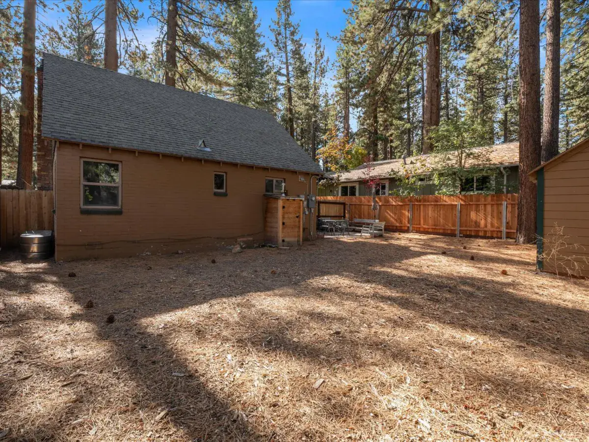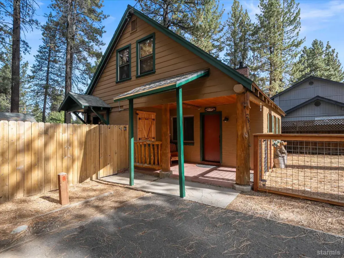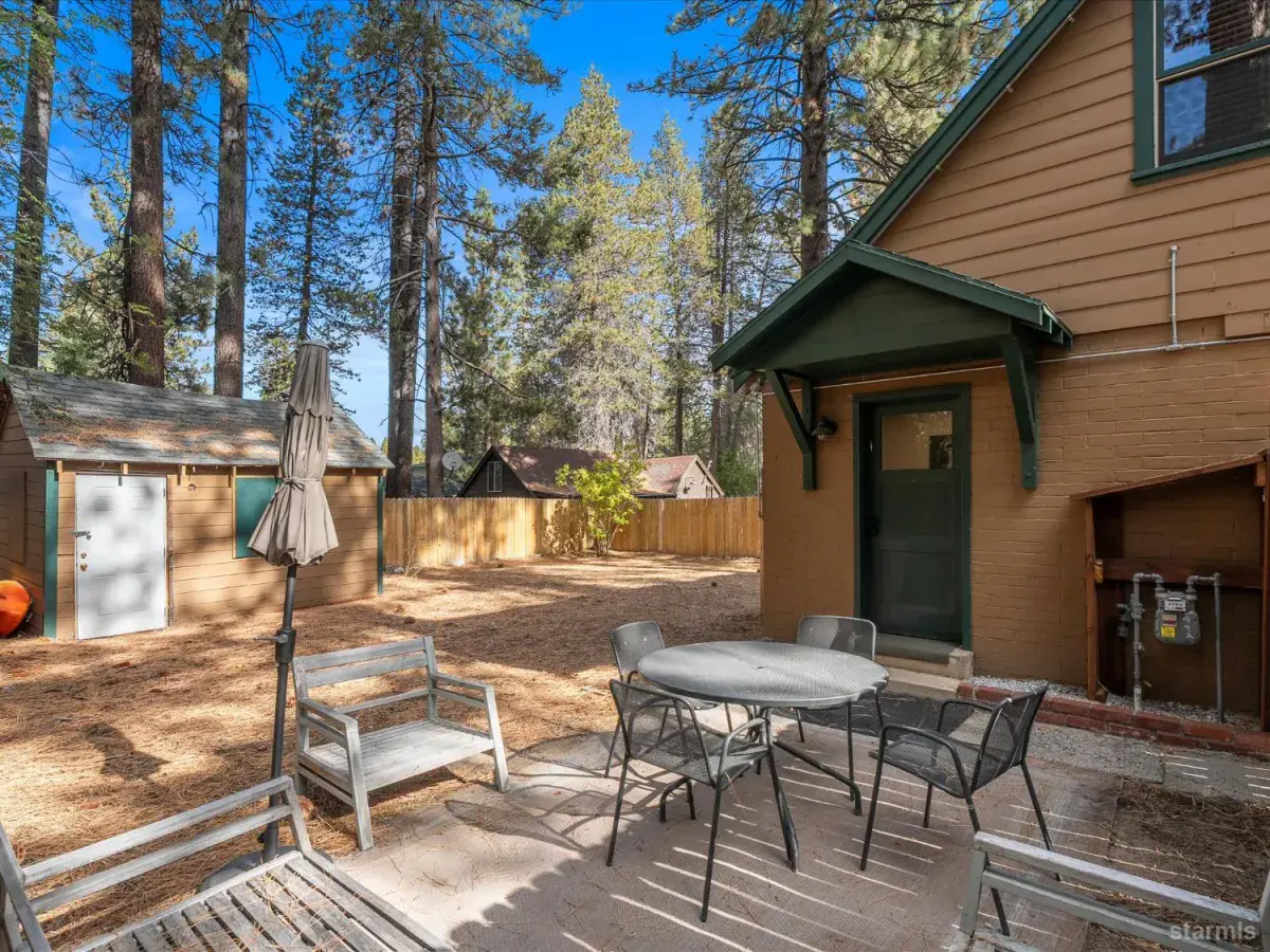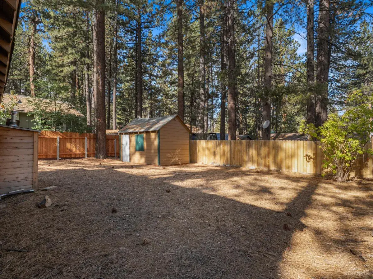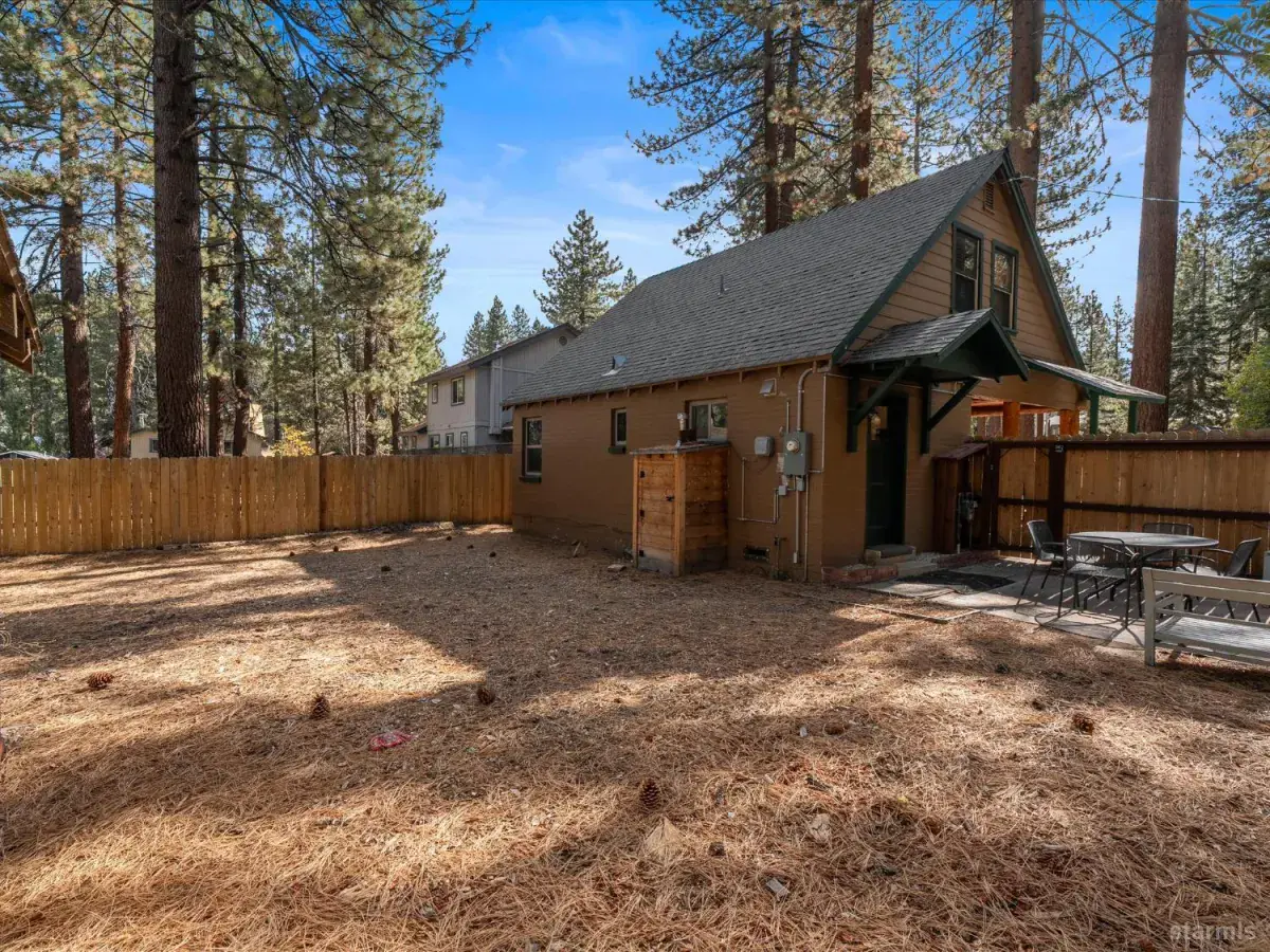 Looking for an old world charm, log cabin in an excellent, move-in ready condition? Look no more. This knotty pine Lake Tahoe cabin is surrounded by tall pine trees and is only 6 blocks away from Lake Tahoe Blvd, restaurants and shopping. You may walk your dogs or ride your E-Bike on trails along Trout Creek to Lake Tahoe Community College. On the first floor of this fully furnished cabin you will find a good size family room with gas fire place, a bedroom, a full bath and a nicely remodeled kitchen (see the photos). The kitchen has door to the fenced backyard just in case woofy needed to be let out . Upstairs you will find two more bedrooms and another half-bath plus a small office/ study / loft area. Upgrades include newer vinyl plank flooring, double pane vinyl windows, a newer kitchen including appliances, tasteful bathroom fixtures, driveway, water heater and electric panel.