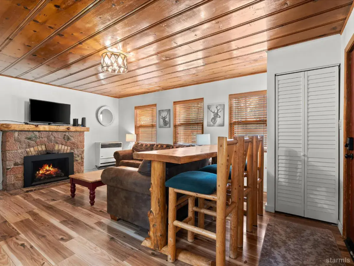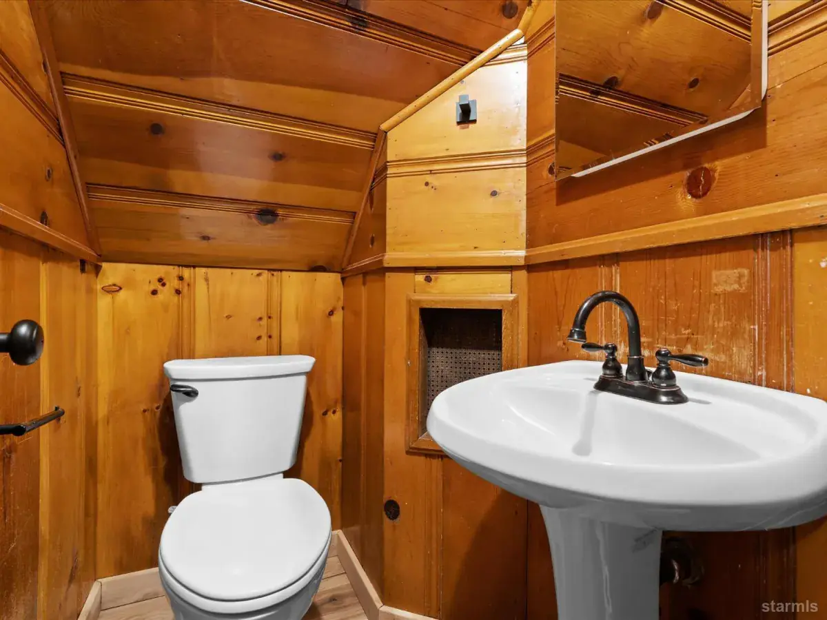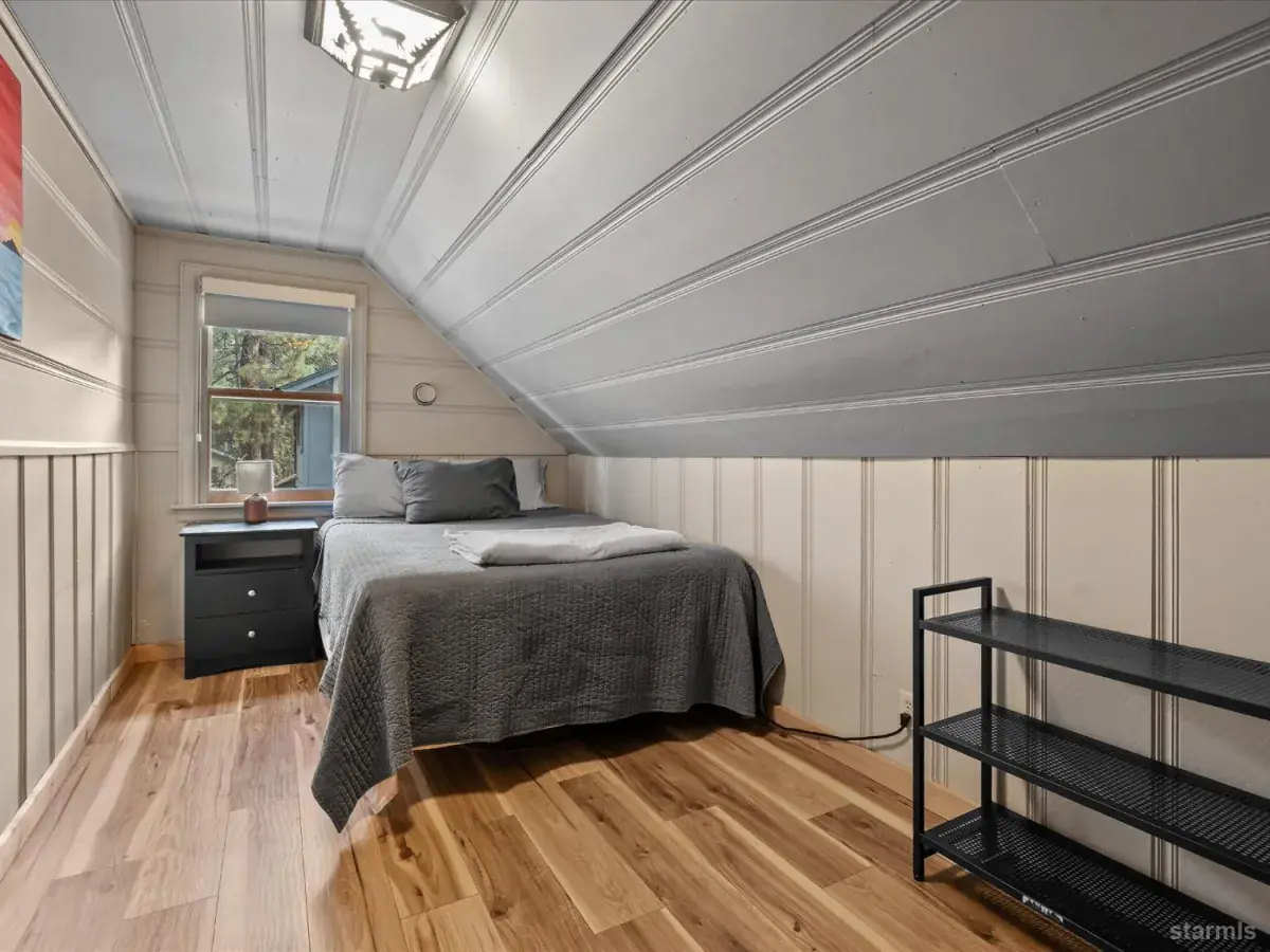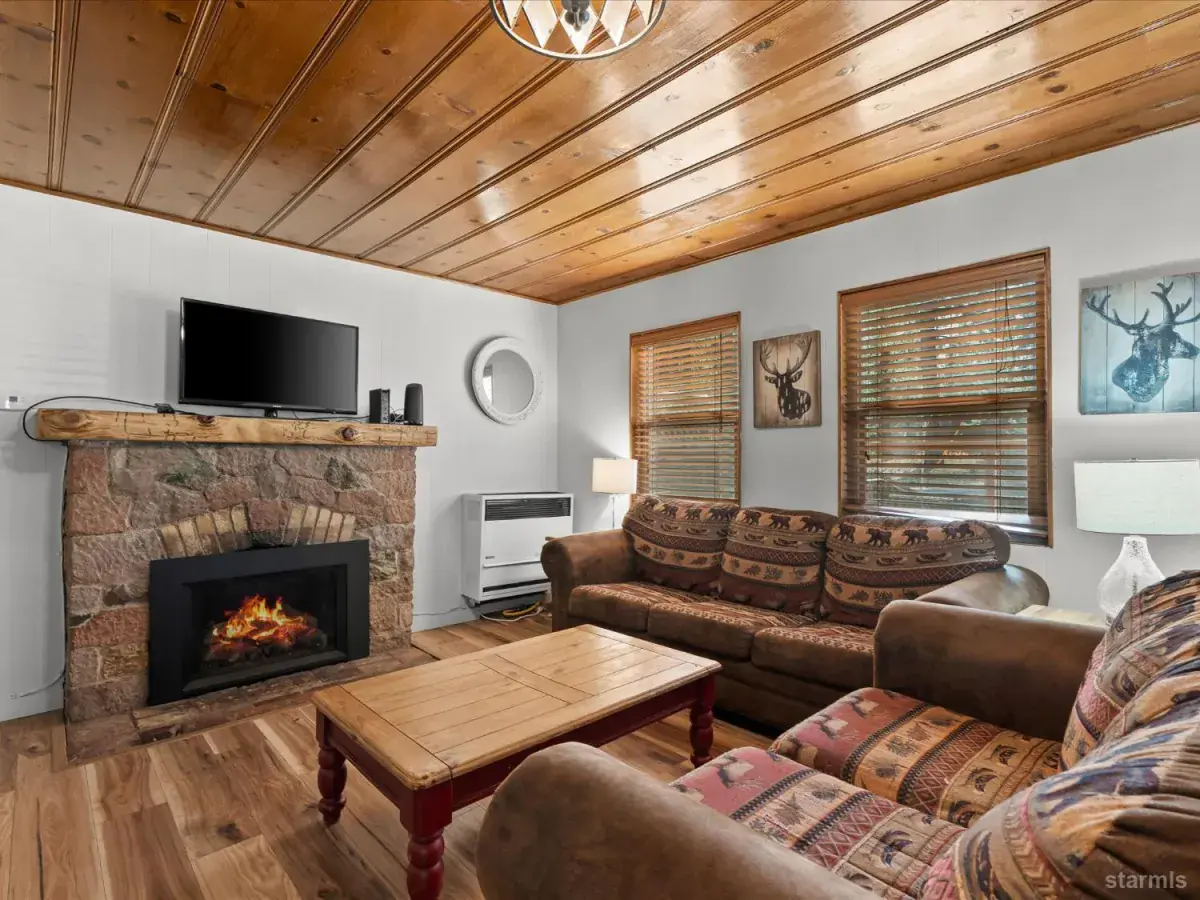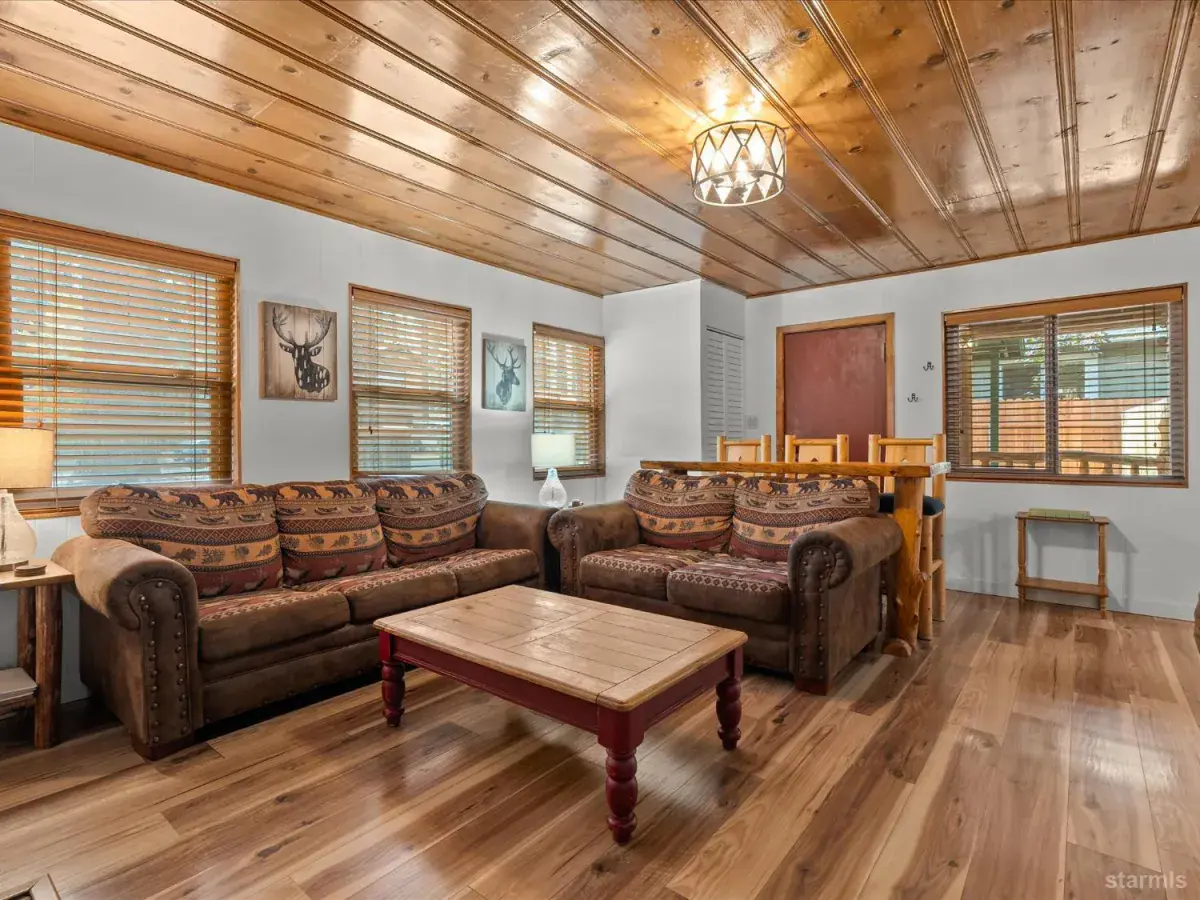 Looking for an old world charm, log cabin in an excellent, move-in ready condition? Look no more. This knotty pine Lake Tahoe cabin is surrounded by tall pine trees and is only 6 blocks away from Lake Tahoe Blvd, restaurants and shopping. You may walk your dogs or ride your E-Bike on trails along Trout Creek to Lake Tahoe Community College. On the first floor of this fully furnished cabin you will find a good size family room with gas fire place, a bedroom, a full bath and a nicely remodeled kitchen (see the photos). The kitchen has door to the fenced backyard just in case woofy needed to be let out . Upstairs you will find two more bedrooms and another half-bath plus a small office/ study / loft area. Upgrades include newer vinyl plank flooring, double pane vinyl windows, a newer kitchen including appliances, tasteful bathroom fixtures, driveway, water heater and electric panel.
