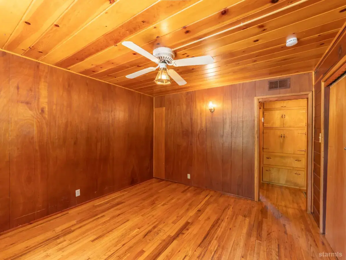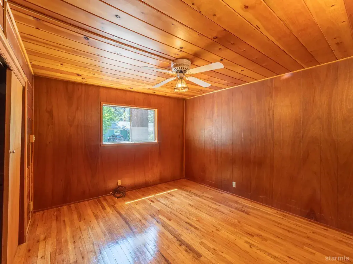 Major Price Improvement! Experience the South Lake Tahoe lifestyle in this refreshed knotty pine cabin with open-beam, vaulted ceilings, now offered under $450,000. Perfect as a mountain retreat or full-time home, this 930 sq. ft. cabin blends Tahoe charm with modern updates, featuring newly refinished wood floors, soaring ceilings, two spacious bedrooms, and an upstairs sleeping loft for guests or a cozy nook.Recent upgrades include fresh paint inside and out, a brand-new oven and range, a fully fenced backyard, and a new 18,000 BTU heat pump with heating and A/C (installed 9/26/25). The large laundry room doubles as a pantry and storage space, with flexibility for a gas dryer hookup (electric dryer plug is disconnected). A paved two-car parking pad adds extra convenience.Located just blocks from Hwy. 50, shops, dining, and year-round outdoor recreation, the home has over $30,000 in recent improvements and is move-in ready. Pest and home inspections with clearance are on file.With the City’s revised Vacation Home Rental (VHR) ordinance now accepting new applications, this property also offers income potential when not in use.Whether you’re seeking a primary home, weekend getaway, or investment, this centrally located Tahoe cabin is ready to welcome you.Note: Furnished living room photo has been virtually staged. The home is vacant.