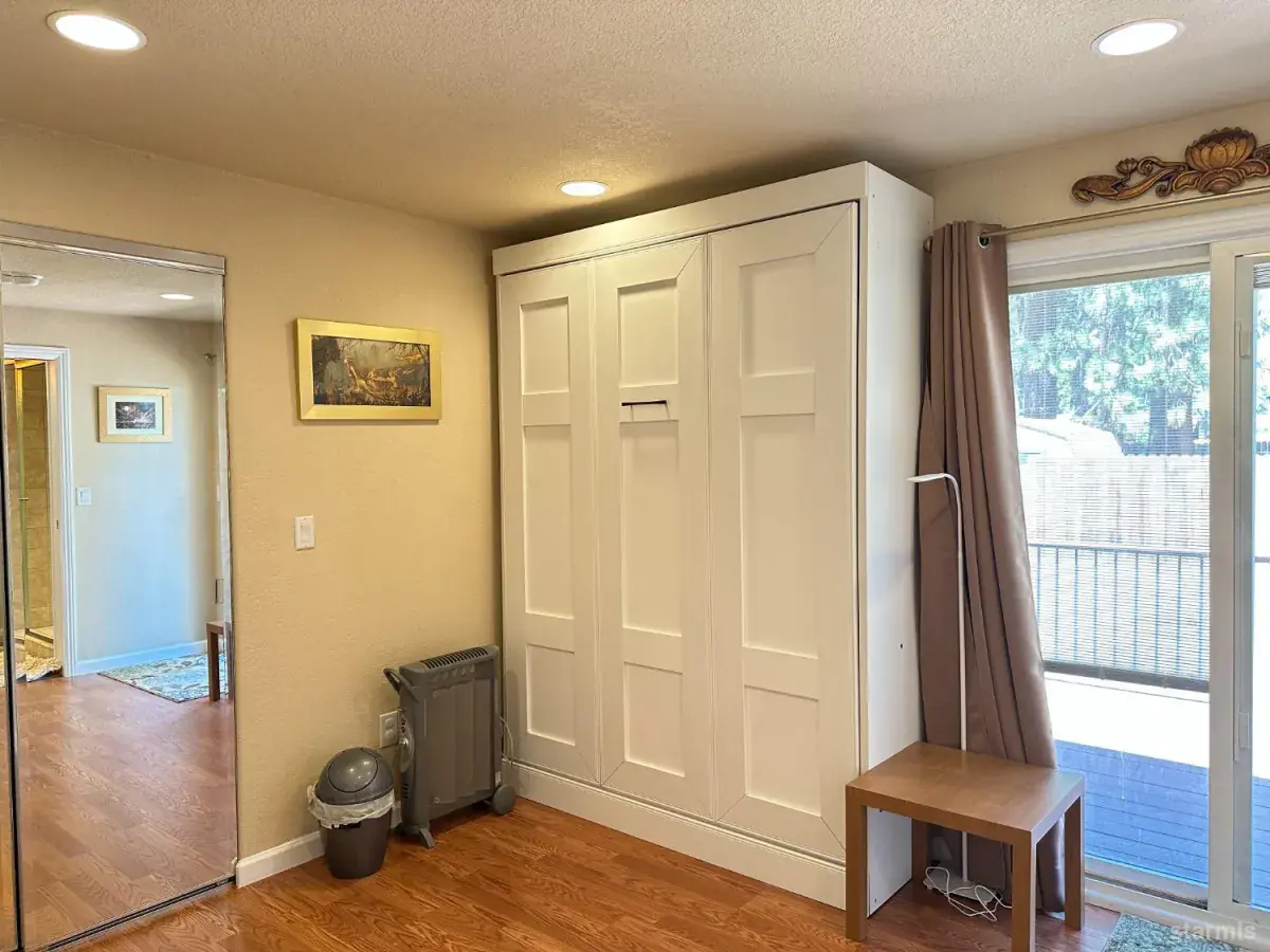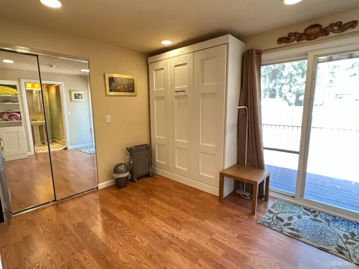 Cozy, well maintained cottage in the woods awaits! This darling one bedroom home is centrally located and sports a ton of upgrades. ADA compliant interior with extra wide doors makes for easy access. A single bedroom with a Murphy bed allows for a work from home scenario during the day with sleeping quarters at night. There is a full kitchen with stainless appliances and a large breakfast bar. The laundry room holds a washer/dryer and utility sink and additional closet with back yard access. Need storage? A shed in the back and pull down attic access should do the trick! An ELECTRIC CAR CHARGER on the exterior and above code insulation throughout are some of the details that stand out. Sells partially furnished minus some personal treasures. Tons of character and charm, near all of your favorite Tahoe spots!