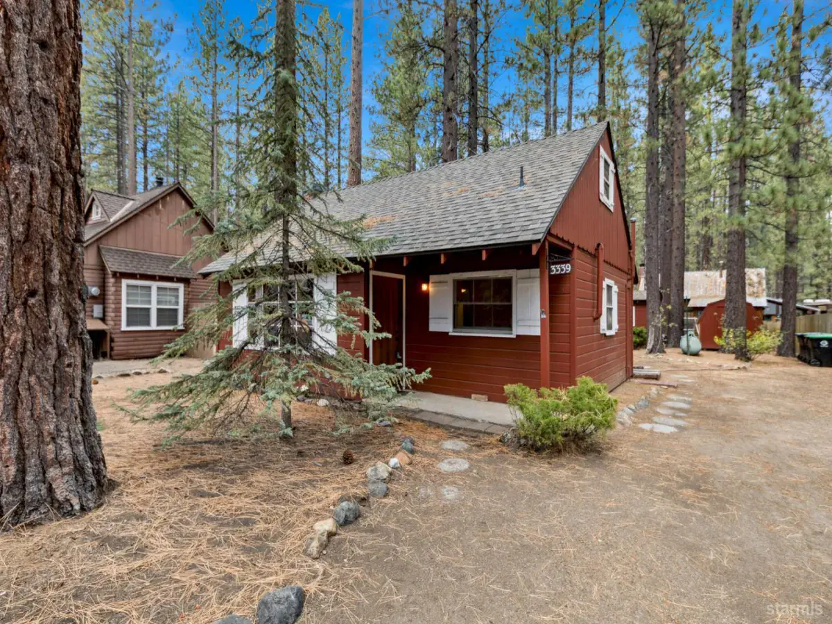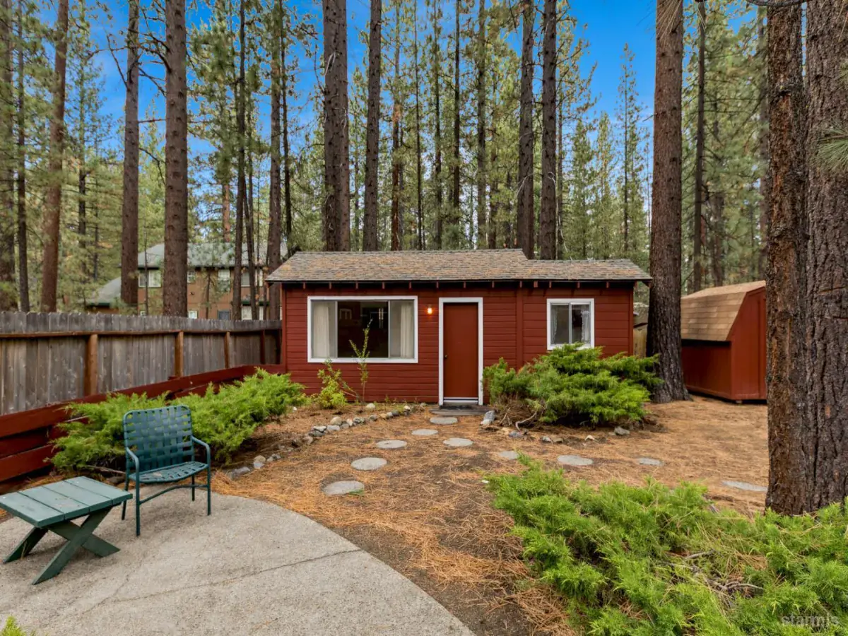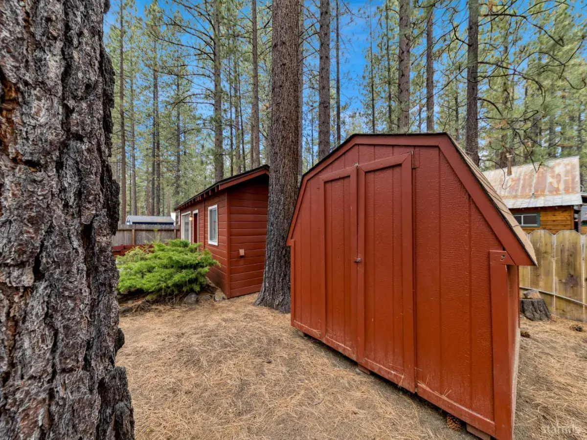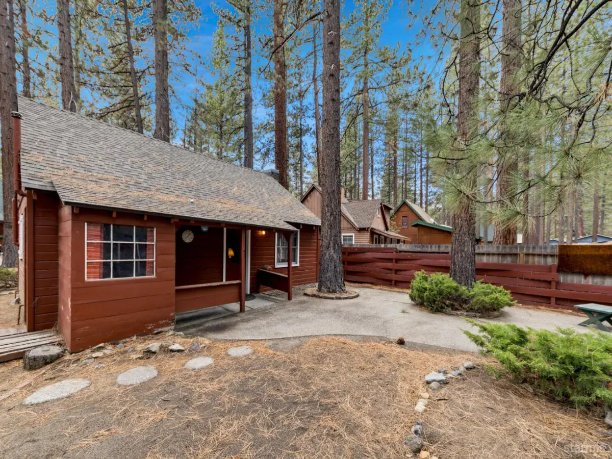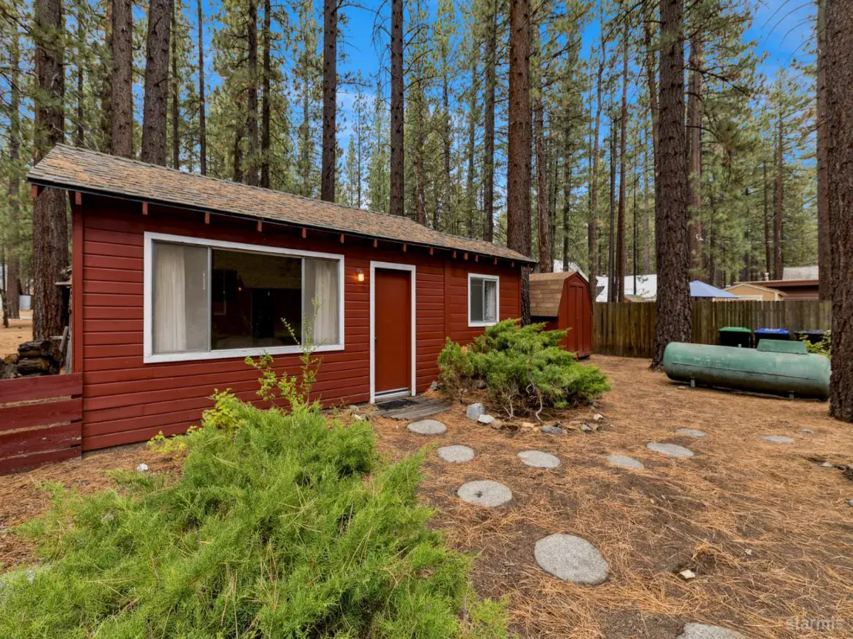 Introducing this charming opportunity in the desirable Bijou Pines area of South Lake Tahoe. This property presents two cozy cabins on one lot, conveniently located near the lake and Heavenly Ski Resort. The main cabin offers a loft style bedroom and a bunk nook for additional sleeping space. Enjoy the open living area with vaulted ceilings, a wood-burning fireplace, and knotty pine paneling. The kitchen features pine cabinets, a propane stove, laminate flooring, and a breakfast bar with butcher block counters. A full bathroom with a stall shower complements the living space.Step outside to a backyard that features a concrete patio and a storage shed. The second studio cabin at the rear provides a full bathroom, laundry area, and a gas wall heater. Both cabins boast comp roofs for added durability. This property is a unique opportunity to own a piece of Tahoe living with the flexibility of two individual living spaces. Don’t miss out on this gem in a prime location near the lake, amenities, and more!