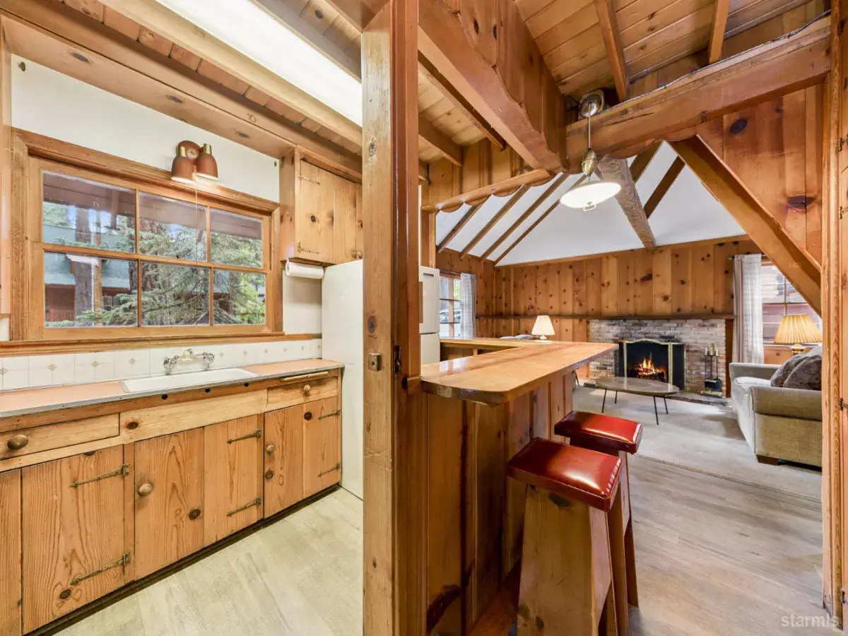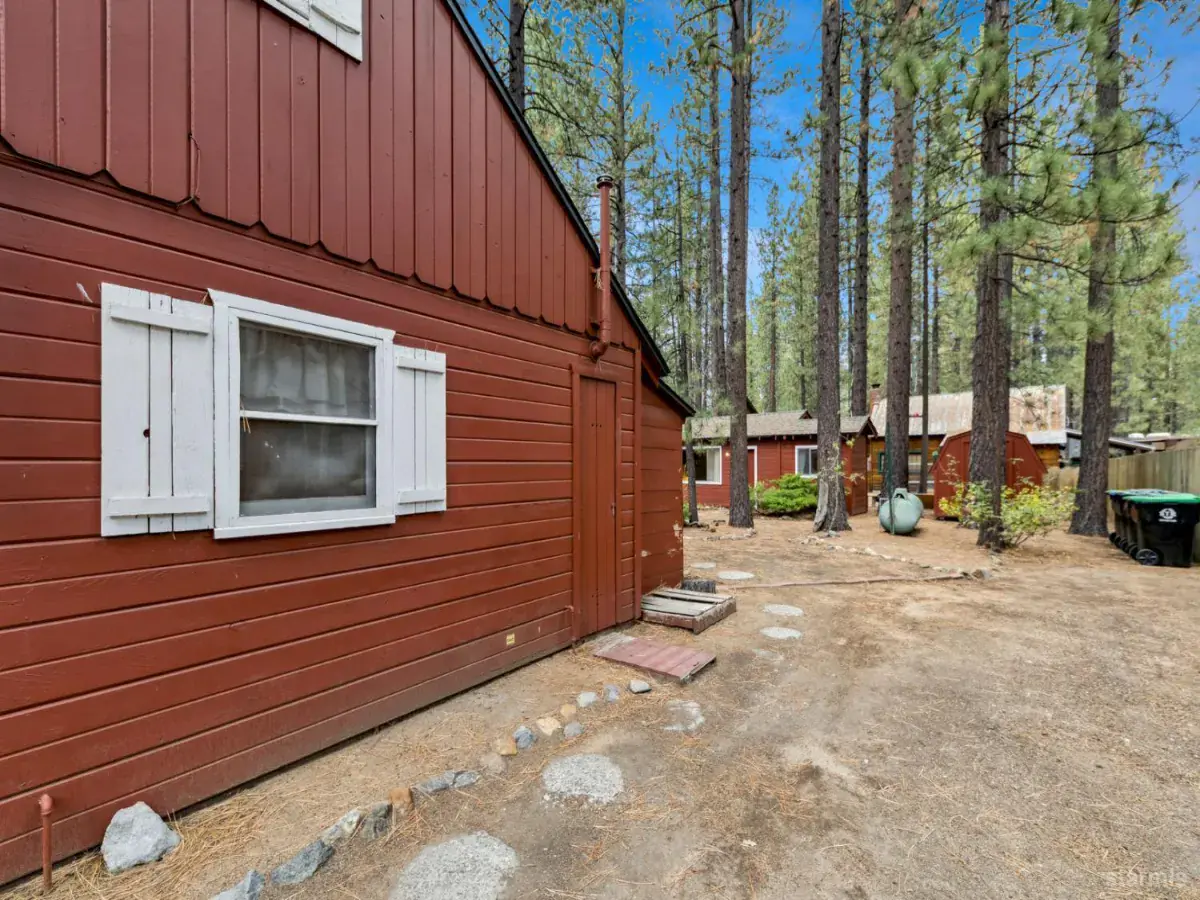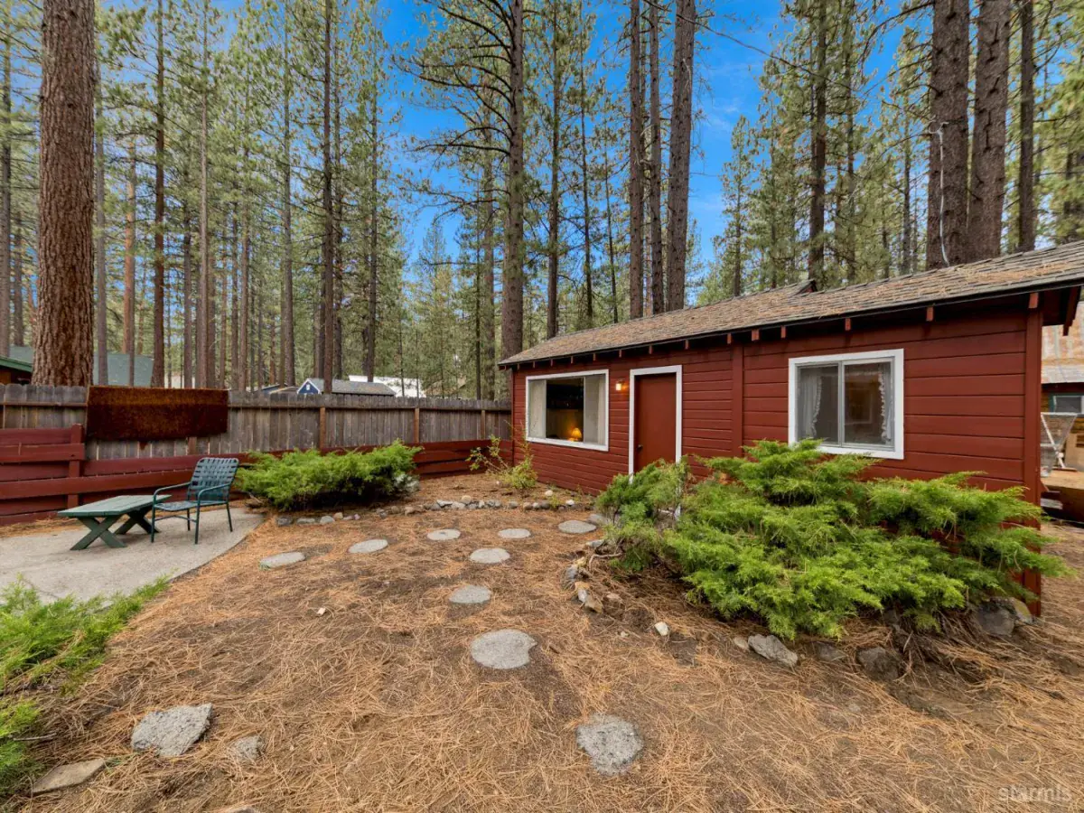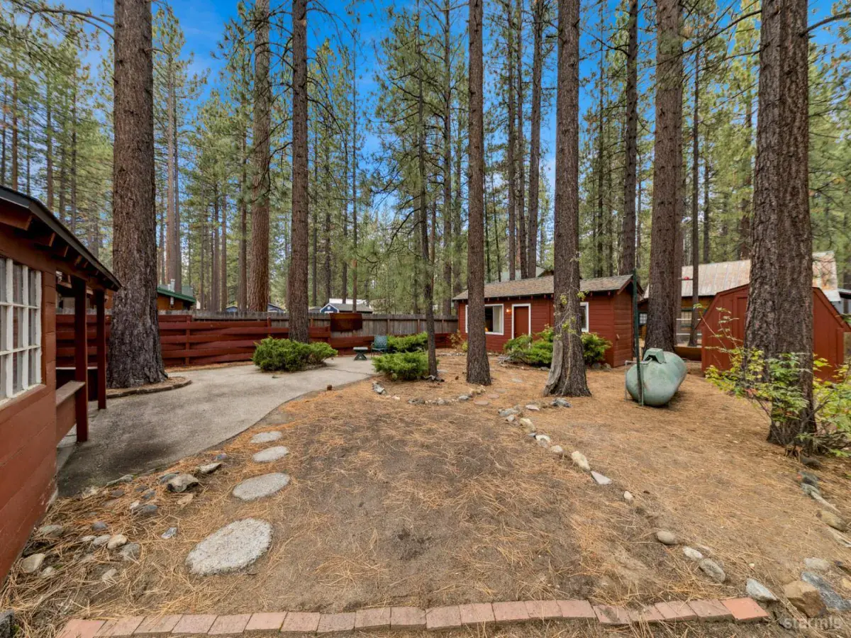 Introducing this charming opportunity in the desirable Bijou Pines area of South Lake Tahoe. This property presents two cozy cabins on one lot, conveniently located near the lake and Heavenly Ski Resort. The main cabin offers a loft style bedroom and a bunk nook for additional sleeping space. Enjoy the open living area with vaulted ceilings, a wood-burning fireplace, and knotty pine paneling. The kitchen features pine cabinets, a propane stove, laminate flooring, and a breakfast bar with butcher block counters. A full bathroom with a stall shower complements the living space.Step outside to a backyard that features a concrete patio and a storage shed. The second studio cabin at the rear provides a full bathroom, laundry area, and a gas wall heater. Both cabins boast comp roofs for added durability. This property is a unique opportunity to own a piece of Tahoe living with the flexibility of two individual living spaces. Don’t miss out on this gem in a prime location near the lake, amenities, and more!