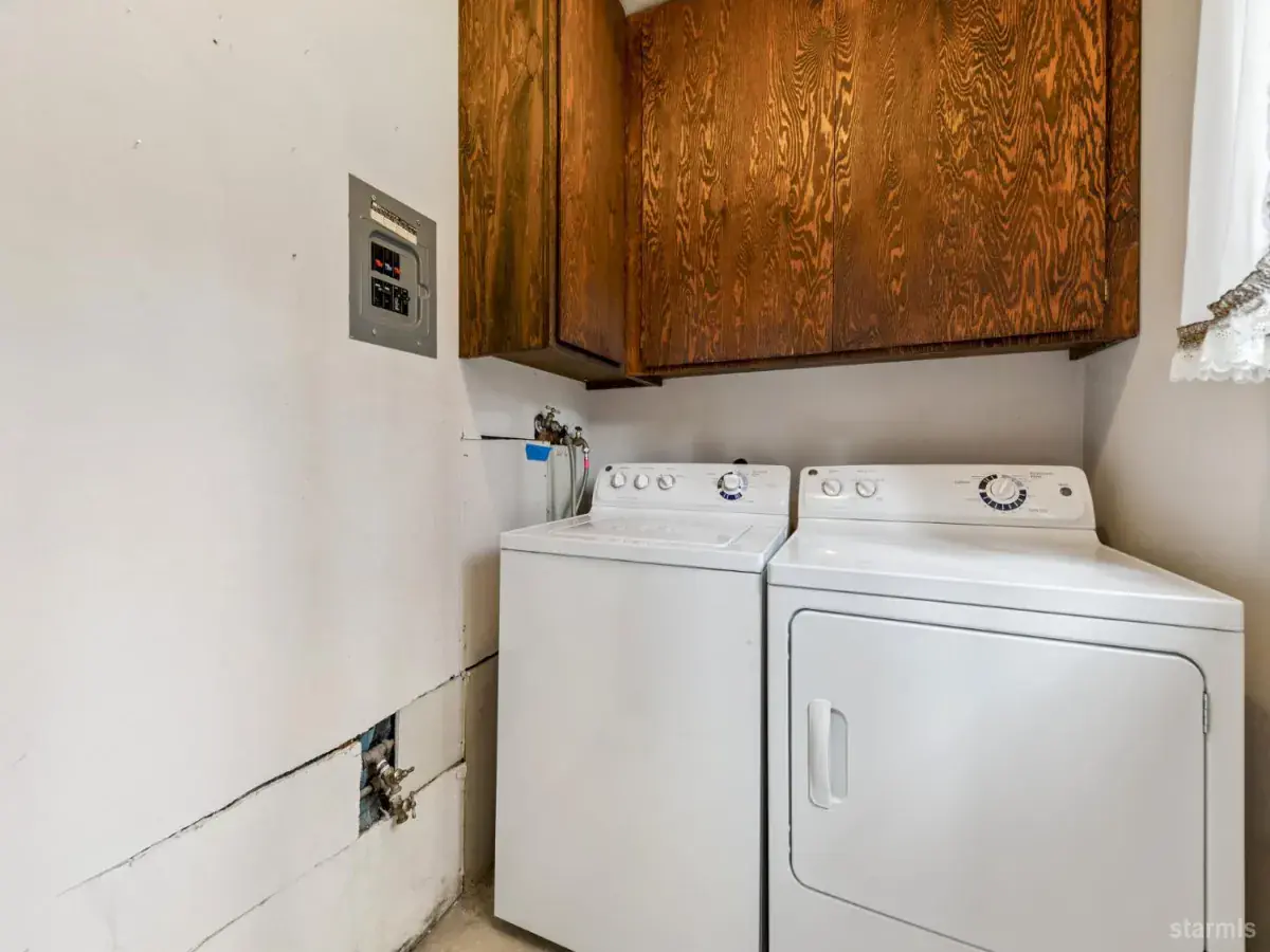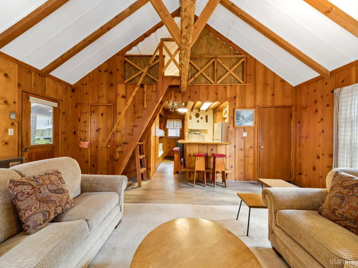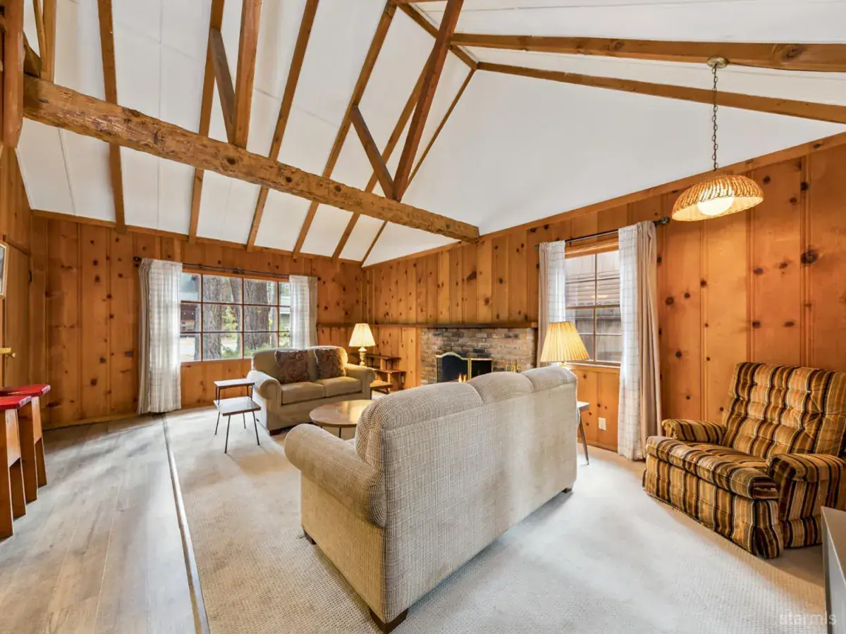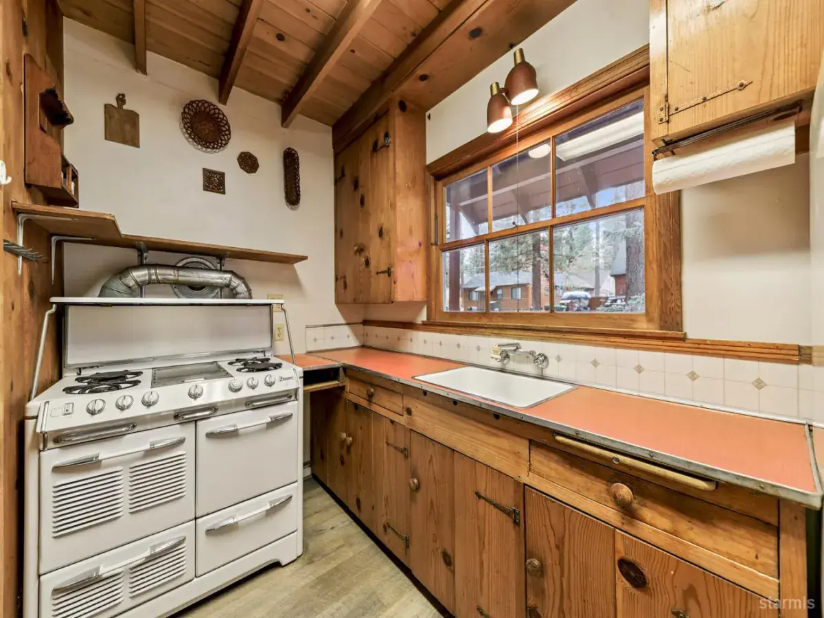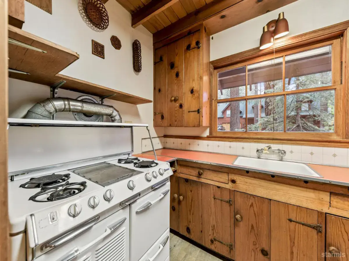 Introducing this charming opportunity in the desirable Bijou Pines area of South Lake Tahoe. This property presents two cozy cabins on one lot, conveniently located near the lake and Heavenly Ski Resort. The main cabin offers a loft style bedroom and a bunk nook for additional sleeping space. Enjoy the open living area with vaulted ceilings, a wood-burning fireplace, and knotty pine paneling. The kitchen features pine cabinets, a propane stove, laminate flooring, and a breakfast bar with butcher block counters. A full bathroom with a stall shower complements the living space.Step outside to a backyard that features a concrete patio and a storage shed. The second studio cabin at the rear provides a full bathroom, laundry area, and a gas wall heater. Both cabins boast comp roofs for added durability. This property is a unique opportunity to own a piece of Tahoe living with the flexibility of two individual living spaces. Don’t miss out on this gem in a prime location near the lake, amenities, and more!
