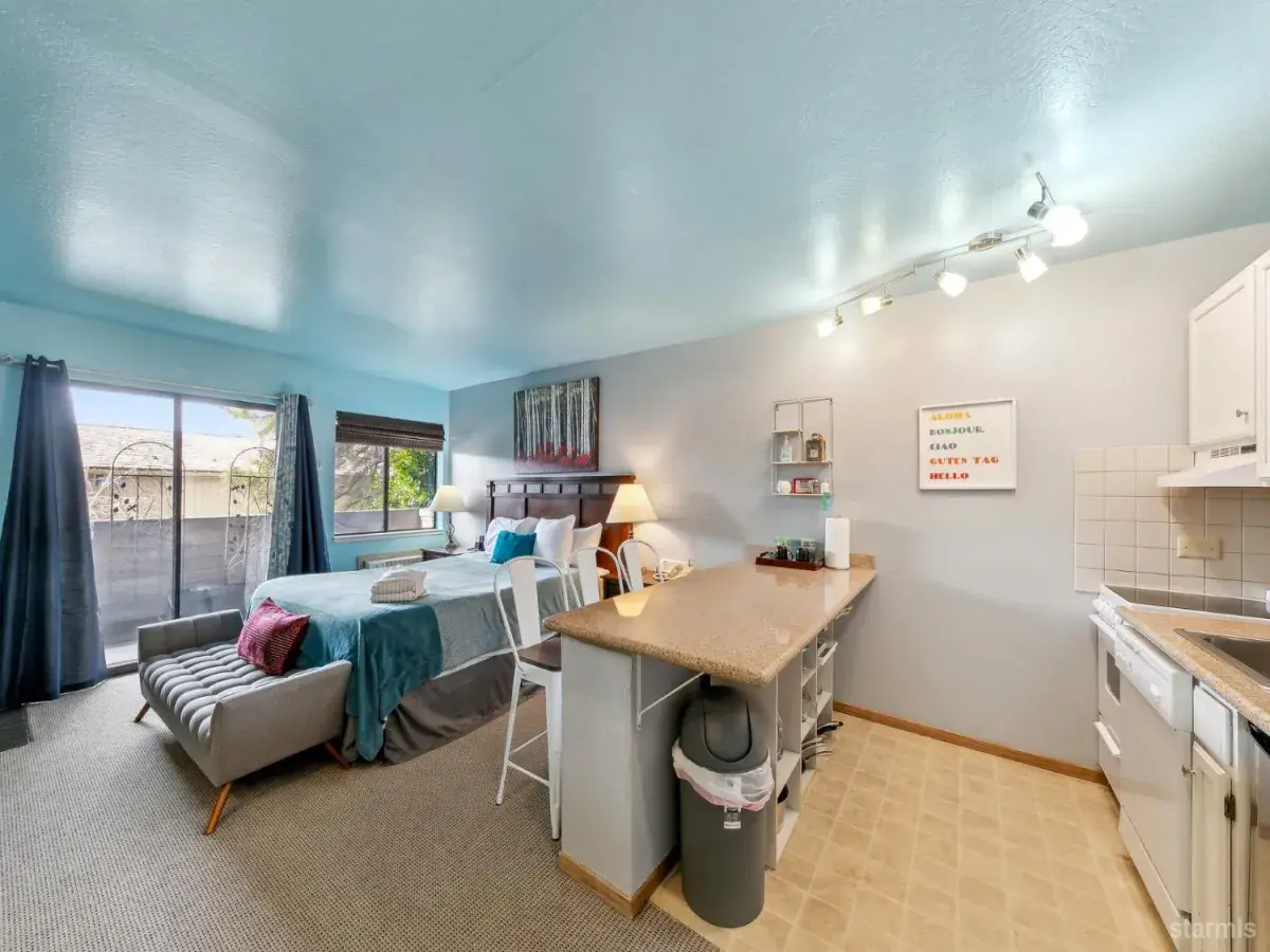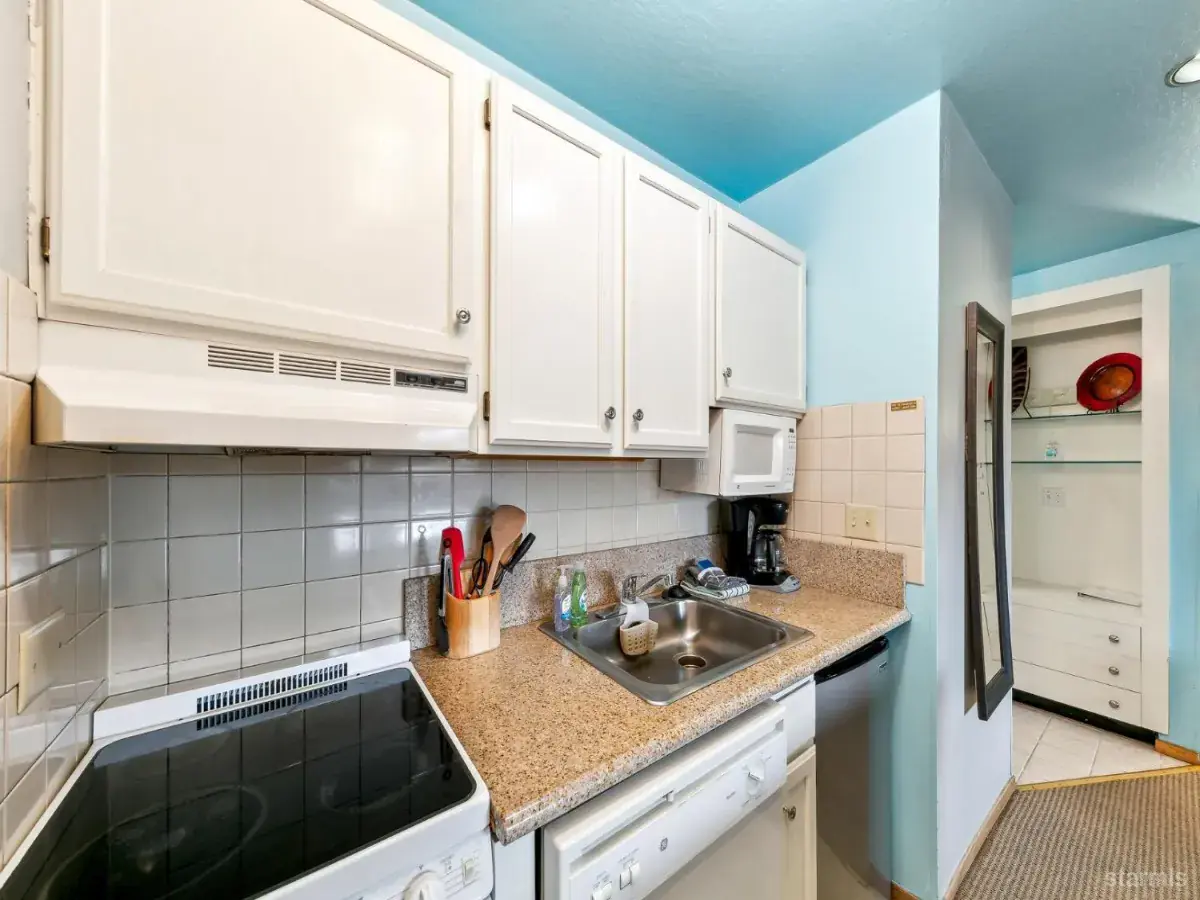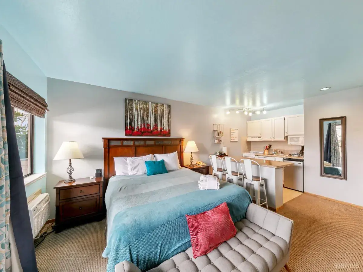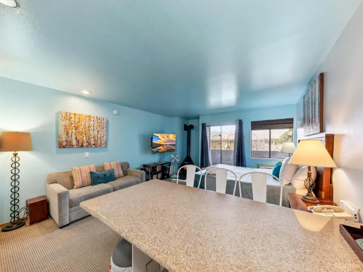 Your Lake Tahoe getaway awaits! This cozy studio condo is the prefect place to escape to Lake Tahoe for a couple nights or rent out and receive rental income. Lakeland Village is centrally located in South Lake Tahoe and is part the Tourist Core. This means it is walking distance to many shops, restaurants, and beaches, and can be rented as a short term vacation rental. The property features two pools, hot tubs, tennis courts, pier, club house, gym, kids playground, underground parking, and 1000 feet of sandy beaches. This unit comes fully furnished, has granite counter tops, and a beautiful tile shower.
