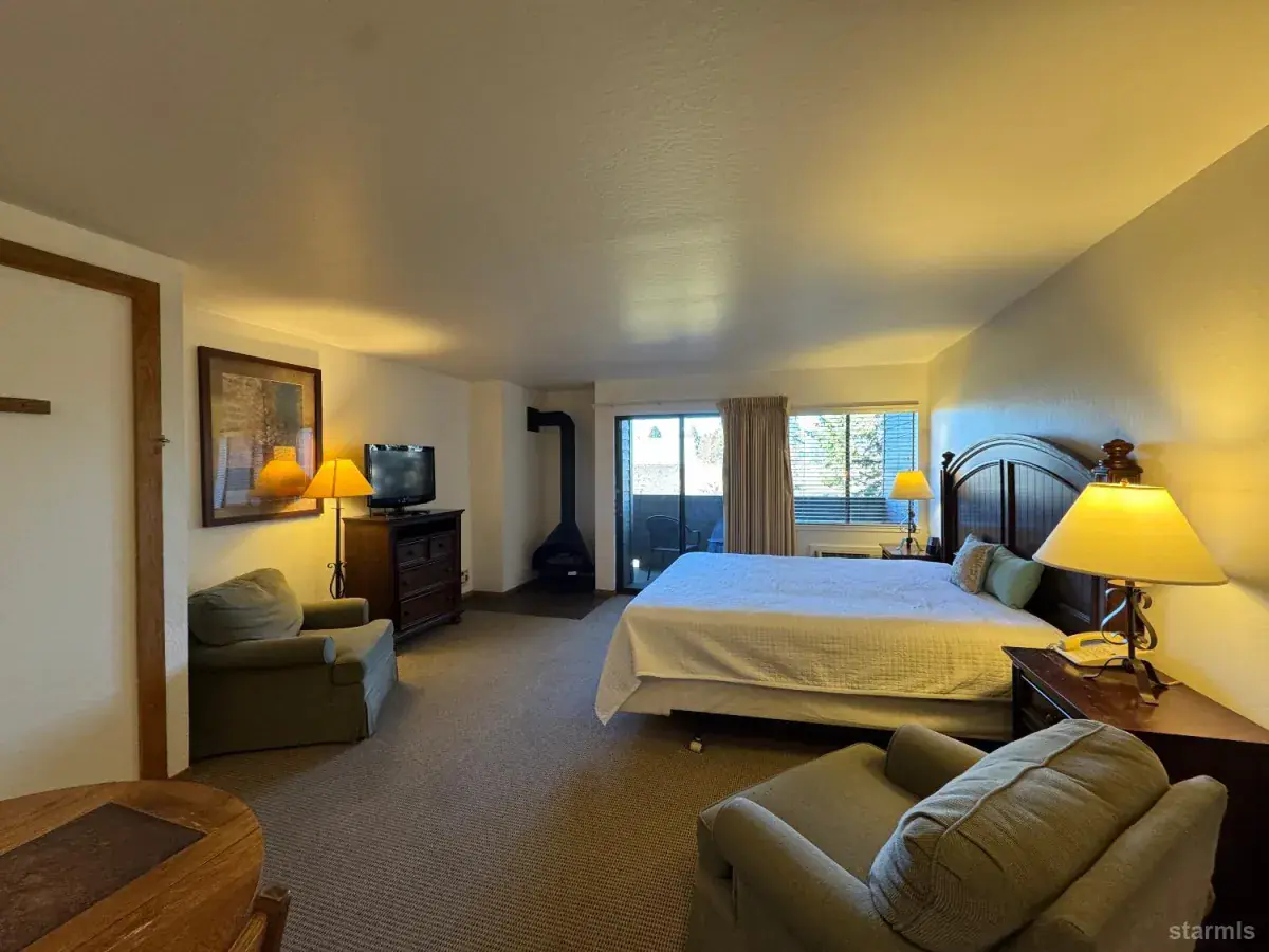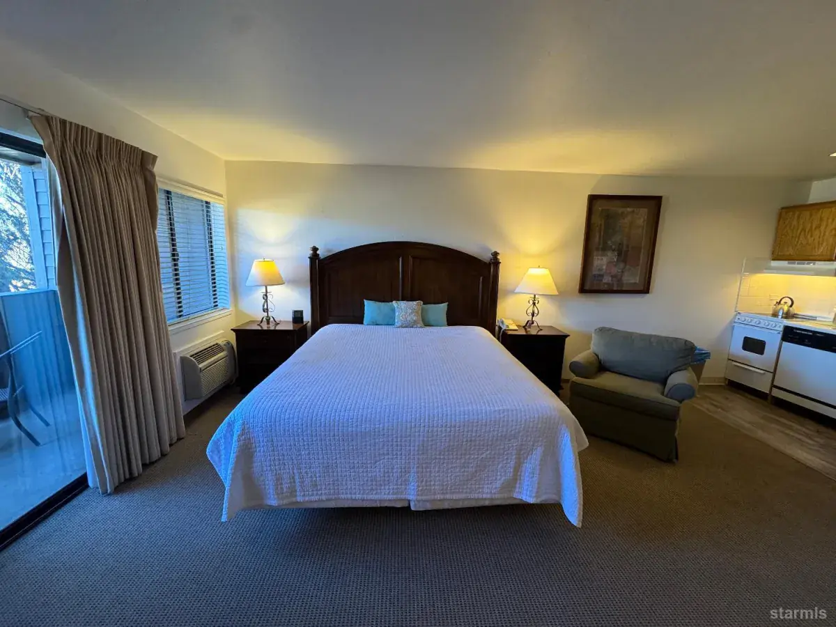 Tucked within the heart of South Lake Tahoe, this beautifully appointed studio condo in Lakeland Village offers the perfect blend of comfort, convenience, and mountain charm. Located in the main lodge building, this single-story retreat comes fully furnished and thoughtfully designed for effortless living. A king size bed and double-size Murphy bed maximizes space, while a sleek contemporary fireplace adds warmth and style. Step out onto the covered deck and take in views of majestic Mount Tallac your daily reminder that you’re living in one of the most scenic corners of the Sierra.Beyond your front door, Lakeland Village offers an impressive array of resort-style amenities. Enjoy year-round access to a heated swimming pool and hot tub, two saunas, and a fully equipped fitness center. The lodge lobby, with its stone fireplace and cozy seating areas, invites you to relax and unwind after a day of adventure.But the true magic lies just steps awayover 1,000 feet of sandy beach along the shores of Lake Tahoe. Here, owners and guests can bask in the sun, gather around beachside fire pits, or enjoy seasonal barbecues with friends and family. A new, modern pier is currently under construction, enhancing the already exceptional lakefront experience. There’s also a beachside pool and hot tub open year-round, plus plenty of lounge chairs to make every beach day feel like a vacation.Best of all, Lakeland Village is located in the tourist core, where short-term vacation rentals are permitted and permits are available
