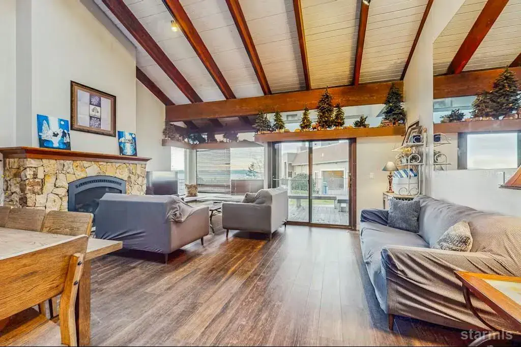 Lakeland Village spans 19 acres along the shores of South Lake Tahoe, boasting over 1,000 feet of pristine sandy beach. This stunning beach house is just steps from the water separated only by a sparkling seasonal swimming pool and a year-round hot tub. From your private deck, soak in breathtaking sunsets as you transition seamlessly from poolside relaxation to lakeside serenity.A brand-new pier is currently under construction, designed with modern conveniences to enhance boating and ensure easy access for all owners and guests.This fully furnished home offers impressive financials, with a proven six-figure rental history. Inside, you’ll find thoughtful upgrades including slab granite countertops, hickory cabinetry, tile flooring, stainless steel appliances, and a wet bar with mini refrigerator. Four expansive skylights flood the space with natural light, while a striking stone fireplace with gas insert anchors the living room beneath vaulted open-beam ceilings capturing the quintessential Tahoe atmosphere.Homeowners at Lakeland Village enjoy:Three swimming pools,two hot tubs,a brand-new pier,fitness center & saunas,clubhouse,seasonal beach side barbecues, year-round beach fire pits and so much more.Beach houses at Lakeland Village are rarely available and this opportunity won’t last long. Owner is offering and prefers seller financing with a minimum of 30% down.