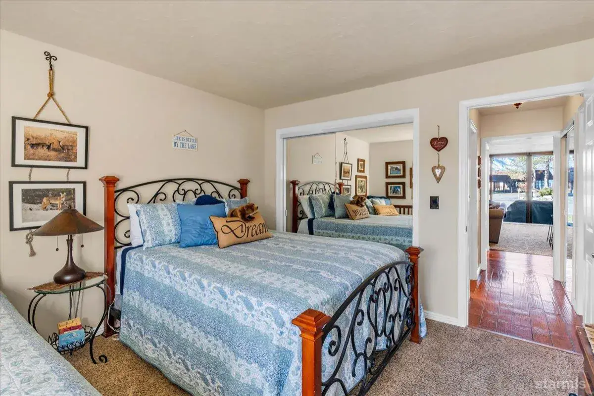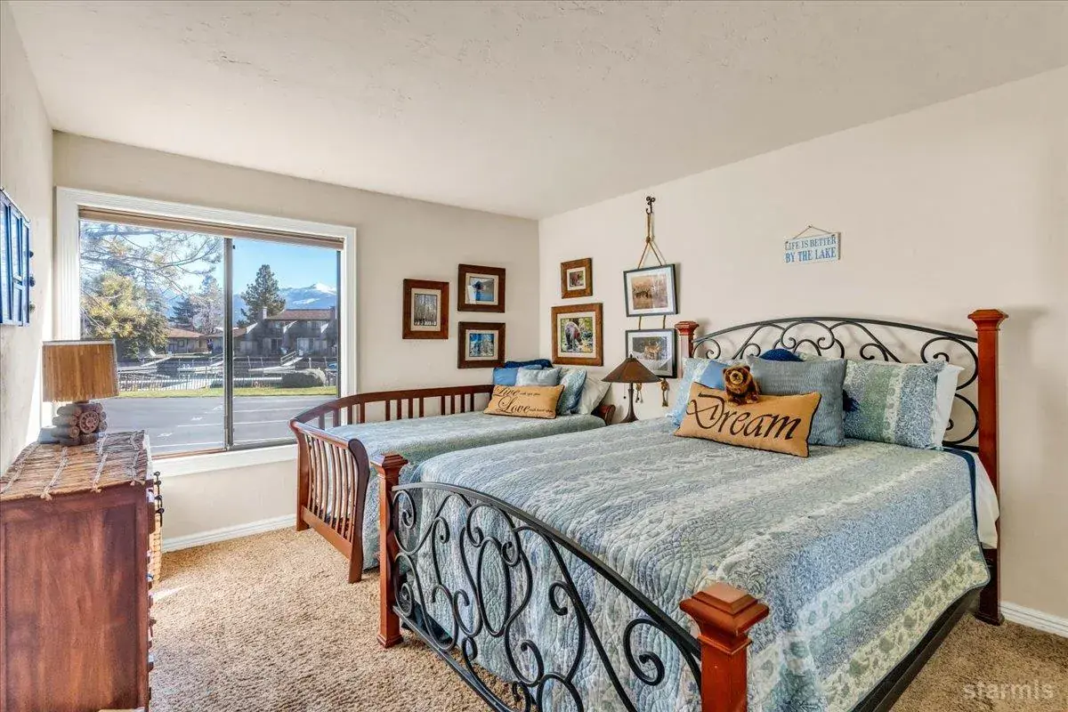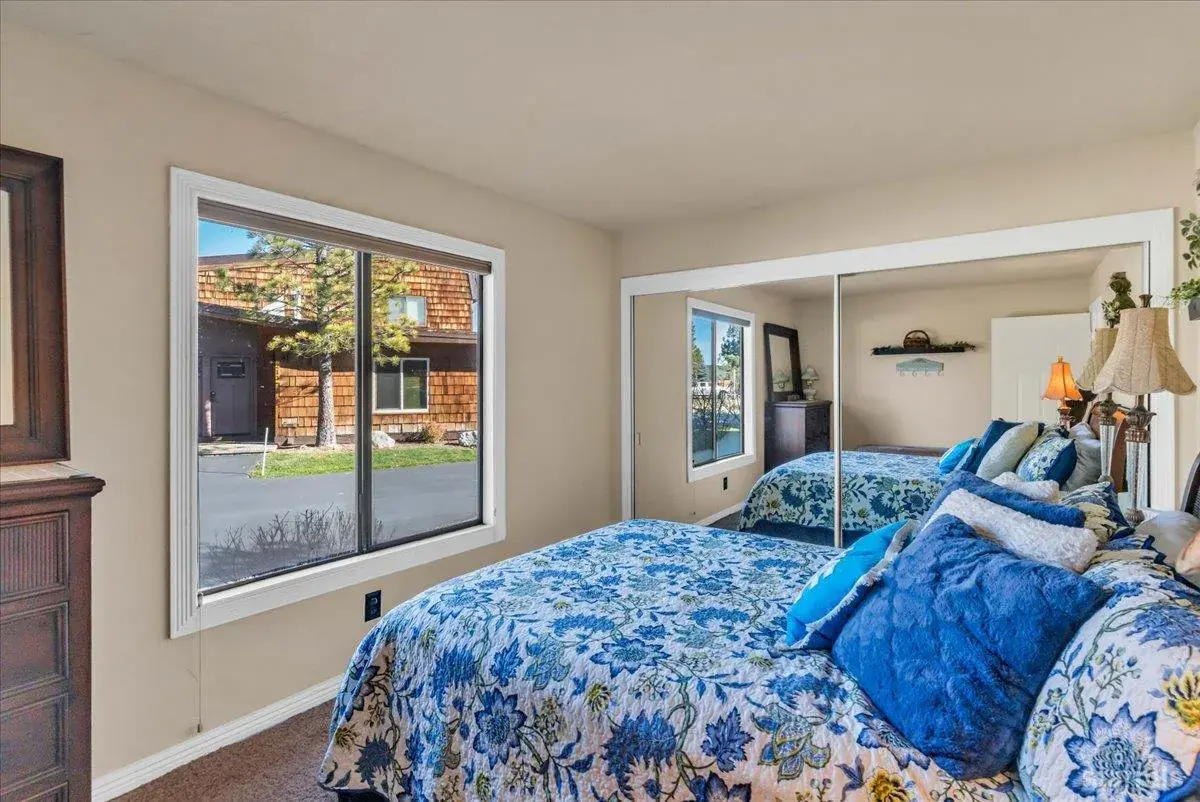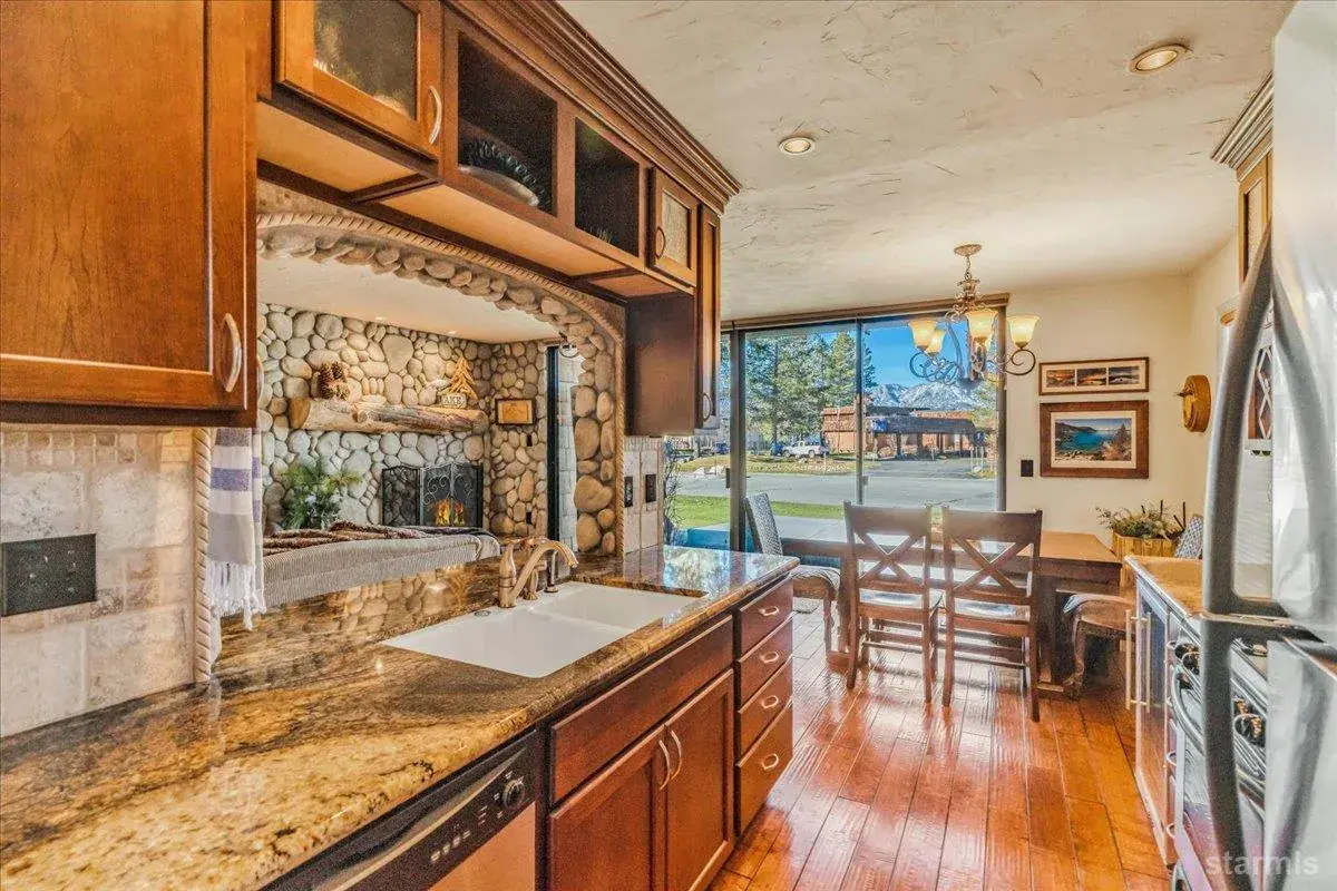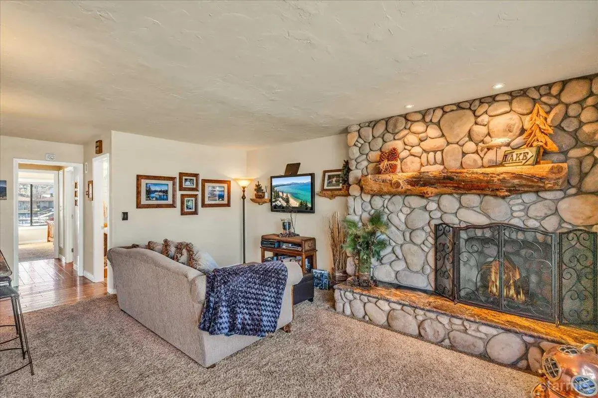 Warm and timeless Tahoe townhome offering single-story living, lake and mountain views, corner unit, plus a dedicated boat slip with quick lake access!This furnished home showcases extensive owner improvements, including a gas stovetop/oven and microwave, Kitchen Mart cabinetry, granite counters, beverage refrigerator, and enhanced lighting with can lights and under-counter lighting.The living area features a gas fireplace with granite chiseled-edge hearth, river rock accent walls, recessed lighting, and a custom Sugar Pine mantle with matching wall shelves. Enjoy hardwood floors, carpet in select areas, mirrored closet doors with ample storage space, and a secure owner’s cabinet in the primary closet.Both bathrooms have been remodeled with a rustic esthetic, including tile flooring and one has a spa-style rainforest shower with multiple shower heads. Additional conveniences include a stackable washer/dryer with adjoining storage, linen closet, insulated patio storage shed, and a "Grillzebo" with BBQ on the spacious paver patioperfect for enjoying the views of Lake Tahoe!Located just steps from the Lake, Tahoe Keys Pavillion and amenities, including a gated outdoor pool, year-round indoor heated pool & spa, pickleball courts, volleyball courts, playground, private beach, and beautifully maintained grounds. This is an exceptional opportunity to enjoy the Tahoe Keys lifestyle in an upgraded, move-in-ready home.