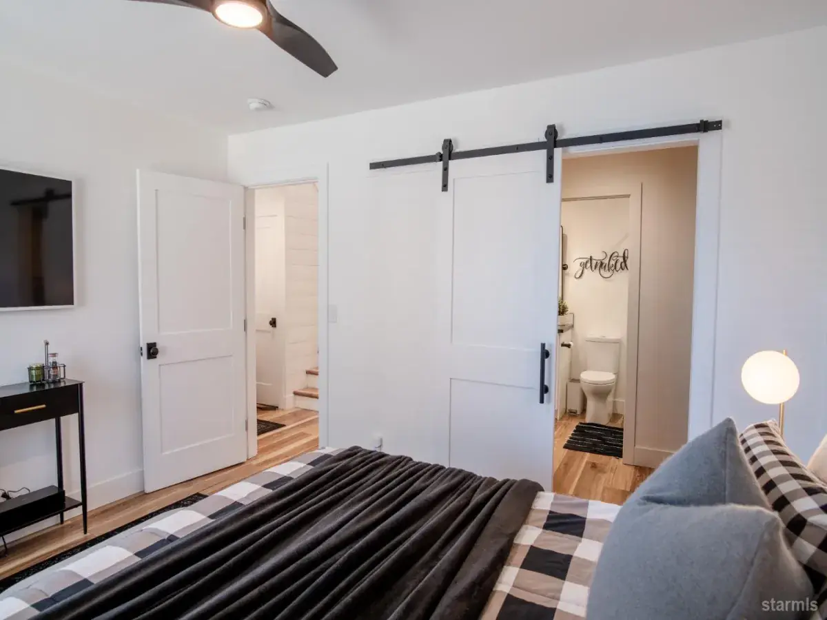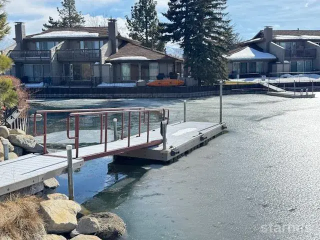 Welcome to refined waterfront living in the Tahoe Keys. This beautifully renovated 3-bedroom, 2-bath townhouse offers modern design, quality upgrades, and coveted lake access. Filtered lake views, a private shared boat dock, and close proximity to premier amenities make this a standout turnkey opportunity with low maintenance living.The main living area with gas insert fireplace and chefs kitchen are thoughtfully located on the downstairs level, creating an ideal layout for everyday living and entertaining. This level also includes an en-suite bedroom, providing flexibility for guests, multigenerational living, or convenient single-level use. Fully remodeled in 2021, the home features durable and stylish Hydroshield hickory wood-laminate flooring throughout, a waterfall-edge slab quartz kitchen countertop, and granite slab countertops in the bathrooms. The open-concept living space is enhanced by wood-beamed ceilings, abundant natural light, and seamless indoor-outdoor flow to a private patio, perfect for relaxing or entertaining while enjoying peaceful water views. The kitchen showcases custom cabinetry, premium appliances, and a clean, chic aesthetic that balances form and function.The primary bedroom includes a walk-in closet with custom built-in storage and a thoughtfully designed ensuite bathroom with a washer and dryer conveniently located within. One of the additional bedrooms also features a walk-in closet with custom built-in storage, offering excellent organization and functionality. A house alarm system with security cameras provides added peace of mind.As a Tahoe Keys owner, enjoy access to an unmatched suite of amenities including indoor and outdoor pools, hot tubs, two private beaches, a walking pier, pickleball and tennis courts, basketball courts, and a full-service marina. Conveniently located within walking distance to these amenities, this property delivers the best of Tahoe waterfront living move-in ready and designed for year-round enjoyment.