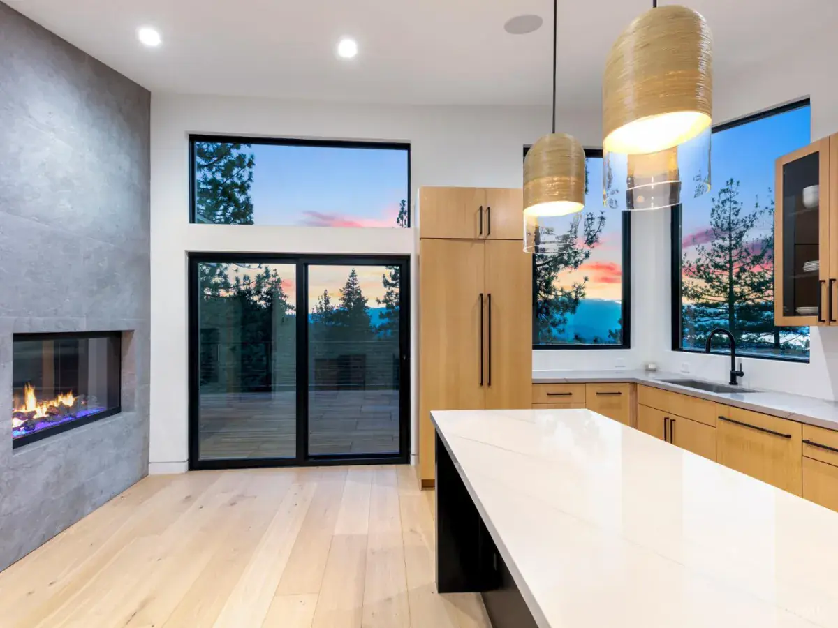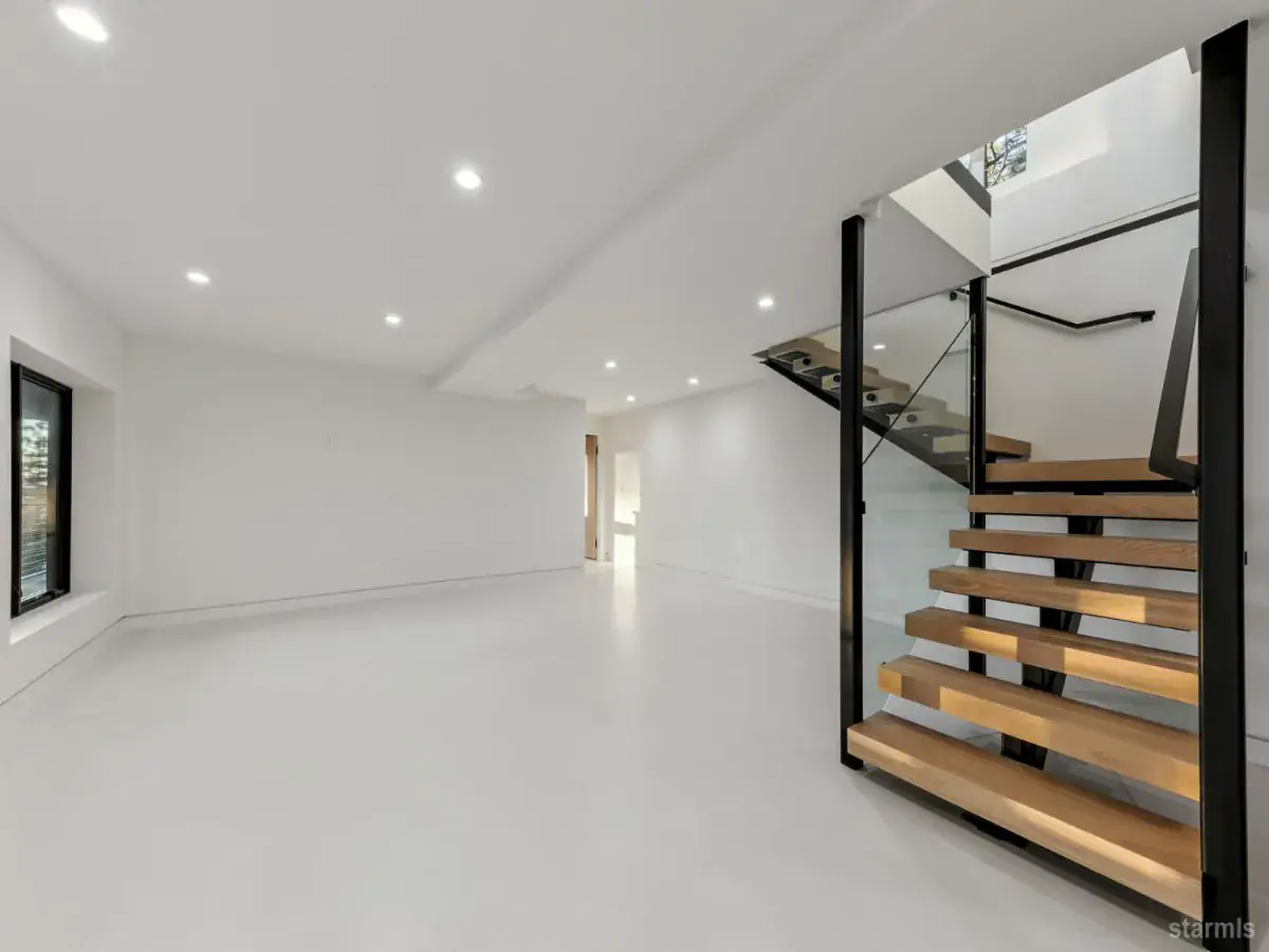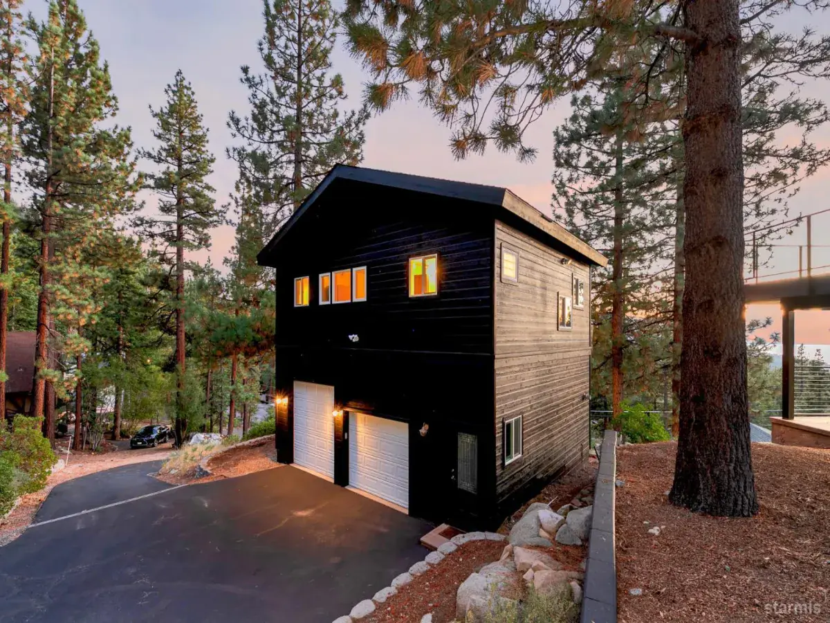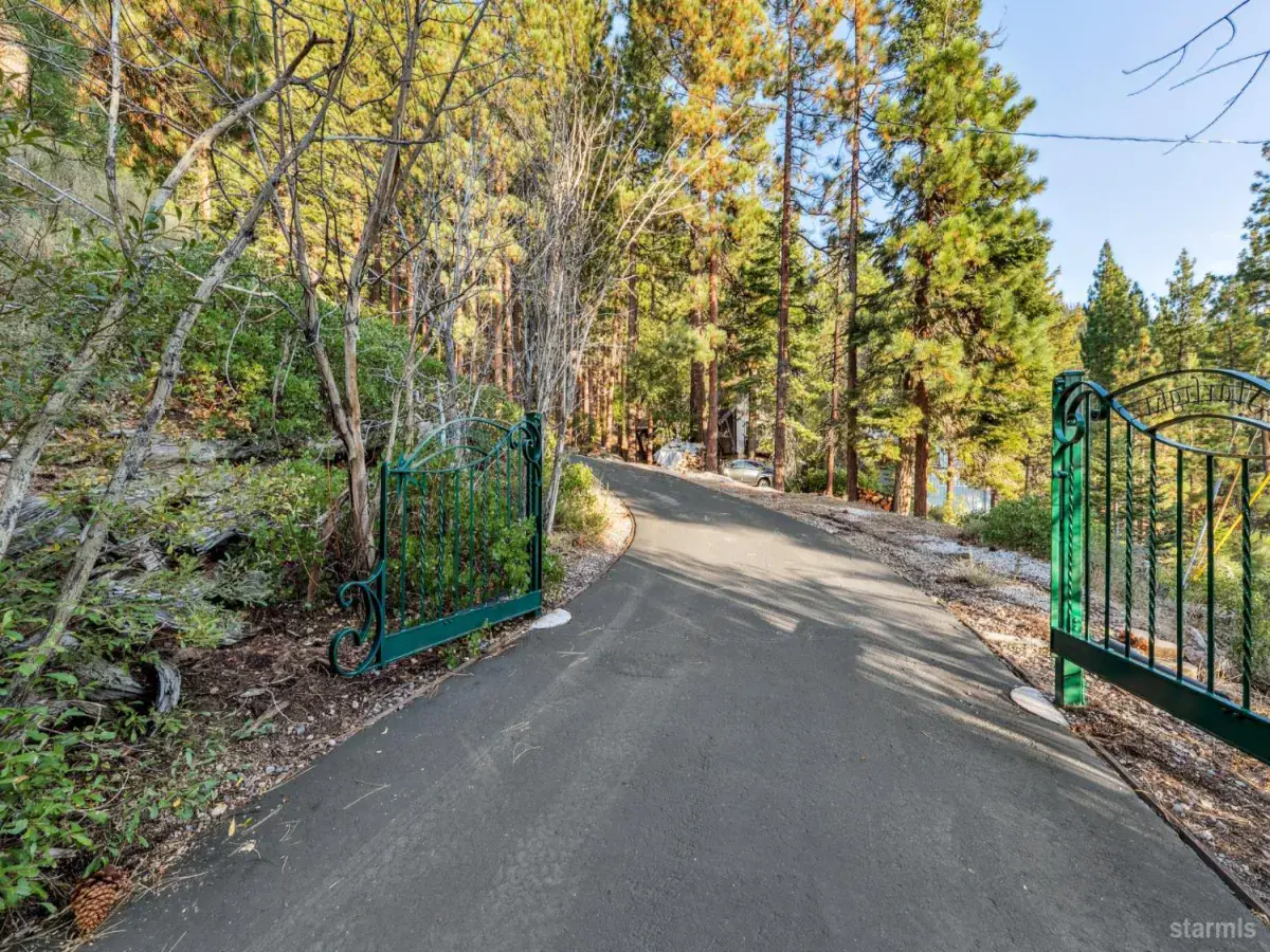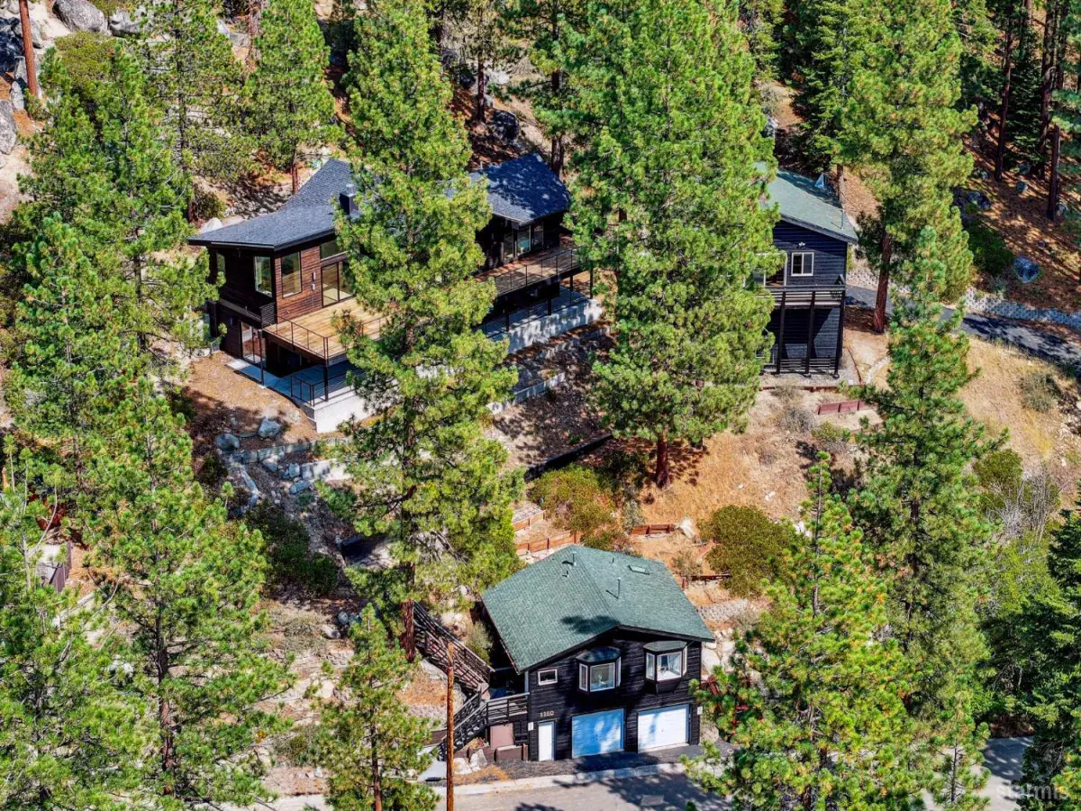 Situated just 1,000 feet from Heavenly’s California Base Lodge and less than two miles from Ski Run Marina and the Stateline corridor, this .82-acre property blends central access with remarkable privacy and sweeping westerly views of Lake Tahoe and the surrounding peaks. The parcel rises up the hillside, backing to U.S. Forest Service land for a serene, uninterrupted setting and dramatic sunsets.- -A gated, meandering driveway leads to the upper compound with a generous parking area, oversized two-car garage with vaulted ceilings, and a full studio apartment above featuring kitchen, living and dining area, freestanding fireplace, full bath, and furnishings that include a pool table. At street level, another two-car garage supports a separate studio apartment currently tenant-occupied on a month-to-month basis. Both studio buildings have fresh exterior paint and new composite decking, with the upper studio recently updated inside as well.- -The centerpiece of the property is the fully reimagined main residence, taken to the studs and rebuilt with a shed-style roofline, new 40-year roof, in-floor hydronic heating, all new plumbing, electrical, audio wiring, hardwired ethernet, and sleek black Pella windows. The upper level showcases soaring open-beam ceilings, a two-way linear fireplace, and a completely custom kitchen with flush cabinetry, oversized island, built-in commercial appliances, and designer lighting and plumbing fixtures. A striking half bath with marble walls and vessel sink sits just off the great room, while the primary suite features a cedar accent wall, walk-in closet, and a spa-like bath with stone shower and dual vanity. Spanning the entire width of the home, a massive front deck constructed with Brazilian Ipe floating panels, takes in spectacular lake and mountain views and provides seamless outdoor living.- -On the lower level, a dramatic central staircase with steel girder, open wood treads, and glass banister rises to the main living area. This floor also offers a large mudroom, spacious family room, billiard room with custom backlit bar, Murphy bed, and half bath, plus a second full bath with tub/shower, backlit wood ceiling, and custom vanity. A concrete patio runs the full width of the home and is completely covered, creating a protected outdoor gathering space in every season.- -Blending modern architecture, multiple living spaces, and one of the most central locations on the South Shore, this property delivers luxury living with versatility for extended family, rental, or caretaker accommodations.