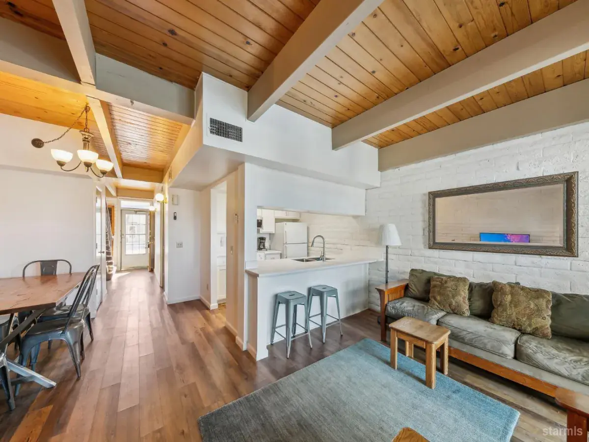 Experience the ultimate in water front living, while enjoying the sheltered confines of the Tahoe Keys Marina. This renewed townhome provides immediate access to Lake Tahoe, as well as a straight shot into your boat slip, that can easily accommodate 30′ and larger vessels. The unit is close to the Marina’s fueling station and within walking distance to HOA amenities, such as the indoor and outdoor pools, private beach, park area, basketball, tennis and pickleball courts. Recent renovations include all new Milgard vinyl windows, composite decking, refaced kitchen cabinetry and slab countertops, interior paint, refurbished gas fireplace, LVP flooring, mirrored closet doors and more. Traditional finishes of open beam ceilings with tongue and groove pine maintain a classic Tahoe warmth and the unit comes completely furnished.HOA costs eliminate the worry of exterior and on-site maintenance, insurance, snow removal, water and trash, allowing for the pure enjoyment of your home or vacation getaway. This is one of the only bulkheads that have been replaced and completely paid for.