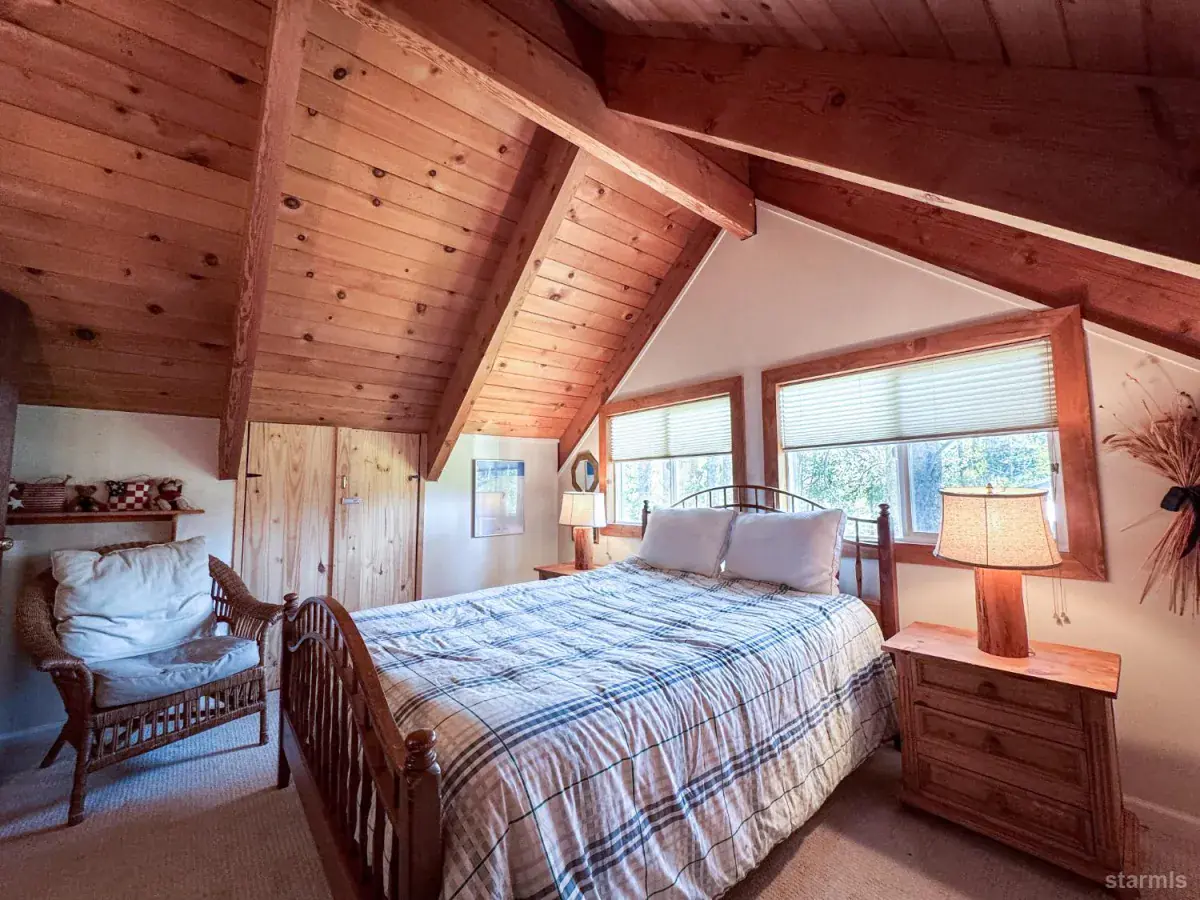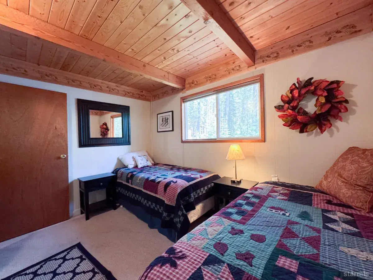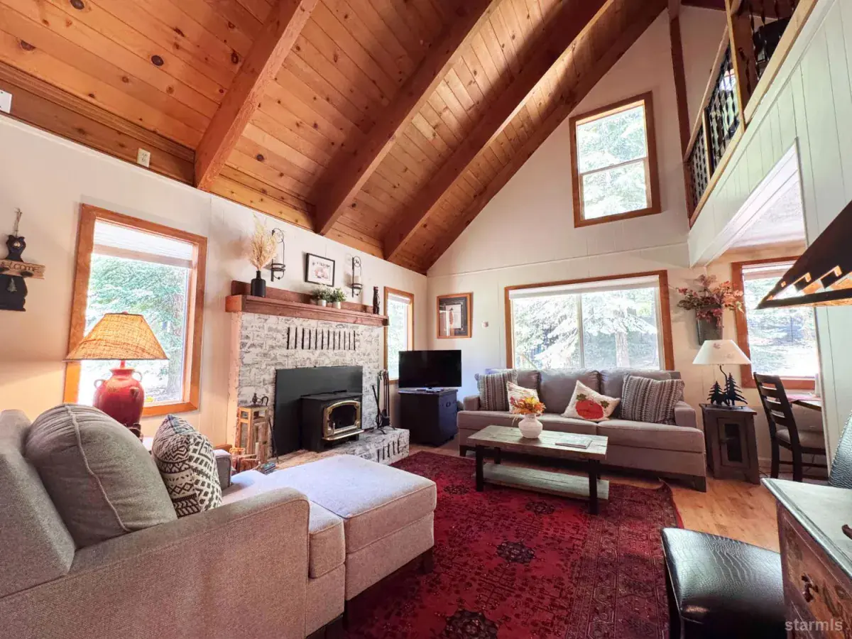 This charming South Lake Tahoe cabin, tucked away in the peaceful North Upper Truckee neighborhood, perfectly blends comfort, style, and natural beauty. With its spacious layout and inviting mountain-lodge ambiance, it’s ready for new owners to move right in and start living their Tahoe dream.A welcoming covered front porch invites you inside to the main living area, conveniently located at street level. The front door opens to a warm, light-filled living room featuring a wood-burning fireplace, laminate flooring, and large windows framing views of the surrounding forest. Open-beam vaulted pine ceilings and knotty pine accents add to the cabin’s rustic charm.The roomy kitchen offers generous counter space, ample cabinetry, and easy access to the utility and laundry room. Down the hall are two comfortable bedrooms and a fully updated bath. Upstairs, you’ll find a third bedroom, another updated bath, and an open loft overlooking the living areaideal for a home office, reading nook, or additional sleeping space. This cabin is truly move-in ready. Step outside to enjoy a park-like backyard with two spacious deck areas and a peaceful patio surrounded by towering pinesperfect for relaxing or entertaining guests. A backyard storage shed provides plenty of room for your Tahoe toys and outdoor gear.Nature lovers will appreciate that California Conservancy land lies directly behind the property as well as across the street, ensuring lasting privacy and scenic views. Outdoor enthusiasts will also love the locationjust 15 minutes to Lake Tahoe’s beautiful beaches, Heavenly Mountain, and Sierra-at-Tahoe ski resorts. Nearby golf courses, hiking and biking trails, and fishing spots make this a perfect year-round escape for anyone seeking both tranquility and adventure.