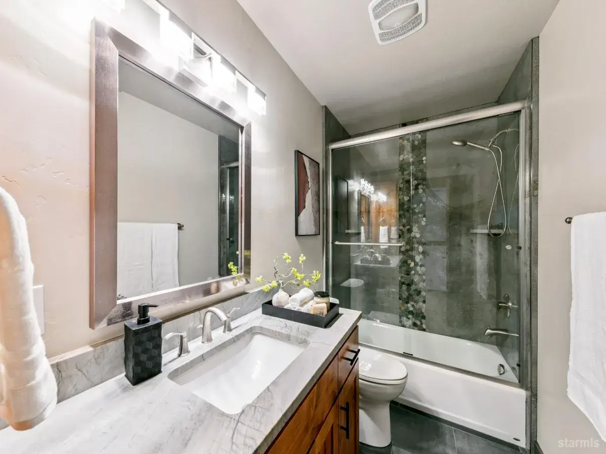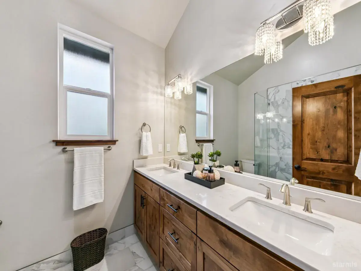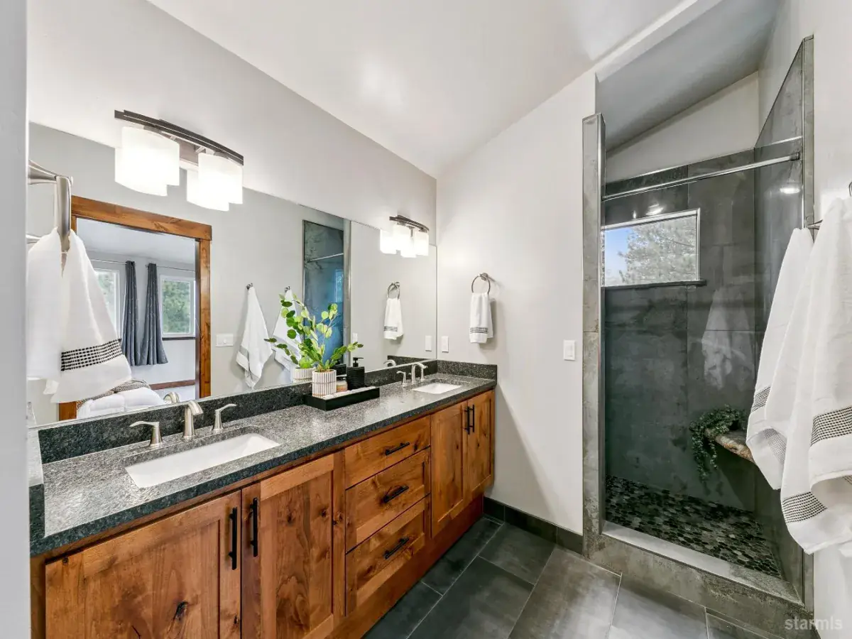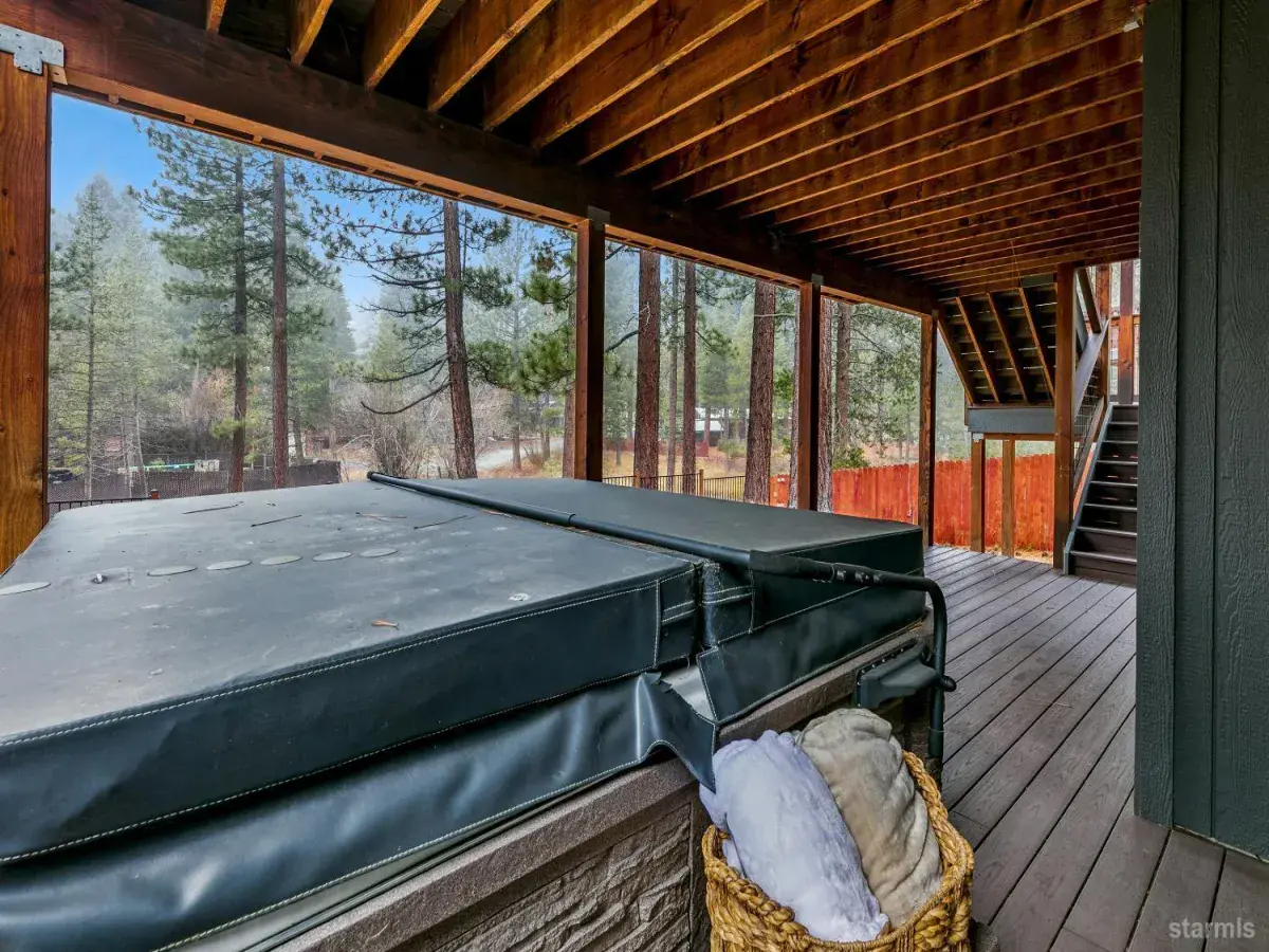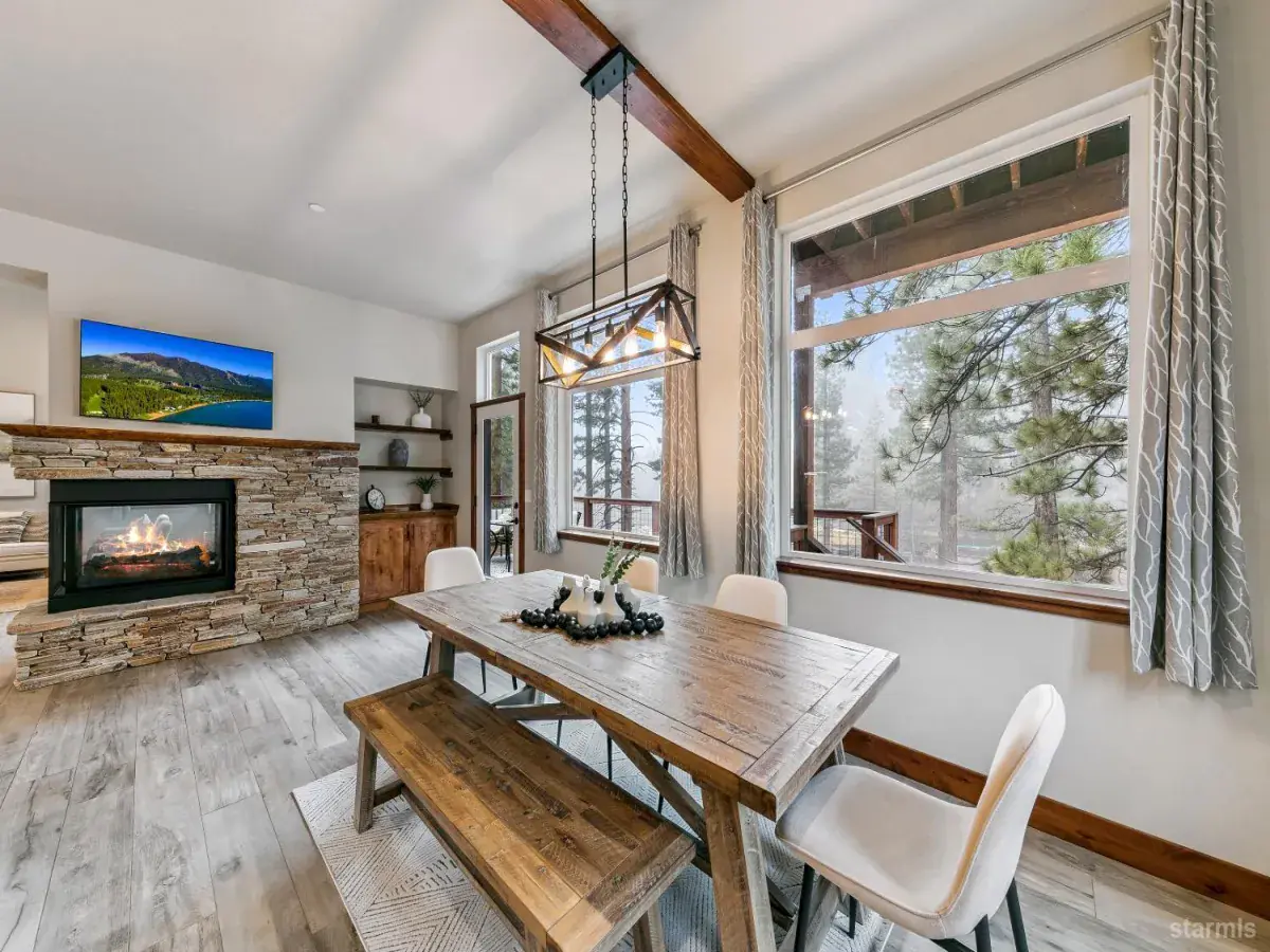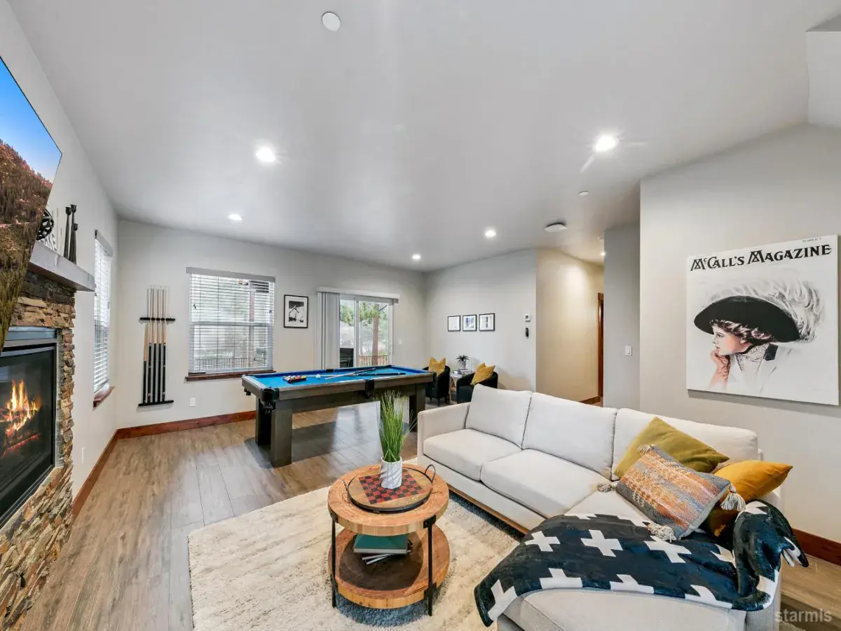 Your search for the perfect home truly ends here. This custom-built masterpiece offers everything you’ve been dreaming of and more.The main level welcomes you with a warm living room featuring a three-sided gas fireplace with a custom rock hearth, a bright and inviting chef’s kitchen, a spacious pantry with a second fridge, and a great room with a large dining area perfect for everyday living and entertaining. There is also an open and bright living space with access to the expansive upper deck and stairs down to the lower level deck and landscaped yard. Down the hallway, you’ll find a bathroom, a guest bedroom, and a primary master with an en-suite bathroom.The third level is dedicated entirely to a grand primary retreat, featuring a private deck, an expansive bedroom, a walk-in closet with skylight, and a luxurious spa-like bathroom.The ground level offers two additional bedrooms, a full bathroom, and a generous family / game room with a second gas fireplace, ideal for cozy winter evenings in Lake Tahoe.Enjoy lavish low maintenance decks on every level, providing plenty of space for entertaining, hosting memorable gatherings, or unwinding in your private jacuzzi.Additional highlights include: radiant in-floor heating throughout (with six zones that allow for custom control), custom tile work including a travertine entryway, on-demand hot water, and ample storage space including a walk-in attic space, custom shelves in the garage, and 120 sqft storage shed.Words can’t fully capture the beauty and elegance of this exceptional property.