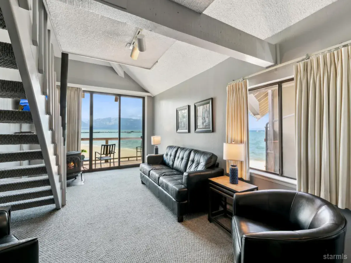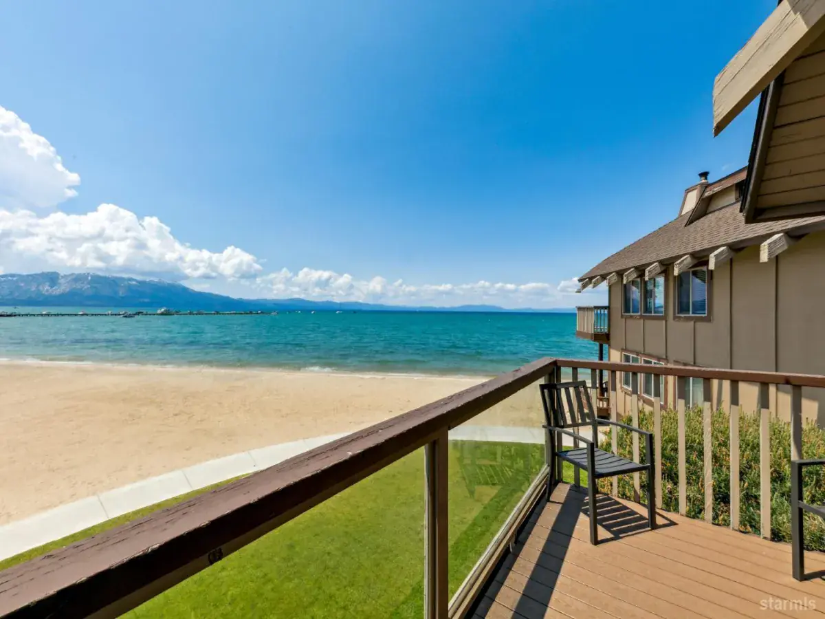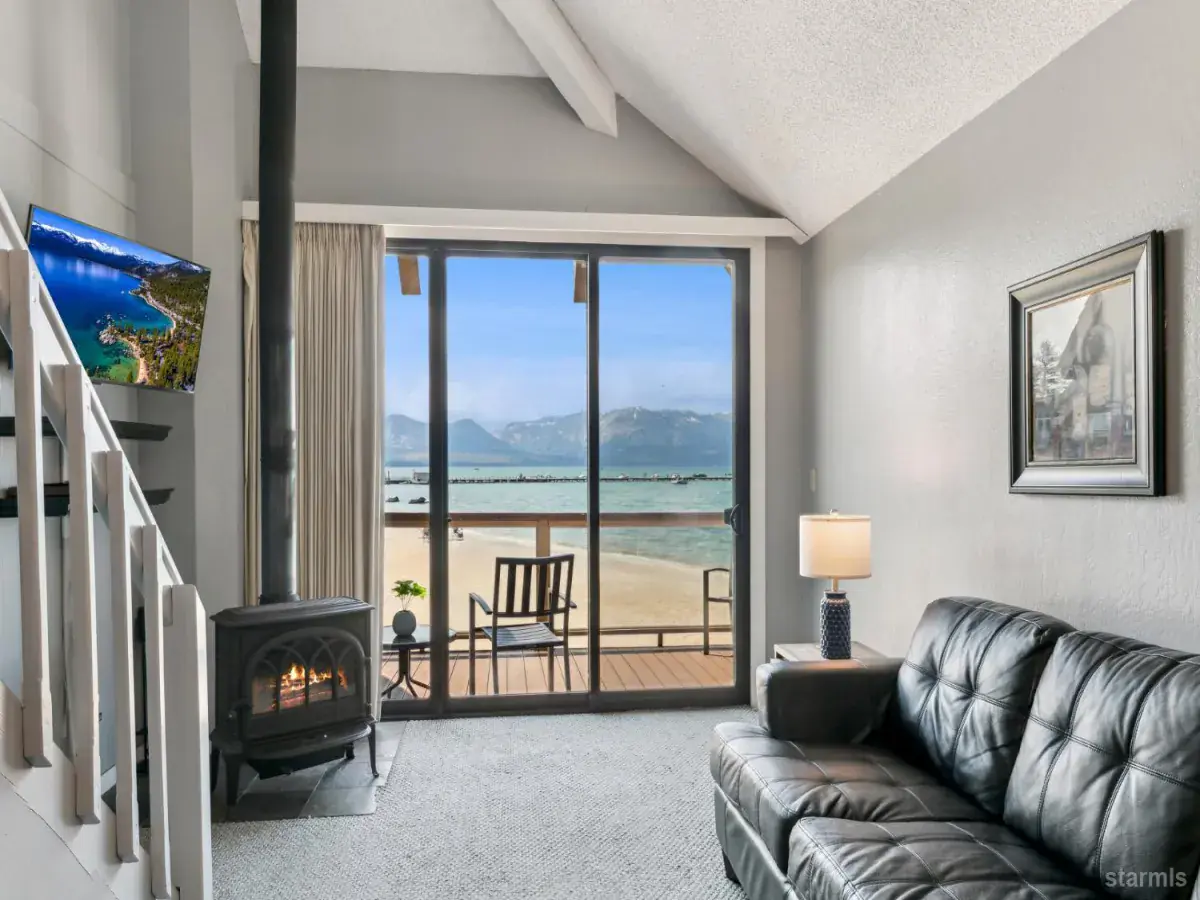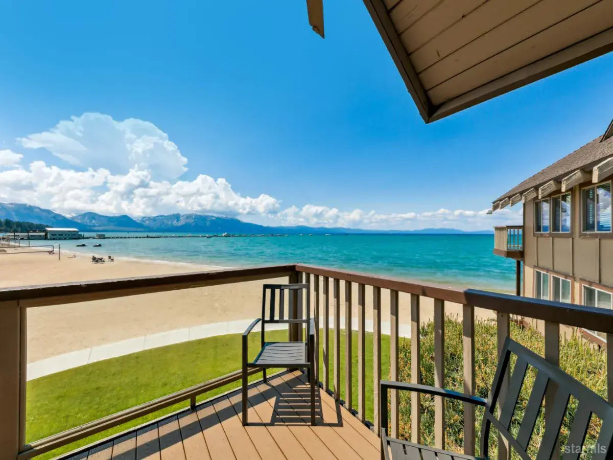 Experience Lakefront Living at Its Finest!Step out your door and directly onto the pristine, sandy shores of Lake Tahoe an extraordinary opportunity to own a beautifully appointed haven in one of the world’s most iconic destinations. This rare gem allows you to live where others only dream of vacationing.Perfectly positioned for both relaxation and adventure, you’re just minutes from world-class skiing, acclaimed restaurants, vibrant casinos, and year-round outdoor recreation. Directly across the highway, a scenic 9-hole golf course invites you to tee off with breathtaking mountain views.The residence features 1 bedroom, 1 bathroom, and a spacious loft ideal for hosting guests, setting up a home office, or creating a cozy escape. Step out onto your deck and take in panoramic views of the lake, the perfect setting for morning coffee or evening sunsets.Bring your kayaks, paddleboards, and bikes, every day here is a new opportunity to explore, unwind, and fully embrace the magic of lakeside living.Don’t miss this rare chance to make Lake Tahoe your everyday escape. Live the lifestyle most only dream about.