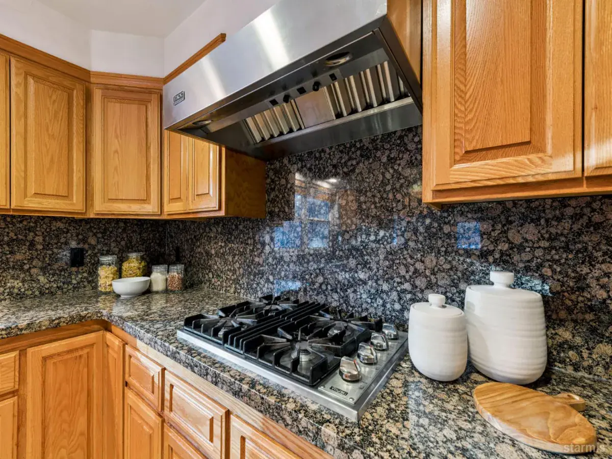 Crafted by an owner-builder with uncompromising quality, this refined Highland Woods residence blends timeless Tahoe charm with modern luxury. The vaulted great room features tile floors, built-in speakers, and a striking floor-to-ceiling river rock fireplace. A chef’s granite kitchen offers a gas Viking range, Kohler cook center, a new double wall oven, stainless steel appliances, abundant storage, and a spacious breakfast bar.Entertain in style with a formal dining room featuring a custom built-in hutch and temperature-controlled wine storage for up to 200 bottles. The private primary suite provides a spa-like retreat with a Jacuzzi tub, tile flooring, and custom tile work. A downstairs family / bonus room and office is a useful addition to the home.Premium upgrades include radiant floor heating with four zones (2019), a new boiler, central vacuum, wood-wrapped Pella windows, hardwired surveillance, fully fenced yard and extensive storage including a hidden room with built-in safe and a Tuff Shed. Set near the meadow and bike path, this beautifully updated home offers elevated Tahoe living in a desirable in-town location.