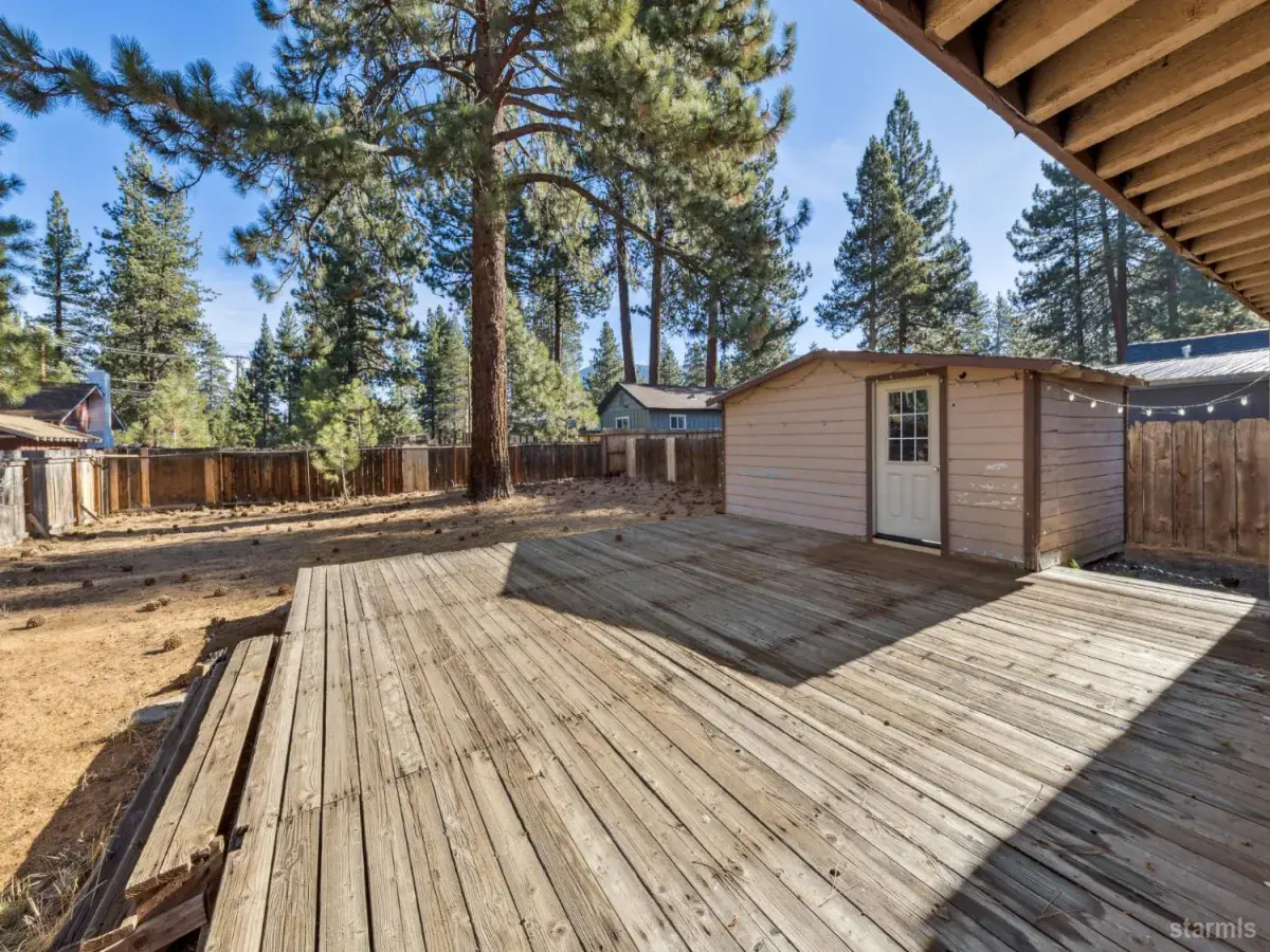 Tis always the season to enjoy this cozy and convenient South Lake Tahoe property! The interior wood accents provide a warm cabin feel, while the large windows allow for plenty of natural light. At 1,168 square feet of total living space, the generous and open living/dining area fits neatly between the two bedrooms and full bathroom on one side, and the kitchen, laundry room, and door to the specious backyard on the other. Augmenting the mountain feel, the fully fenced back yard backs up to a vacant California-Tahoe Conservancy parcel! There is a large shed/workshop in the backyard for storage options. The convenience of this property’s location means opportunities for fun – the bike trail is around the corner along with trails through the woods and meadow to Lake Tahoe. Don’t feel like driving anywhere to dine? Try the short walk to Lake Tahoe Blvd with local options like happy hour at Off the Hook Sushi. World class Heavenly Resort and the around the clock excitement of Stateline, NV are just minutes away by car. Reach out today to make your showing appointment, this property is a great fit for primary residence, second home, or an investment rental.