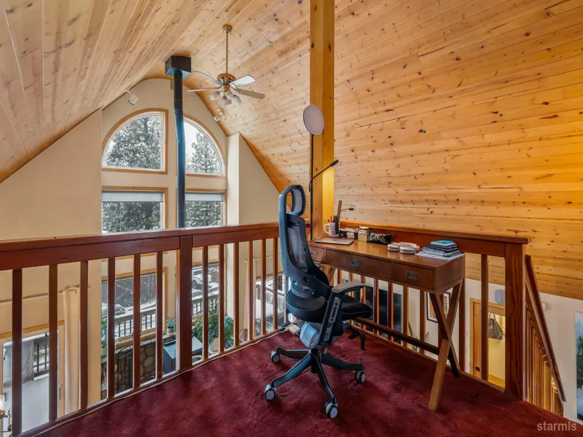 Beautifully maintained, with warm wood finishes, clean lines, minimalist design, and chalet-style ceilings, creating an inviting alpine ambiance. The home has been meticulously cared for by a European family who brought their love of mountain cabin living into every detail. Featuring vaulted wood ceilings, a cozy wood stove, a spacious open living area, and a bright kitchen/dining space, this home is ideal for mountain living. Main level includes Two bright, comfortable bedrooms with plenty of natural light, One full bathroom, laundry room, Open-concept kitchen, living room, and dining room perfect for gathering, relaxing, and entertaining. Spacious loft ideal for a home office, reading nook, or kids’ gaming/creative space. Dream primary bathroom with beautiful finishes and a serene, spa-like atmosphere, with large en-suite bathroom. Large walk-in pantry and an enormous unfinished storage area for ski/lake gear, and a 2-car garage with an additional home gym/workspace. Beautiful and peaceful deck surrounded by pines, ideal for morning coffee, outdoor dining, or cozy aprs-ski gatherings. Located minutes from Northstar, Palisades, beaches, and Tahoe trails. A perfect year-round retreat for families, skiers, and outdoor lovers.