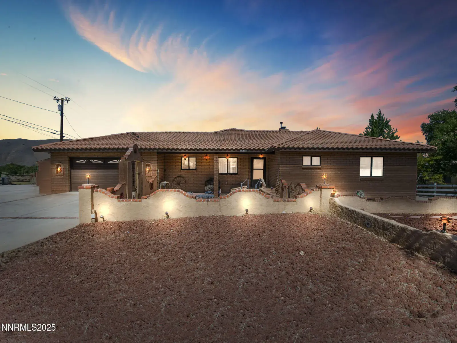 Charming Spanish-Style Home with Breathtaking Views of the valley, Carson City and the surrounding Sierra Mountains. This is a stunning 2-bedroom home, a perfect blend of Spanish architecture and modern convenience. Nestled on just under an acre, this residence features a very open floor plan with a large kitchen, large dining room and spectacular great room with a striking rock walled fireplace. The great room includes a separate area with a very unique built-in wet bar and sitting area large enough for a game table and chairs, making it ideal for entertaining guests while enjoying the spectacular views of Carson City and the surrounding Sierra Mountains. This Great room serves as the heart of the living space, creating a warm and inviting atmosphere and even includes the expensive electrically controlled “Pioneer’ Metal Roll Down Shades to shelter the afternoon sun. The primary suite has a gas fired fireplace, a large walk-in closet and a wood deck which has spectacular views of the Carson City lights in the evening, and the deck is even wired for a hot tub. The large second bedroom overlooks the front yard. Be sure not to miss the large game bonus room which could be made into a second primary suite. The spacious two car garage, additional two car open parking adjacent to the garage and large turn around area make parking a breeze. There is a separate driveway leading to an RV pad on the northern side of the home equipped with an electrical hookup, this property caters to all your vehicle storage and travel needs. This property is situated on a corner lot and sheltered in privacy with large pine trees and the surrounding fencing. This is located just a short stroll from the picturesque Carson River, this home offers both tranquility and accessibility. Constructed from durable slump stone, it presents a unique & charming aesthetic that complements the natural landscape. Experience the perfect blend of comfort, style, and adventure in this exceptional home!