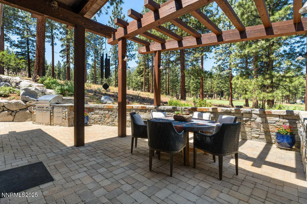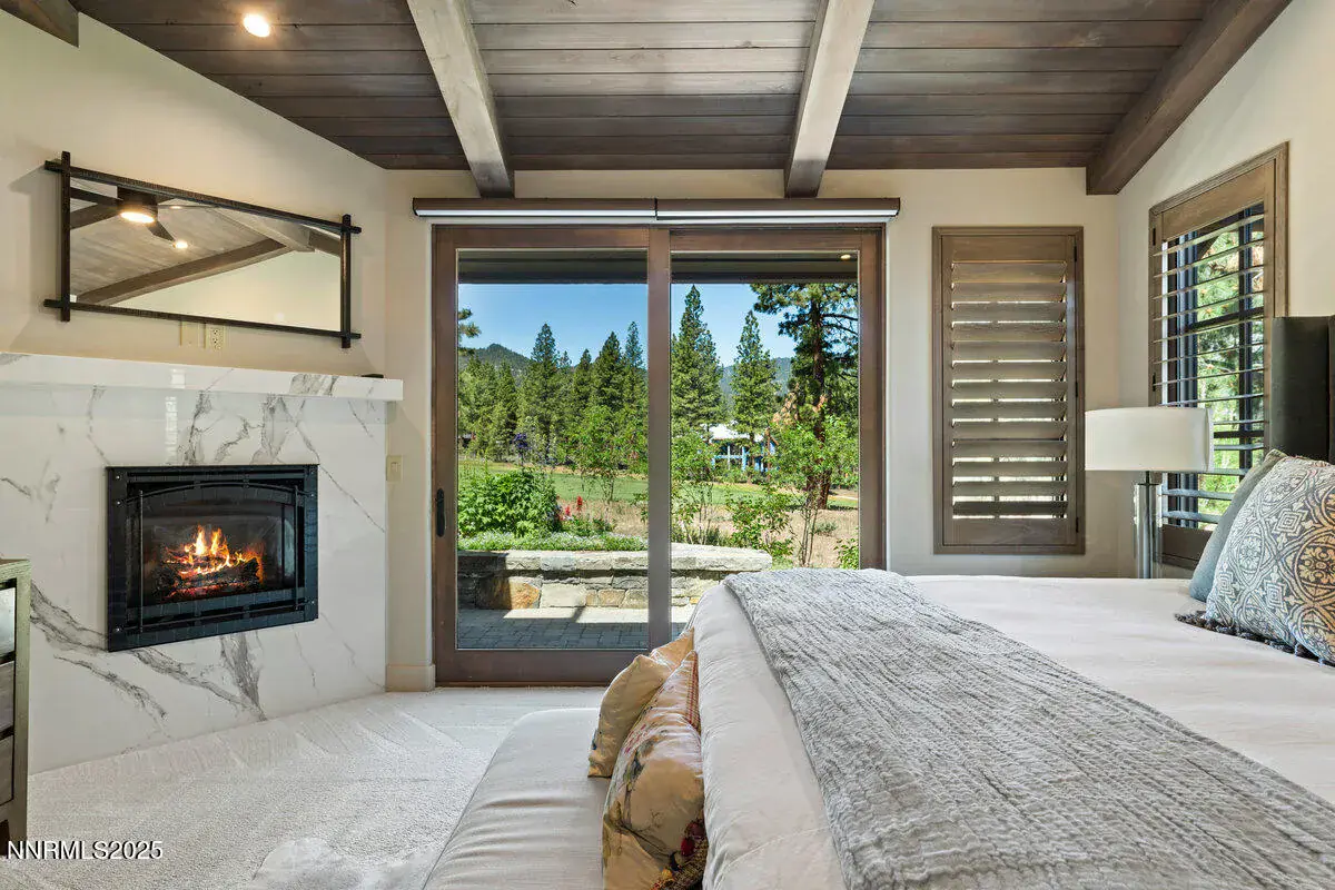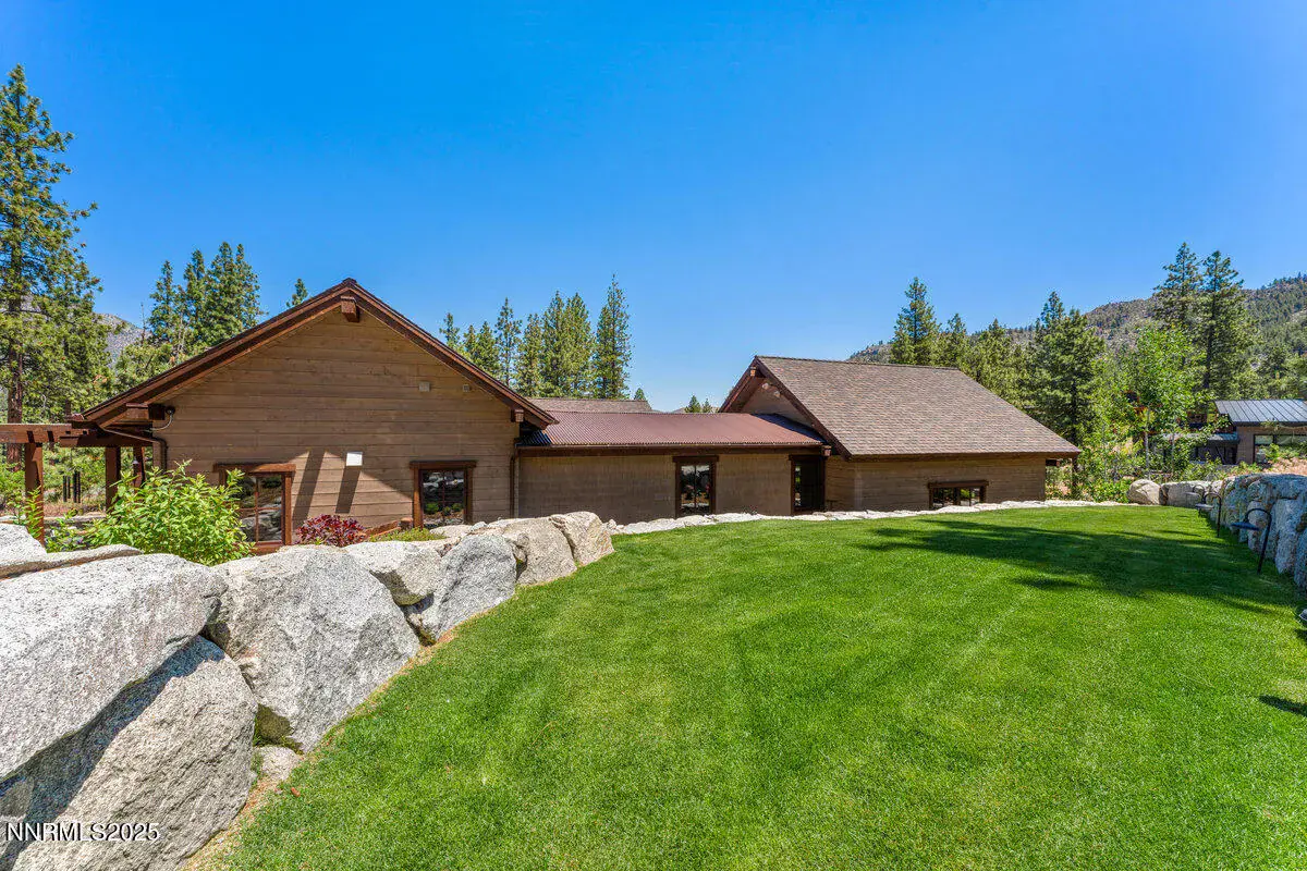 Step inside this enchanting Mountain Cottage, gracefully positioned along the third fairway of the prestigious Clear Creek Tahoe Golf Course, and feel the anticipation of crafting cherished memories in your new mountain retreat. This custom-built single-story home sets the stage for making special family memories, enjoying fun social gatherings, and entertaining with its thoughtfully curated features., A fully landscaped backyard beckons, boasting a built-in barbecue, paver patio bordered with impressive boulders and rock walls, and a secure dog yard, promising endless enjoyment for both residents and guests alike. The heart of the home lies in the Chef’s kitchen, adorned with stainless steel appliances, elegant granite countertops, and a generously sized island, seamlessly flowing into the family room, accentuated by a striking linear fireplace. Sliding doors unveil a sprawling patio, complete with a firepit, providing the perfect vantage point to admire the breathtaking sunset hues painting the skies over this esteemed golf course. Indulge in the opulence of the grand private master suite, boasting a vaulted clear alder tongue & groove ceiling, a cozy gas fireplace, and a sumptuous master bathroom, offering a sanctuary of relaxation and rejuvenation. Begin your mornings on the front porch, soaking in the mesmerizing sunrise casting its glow upon the awe-inspiring granite rock outcroppings, setting the stage for a day filled with boundless adventures. Located a short stroll from the heart of Summit Camp, which offers Har-Tru tennis courts, pool, hot tub, towering water slide, pickleball sports courts, poolside grill, bocce, and more! Social membership to the Clear Creek Tahoe club is included and offers access to all amenities (excluding golf) – including a private lakefront property which operates as a beach club in the summer and ski house in the winter, private hiking trails, and a spacious clubhouse with workout/wellness facility open year-round.