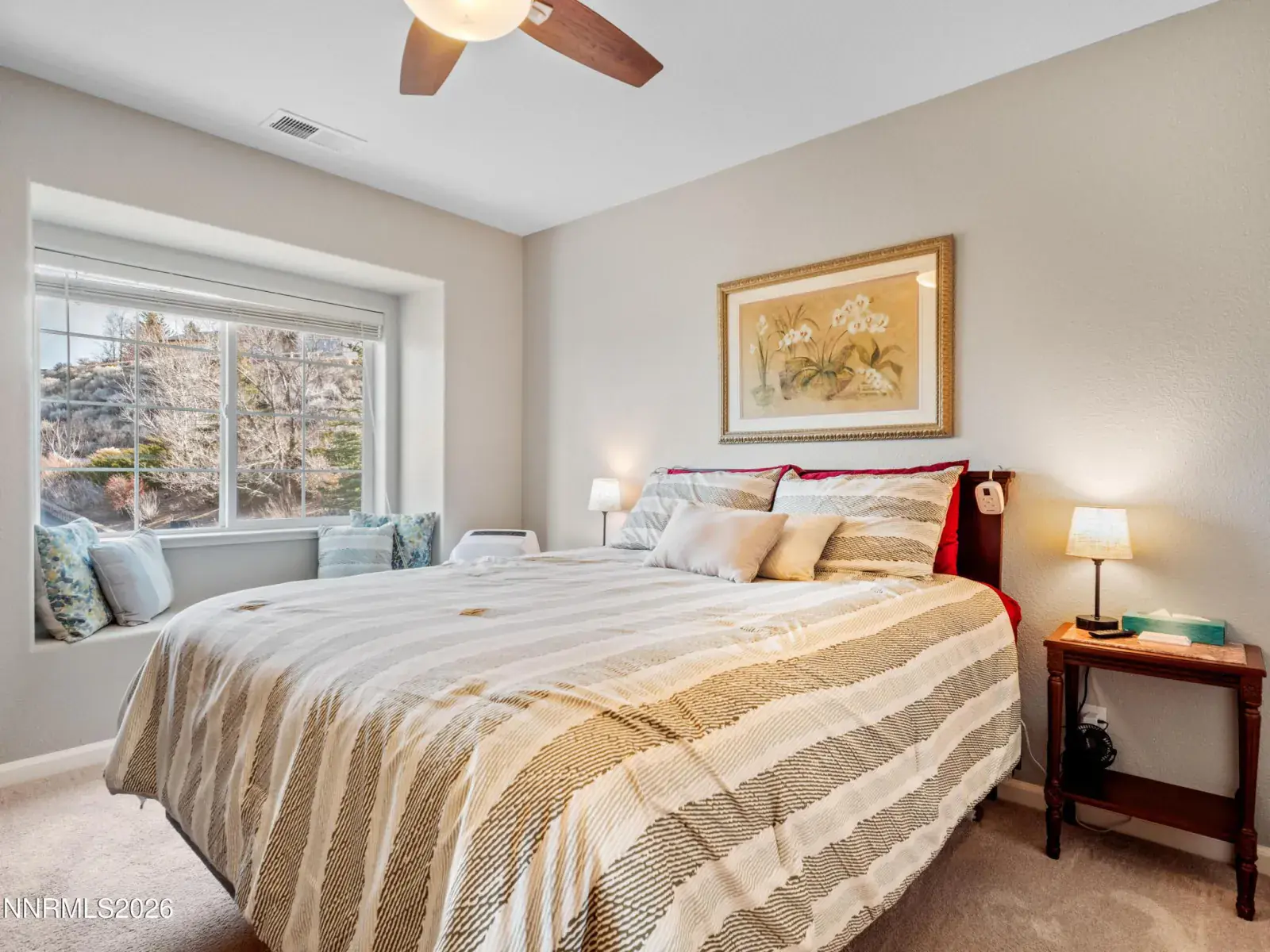Nestled among the trees on just over an acre in one of Carson City’s most-coveted neighborhoods, Lakeview Estates, this 4-bedroom, 2.5-bath home with an office/den offers room to live, work, and relax. You can’t miss the elevated views of Washoe Lake which must be seen to believe! Inside, you’ll find numerous updates completed within the last five years, including newer appliances, beautiful luxury vinyl flooring, and granite kitchen countertops. There is a bedroom on the main-level with nearby guest bath providing flexibility and convenience for visitors or extended family. The well-appointed primary suite features a walk-in closet, dual vanities, and a jetted tub. Step outside and experience your own private retreat. No expense was spared on the beautifully landscaped, park-like setting featuring a lush lawn, mature pines, maples and cottonwoods exploding with color in the fall, a charming orchard, and flowing water feature. Entertain on the paver patio, unwind on the fully-fenced covered deck, and enjoy the generous outdoor living space designed for gathering and relaxation. A circular driveway welcomes guests and provides easy access and ample parking. including room for your RV. With a 75-gallon water heater, ceiling fans in every bedroom, a huge walk-in, lighted crawlspace with additional 110v electrical for storage, and other thoughtful features throughout, this property blends functionality with natural beauty.