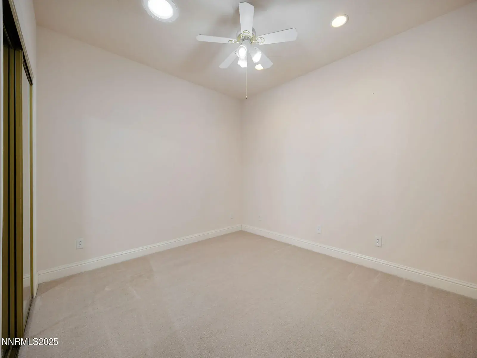 Discover this bright and inviting single-story home tucked along the 13th fairway of the Silver Oak Golf Course. Featuring a thoughtful, open floor plan and scenic beauty at every turn. The spacious kitchen, dining and great room is the heart of the home, complete with Corian countertops, a large island with breakfast bar, oak and glass cabinetry, under-cabinet lighting, and two convenient wire-shelf pantries. The adjoining dining nook and great room flow effortlessly together, showcasing panoramic views of the golf course and surrounding mountains. The great room features a cozy gas-log fireplace with blower, entertainment niche, built-in cabinetry, and abundant natural light. Nearly every room includes ceiling fans for year-round comfort. The primary suite offers a peaceful retreat with patio access, dual vanities, walk-in closet, separate shower, and jetted walk-in tub. Additional highlights include a separate laundry room with a folding area and shelving for extra storage. Outside, relax on the back patio or deck while looking out onto Silver Oak golf course, perfect for morning coffee or evening sunsets. The oversized insulated garage with newly epoxied floors, impress with high ceilings, and a massive 12-foot tall and 9’9″ wide RV door. The RV bay is approximately 30′ deep with water, power, and a dump station conveniently located inside. There is also a new hot water heater installed. Located in a desirable neighborhood with access to parks, walking paths, and nearby trails, this home is minutes from shopping, Carson Tahoe Hospital, Western Nevada College, and all the outdoor recreation the area has to offer.