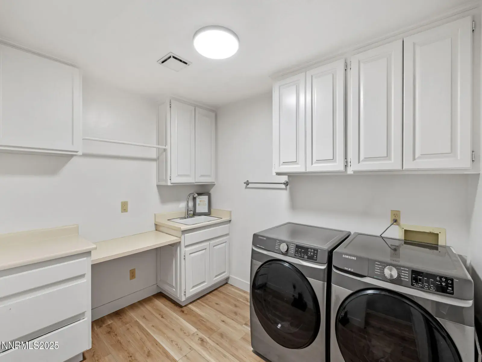 Cabinets, Laundry Room, Shelves, Sink, Washer Hookup
