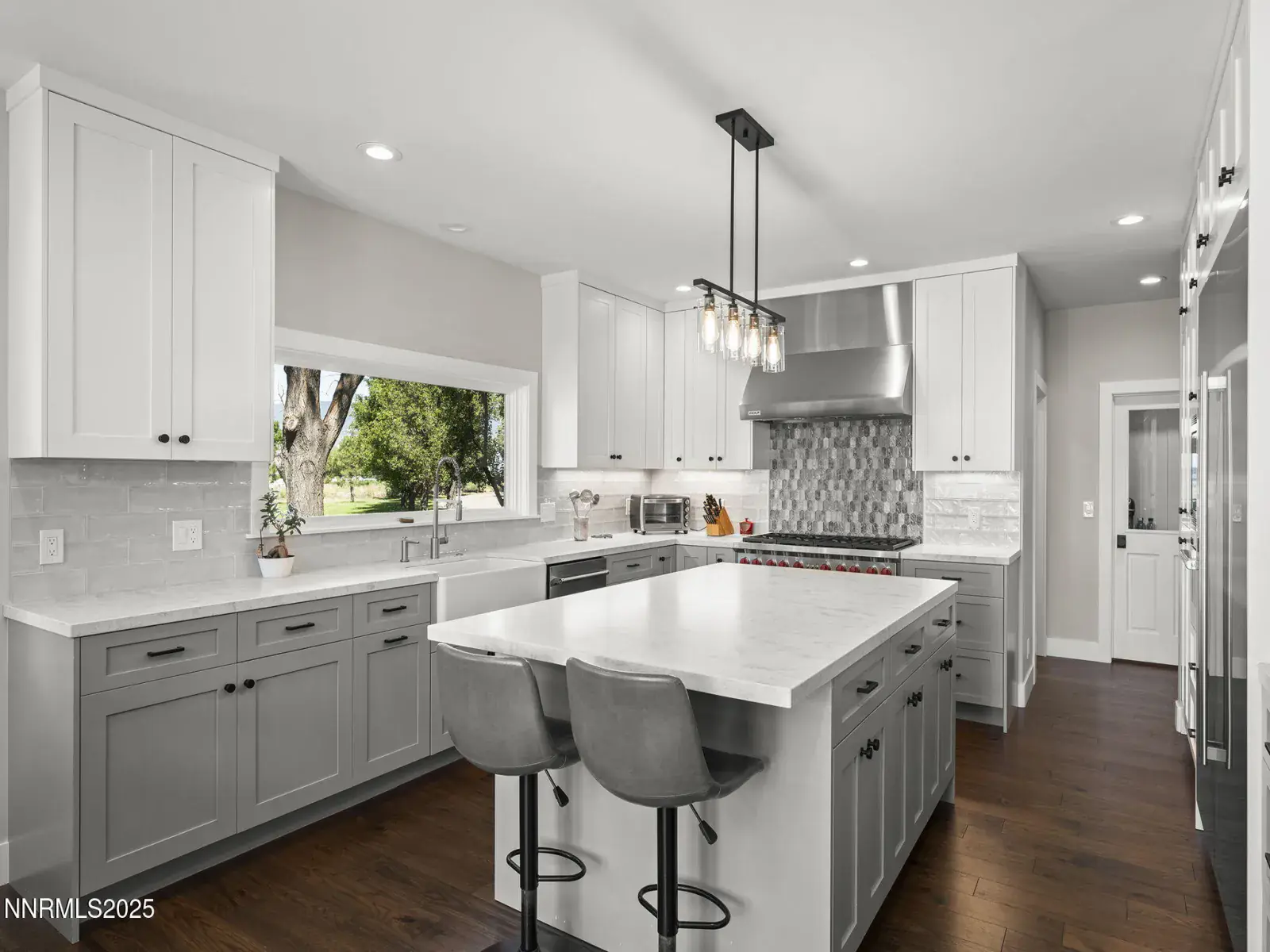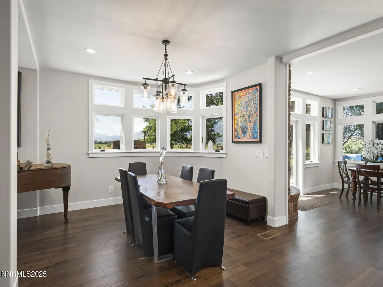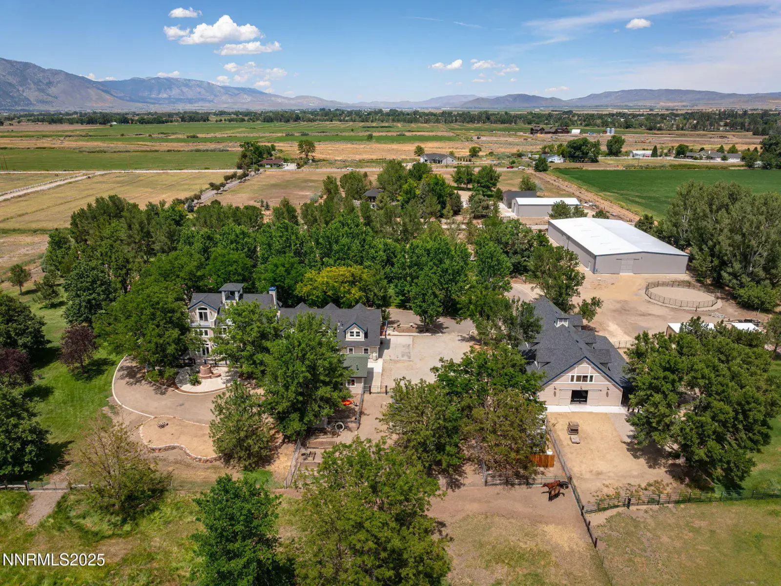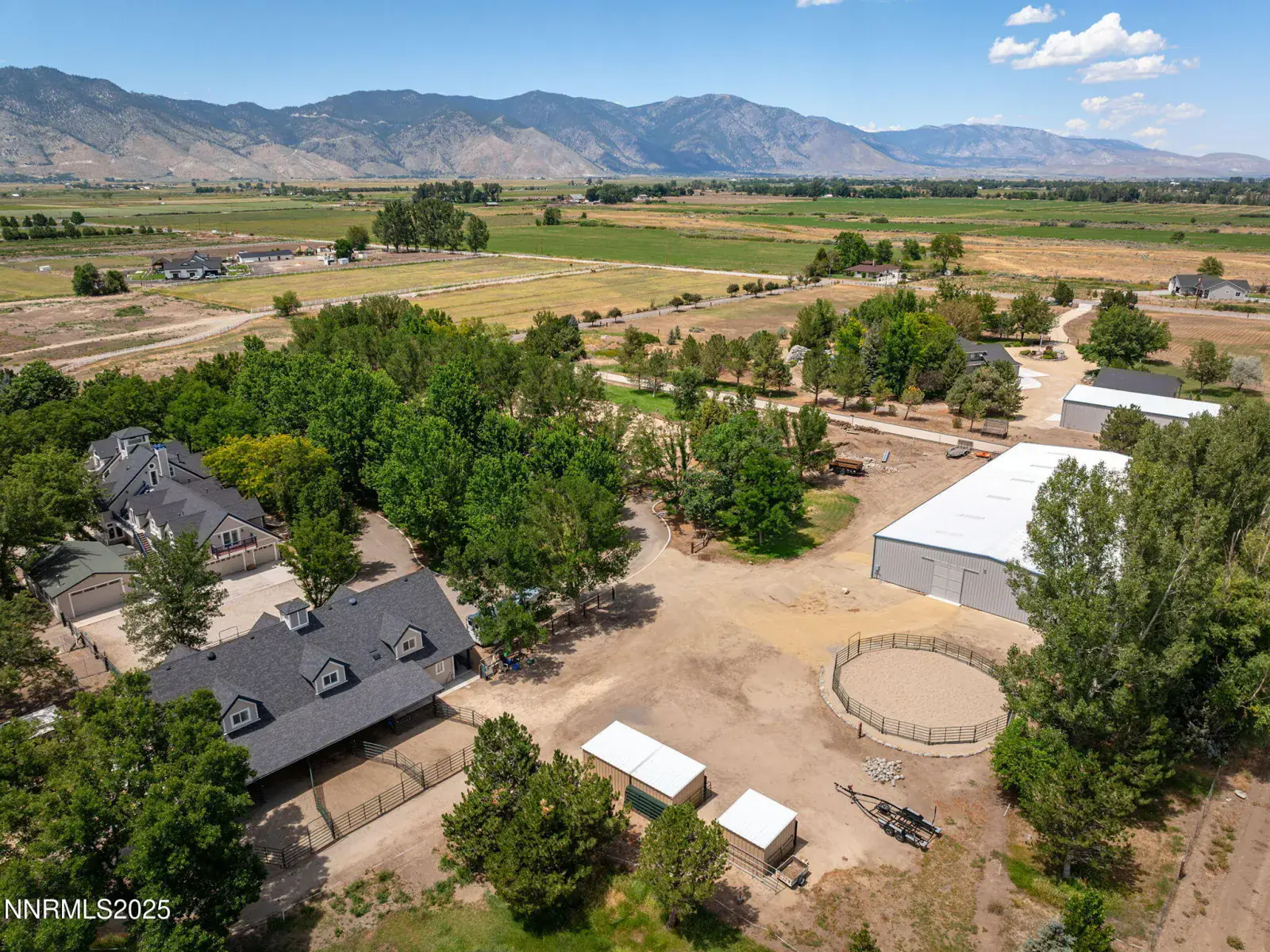 Dreaming of space for your hobbies, horses, or business, without sacrificing convenience? This Gardnerville showpiece offers it all: a like-new turnkey residence, incredible privacy just minutes from town, and unmatched facilities for work, recreation, and equestrian living. The 12,000± sq. ft. enclosed shop building (currently set up as an indoor riding arena) is complemented by a beautifully finished custom horse barn that could easily be reconfigured for traditional storage, workshop, or studio use. A separate shop/garage and seven+ additional garage bays provide endless flexibility for vehicles, equipment, and toys. There’s even a dedicated home office or business space ready for your vision. Ideal for remote work, creative pursuits, or an additional living space. Situated on 10 manicured acres in the heart of Gardnerville, this exceptional property combines privacy, open space, and modern luxury. With mature trees, irrigated pastures, extensive outbuildings, and a fully remodeled home, it’s built for both comfort and functionality. Since 2021 the home has gone through a comprehensive renovation that artfully blends traditional ranch-style architecture with modern elegance. The result is an expansive residence of roughly 6,000 square feet, including a large bonus recreation room above the attached garage. The home features five bedrooms & four and a half bathrooms, anchored by a warm and inviting main floor with high ceilings, custom wet-bar, original brick fireplace, and a fully redesigned chef’s kitchen. Outfitted with custom 38-inch cabinetry, leathered quartz countertops, large center island with tons of storage, custom 30′ Sub-Zero refrigerator and freezer towers, and an eight-burner Wolf range with stainless steel Wolf hood, side-by-side double ovens plus a steam oven. The kitchen is as functional as it is stunning. Don’t like stairs? A functional elevator serves all three levels, leading to the top-floor primary suite, complete with private balconies, walk-in closet, and access to a cupola-style viewing loft known as the Eagle’s Nest. The second floor features four bedrooms, two of which are ensuite, a third bathroom, laundry room, and multiple walk-out balconies overlooking the pastures and Sierra Nevada. Over the attached garage, a spacious recreation room provides the perfect setting for a game room, gym, studio, or guest retreat—all finished to the same exceptional standard. A connected east-wing structure offers approximately 1,000 sq. ft. of finished and unfinished space, ideal for an in-law unit or professional office. Equestrian facilities and outbuildings are exceptional. The fully renovated barn includes six custom stalls (expandable to eight), Nelson heated waterers, an indoor wash rack (hot and cold), and separate tack and feed rooms with a half bath. Above the barn, a remodeled studio apartment provides private accommodations for guests or staff. The 2021 built 12,000 sq. ft. metal building offers endless opportunities with LED lighting, skylights, and sliding barn doors, while the outdoor riding arena, cross fencing, and multiple covered shelters make this property perfect for those seeking equestrian facilities or useable space and storage for your hobbies or business. The grounds are both functional and beautiful—several acres of irrigated pasture, manicured lawns, and nearly 100 mature trees create a serene, park-like setting. The private well, equipped with a new 5-horsepower pump producing approximately 90 GPM, and established flood irrigation water rights ensure ample water supply. A Kohler 20 kW backup generator provides seamless power continuity, and the property is fully serviced by natural gas, septic, and NV Energy. There is abundant parking and a circular driveway for easy access and trailer turnaround. All improvements have been thoughtfully designed to create maximum usability and convenience. Book your private tour today!