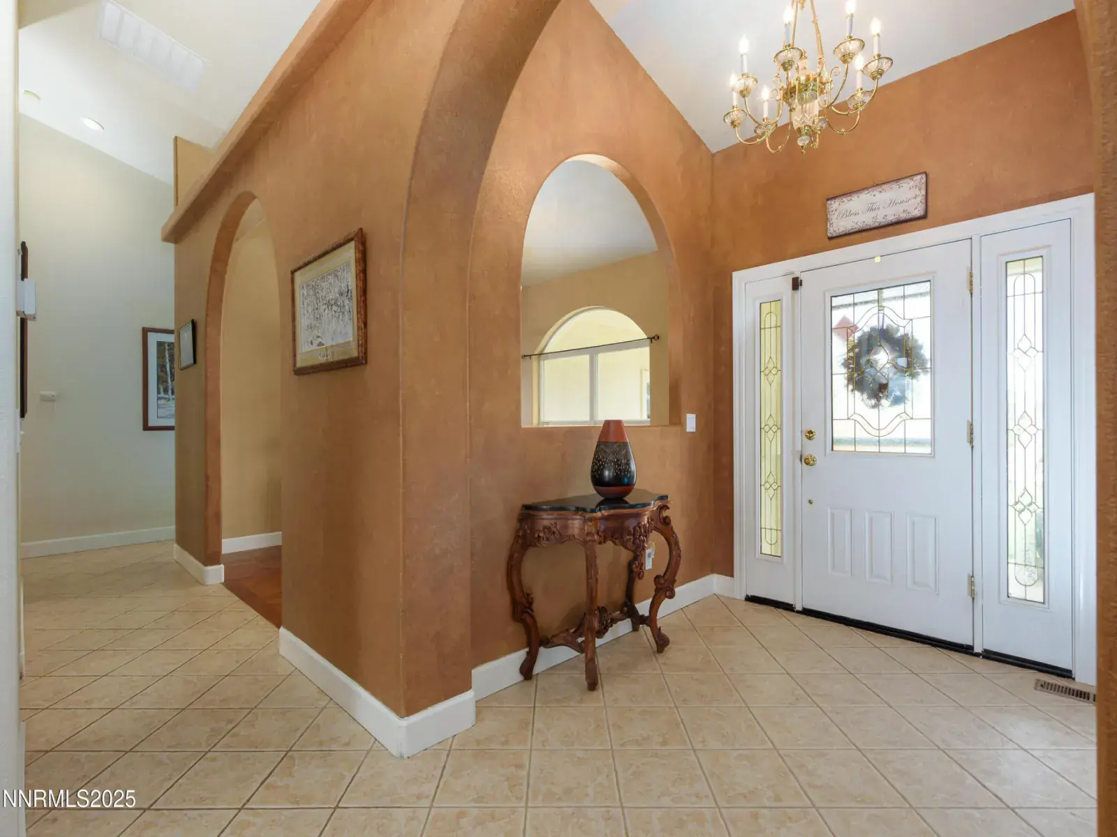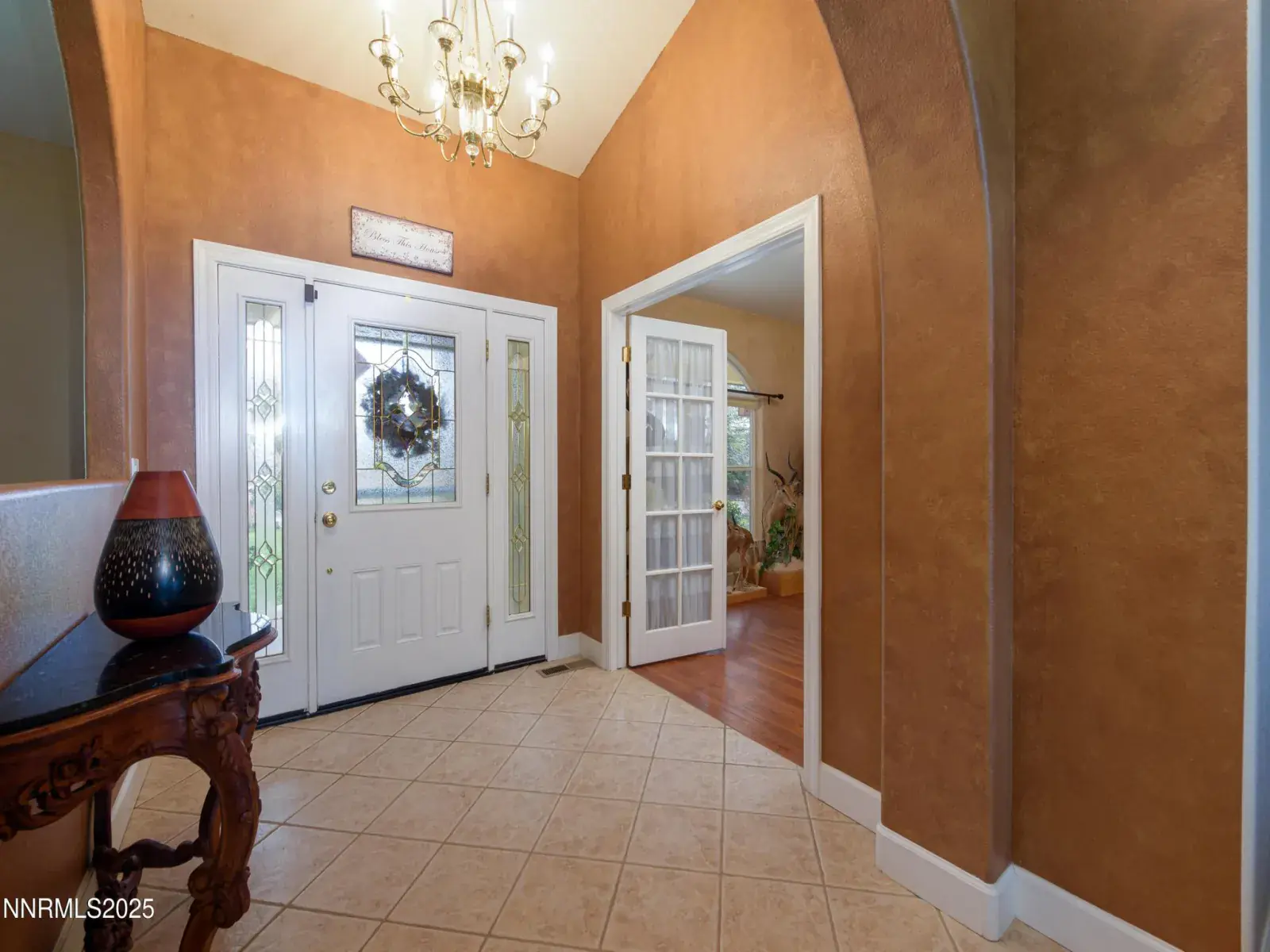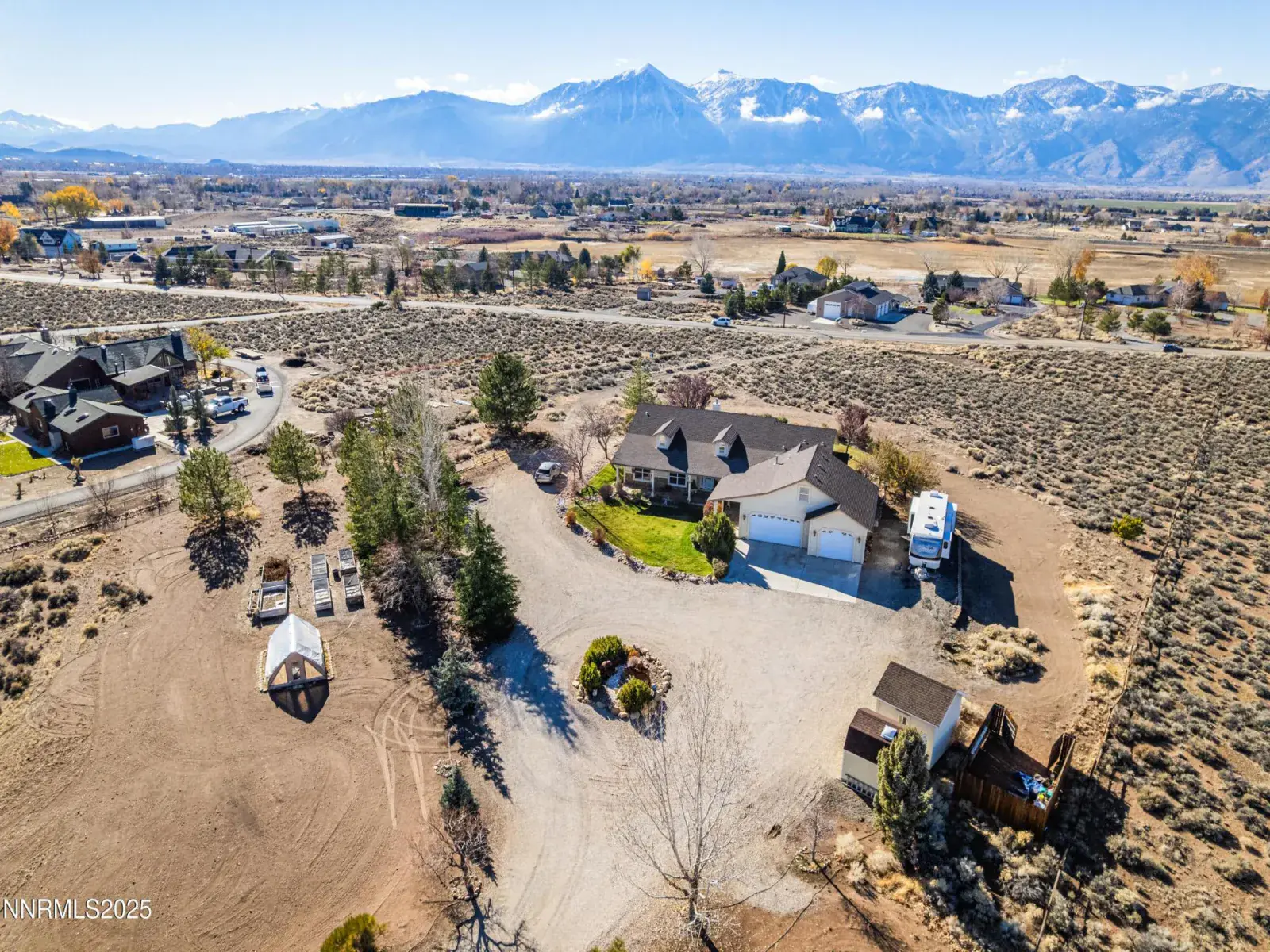 Discover a rare opportunity to own a beautifully crafted custom home set on five pristine acres with sweeping views of the Sierra Nevada Mountain Range! The land itself is level, fully usable, and designed for possibility, whether envisioning a grand RV garage, an expansive workshop, a guest house, or equestrian amenities, the acreage provides room to create without limitation. Inside, the home welcomes you with an inviting open layout, vaulted ceilings, rich hardwood floors, and a split floor plan that maximizes both comfort and privacy. The Great Room centers around a custom-hearth gas fireplace, creating a warm and inviting gathering space. The kitchen is crafted for both culinary enjoyment and effortless entertaining. Features include vaulted ceilings, recessed lighting, granite slab countertops with full backsplash, a breakfast nook and bar, pantry, custom cabinetry with built-in pullouts, double ovens, a five-burner gas cooktop, and stainless steel appliances. A formal dining room offers additional space for intimate gatherings. With three spacious bedrooms, a dedicated office, and an additional bonus room, the home offers flexibility for work, guests, hobbies, or fitness. The oversized three-car garage also provides generous storage and utility. The property is further enhanced with an outbuilding, a shed, RV hookups, full perimeter fencing, gutters, thoughtfully designed landscaping on an automatic irrigation system, raised garden beds, a hothouse, blackberry vines, mature fruit trees, and a stubbed in BBQ providing a ready-made foundation for whatever vision you bring. Sightlines to a seasonal reservoir, panoramic views of both the Sierra Nevada and Pinenut Mountain Ranges, and direct access to wide-open BLM land create a setting that feels both expansive and intimate. An ideal setting for those seeking space, beauty, and a refined rural lifestyle. Experience the harmony of craftsmanship, land, and landscape, schedule your tour today!