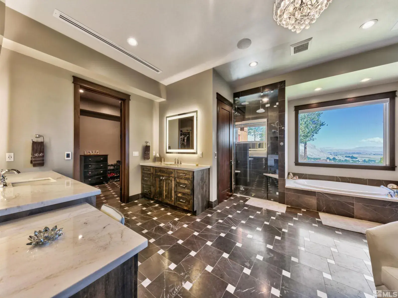 Welcome to Jobs Peak Estate. This is a rare opportunity to own this never before listed luxurious Mountain Estate. Nestled on an exclusive 10.35-acres in the foothills of the Sierra Mountains with majestic views of Jobs Peak, tucked in the mountains overlooking the picturesque Carson Valley, cornering Toiyabe National Forest, with a year round creek and all with the ability to Ski home from Heavenly Ski Resort. Minutes to Lake Tahoe, multiple ski resorts and with the tax benefits of owning in Nevada., The crown jewel of this property is a lavish 2019 custom-built home spanning 11,014 square feet. This home is a masterpiece boasting 5 bedrooms (3 en suites) and 5.5 baths… Every detail has been carefully curated to provide an unforgettable experience. With the breathtaking backdrop of Jobs Peak and the blend of modern luxury and rustic charm you will never want to leave. The great room has 32 ft. ceilings and a massive fireplace leading to a dream kitchen with a 30ft. island, multiple ovens & dishwashers, ice machine and cabinet space for every kitchen gadget. The dining area turret has a custom crafted wood ceiling with grand views off the mountains and valley. Luxurious primary bedroom with crystal chandelier, heated floors, surround sound, a massive fireplace, and steam shower. The primary bedroom offers stunning mountain and valley views, marble, and 2 huge custom closets and vanity, creating an exquisite space for all your needs. Step into a world of sophistication and entertainment as you explore the private speakeasy inspired back lit onyx full bar and lounge with game room, and a state-of-the-art movie theater within the confines of the main house. For those seeking relaxation, an indoor pool and hot tub provide the perfect oasis. Or if you need a little exercise you can hit the private gym equipped with a tonal, treadmill, rowing machine and bike. Adding a touch of history, a quaint 881-square-foot Pine cabin stands proudly on the estate. This original rustic 1957 structure, complete with 2 bedrooms and a loft, invites you into a bygone era. Great for a mother-in-law, additional guest home or property manager. As you step outside, you will find yourself immersed in a meticulously landscaped haven. The property is bordered by a creek and has 2 acres of manicured lawn to provide an expansive canvas for your outdoor pleasures. The large garden, chicken coop and orchard can help sustain you year after year. The landscape is adorned with several waterfall features, a serene pond, and the soothing sounds of nature, creating a tranquil ambiance for your celebration. The outdoor experience is equally enchanting with a wrap-around deck showcasing the expansive waterfall features. Enjoy natures beauty. Horseshoe pits and a golf tee provide additional entertainment, inviting you to relax and enjoy the breathtaking views. Enhancing the atmosphere, an outdoor stereo system fills the air with harmonious melodies. As the day turns to night, two fire pits invite you and your guests to gather under the starlit sky, fostering warmth and camaraderie. Ample parking and space for your cars, boats, RVs and more. The main home has a 5 car garage and the detached shop is 4,500 sq.ft with a lift and multiple bays. Think off the grid if you need to. The home has a Geothermal Heating and Cooling system, Hydro Electric and a private well and 2 septic systems. This home was built by a local custom home builder for his personal residence and is a must see! Horses allowed as you have no HOA! Need more land or more home opportunity? Additional attached 8 acres with 3 sub-divided lots ready to build your estate further can be purchased at a separate price. Not listed.