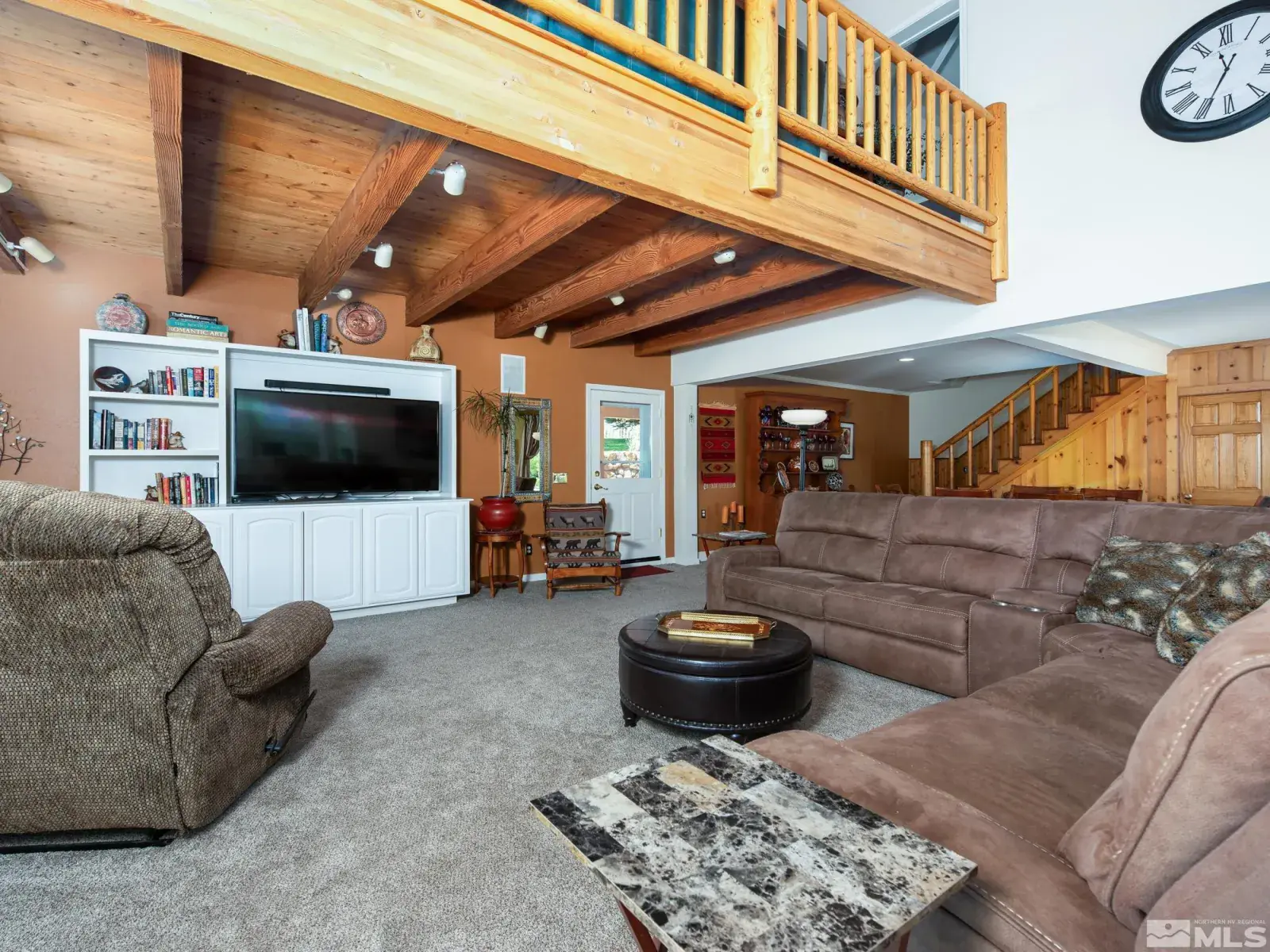 Tucked along the foothills of the Sierra Nevada mountains, this stunning 1-acre property delivers wide-open views of Job’s Peak and the Carson Valley, with two separate living spaces and outdoor areas designed for entertaining and relaxing alike. The main home offers 2 bedrooms, a spacious loft, and 2.5 bathrooms across 2,584 sq ft of warm, inviting living space. Inside, you’ll find a cozy mix of wood finishes, earthy tones, and natural light that gives the home a comfortable and welcoming vibe., Step outside to a large back deck with glass railing, perfect for taking in the mountain views from the hot tub or hosting guests with ease. A back patio just below the deck offers a great spot for BBQs and outdoor dining. The detached Casita with 576 square feet adds even more flexibility, with 2 bedrooms, a full kitchen, and a bathroom—great for guests, extended family, or as an income opportunity. Each unit has its own driveway, with a two-car garage for the main home.